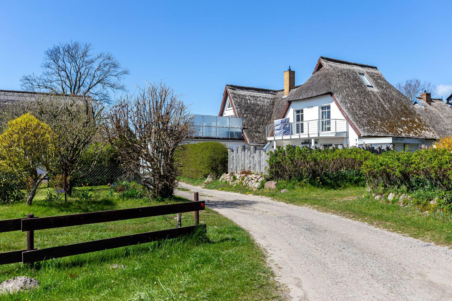 Ferienhaus Witt Hus in Wieck bietet Boddenblick, Reetdachcharme und gemütlichen Komfort für erholsame Urlaubstage.