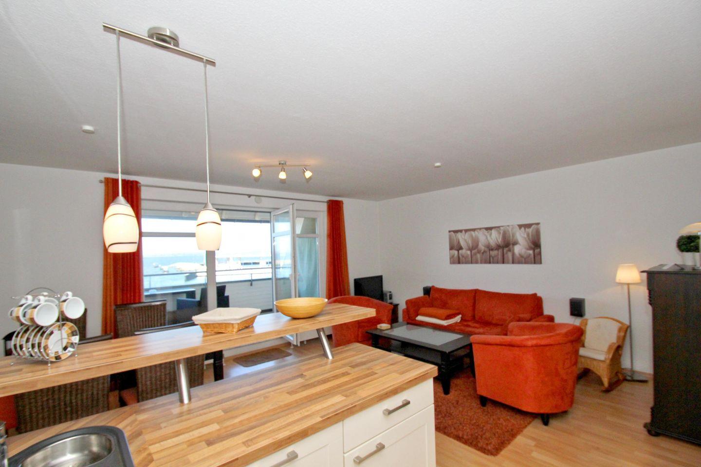 Genießen Sie traumhaften Meerblick und Komfort in der hafenahen Ferienwohnung mit Balkon in Wiek auf Rügen.