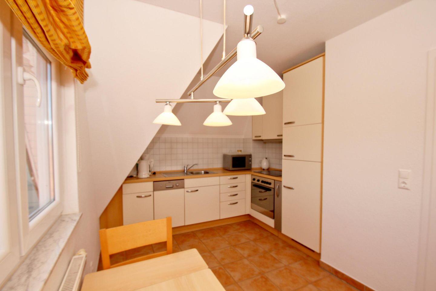 KÜCHE // separate Küche mit Essbereich, 4-Platten Ceranherd, Spülmaschine, Kühlschrank mit Gefrierfach, Backofen, Mikrowelle, Toaster, Wasserkocher, Kaffeemaschine, reichlich Besteck, Geschirr und Küchenutensilien ++