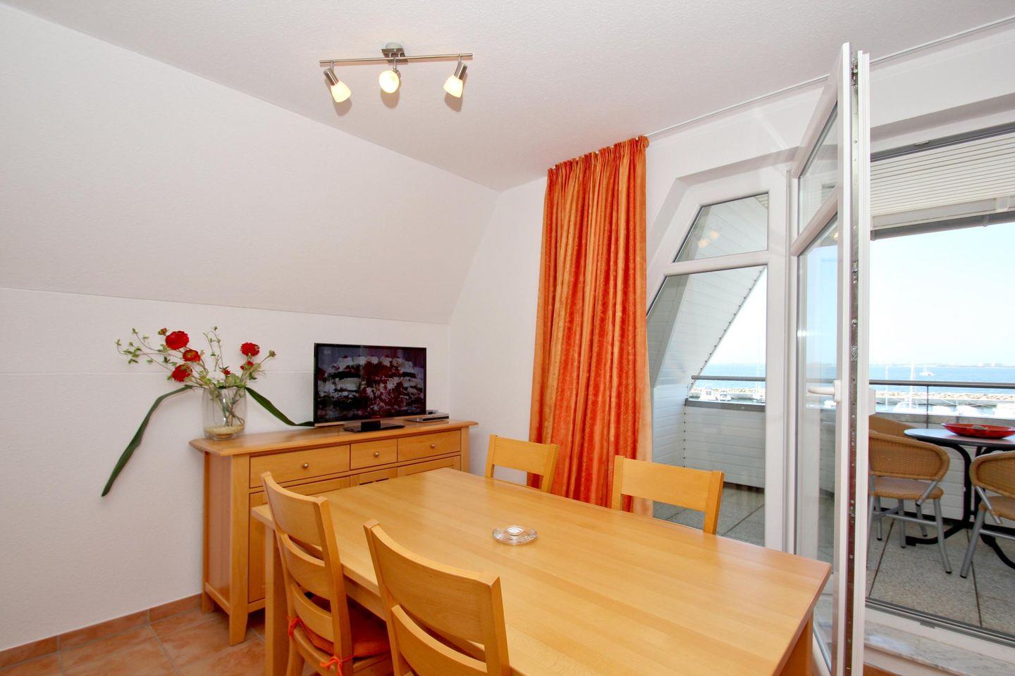 Hafennahe Ferienwohnung mit Balkon und traumhaftem Meerblick auf Wiek und die Ostsee.