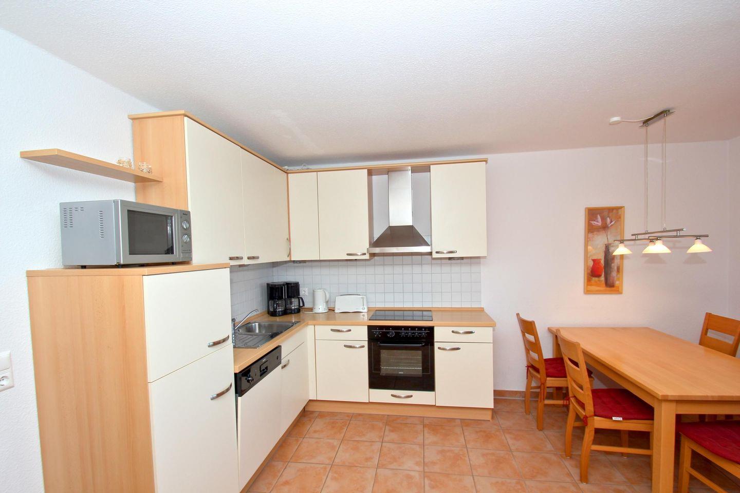 KÜCHE // offene Küche, 4-Platten Ceranherd, Spülmaschine, Kühlschrank mit Gefrierfach, Backofen, Toaster, Wasserkocher, Kaffeemaschine, reichlich Besteck, Geschirr und Küchenutensilien ++