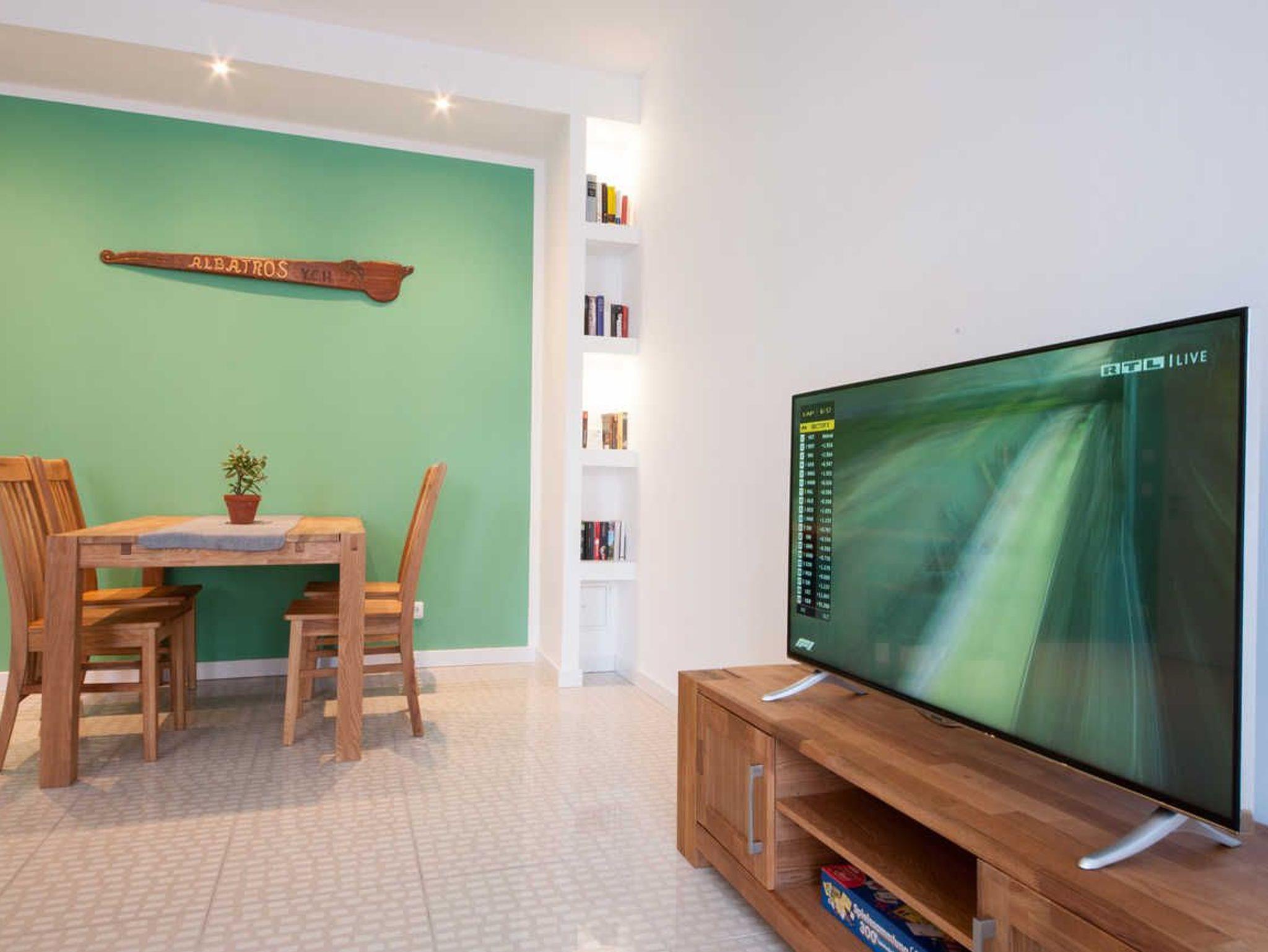 Die Ferienwohnung Hiddensee befindet sich in dem Fischerdorf Wiek und ist nur 100m vom Hafen entfernt. Sie ist 52m² groß, im Erdgeschoss und hat einen eigenen PKW-Stellplatz. Die Wohnung verfügt über ein großes Wohnzimmer mit SMART-TV, sodass Mediatheken/youtube geschaut werden können und Schlafcouch, sowie einem großen Schlafzimmer. Somit ist sie für 4 Personen geeignet. Außerdem gibt es eine Außenterrasse, um den Tag mit einem schönen Frühstück in der Sonne zu beginnen. Die Küche verfügt über ein 4-fach Ceranfeld, Mikrowelle, Kühlschrank mit kleiner Gefriermöglichkeit, Geschirrspüler, Kaffeemaschine, Toaster und Wasserkocher. Das Bad ist mit Dusche ausgestattet. Das Appartement hat selbstverständlich kostenlos WLAN/Internet. Im Bücherregal finden sie ausreichend Leselektüre für jedermann ;-) Mit einer Spielesammlung kann man den Abend ausklingen lassen.