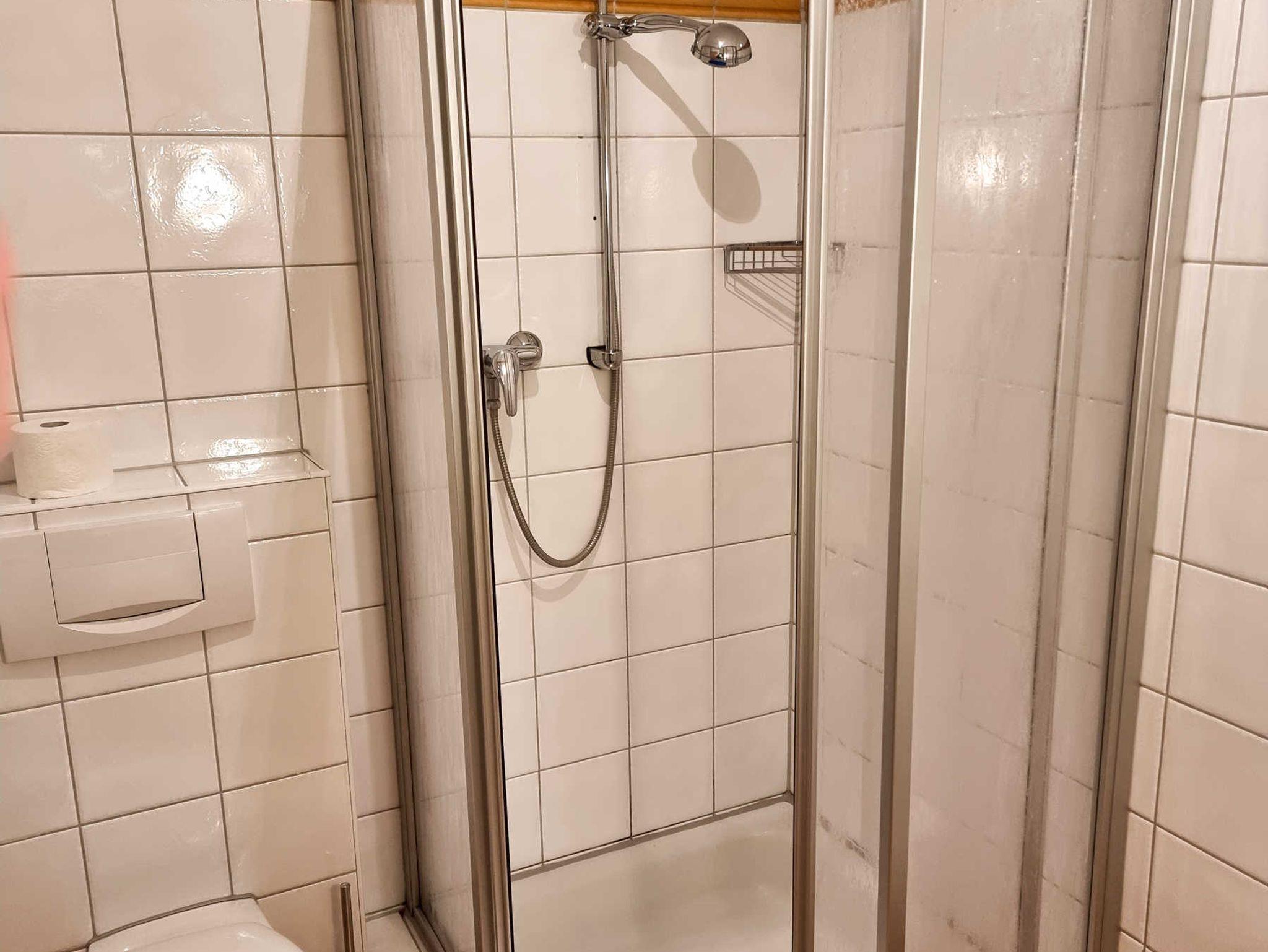 • Dusche/'WC, Waschbecken und Ablagemöglichkeiten