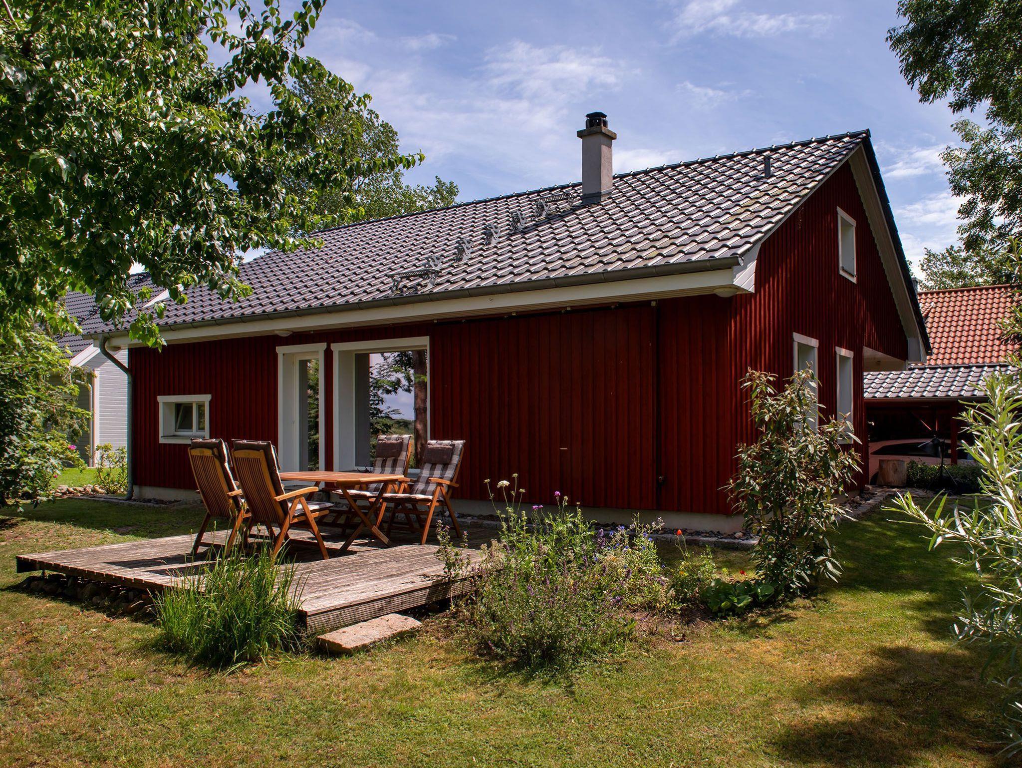 Gebaut nach ökologischen Richtlinien, atmungsaktiv durch Lehmputz auf Porotonziegel. Die Deckendämmung besteht aus 50 cm starken Strohballen, windabweisend verpackt mit einer Holzschalung in klassischem schwedenrot.