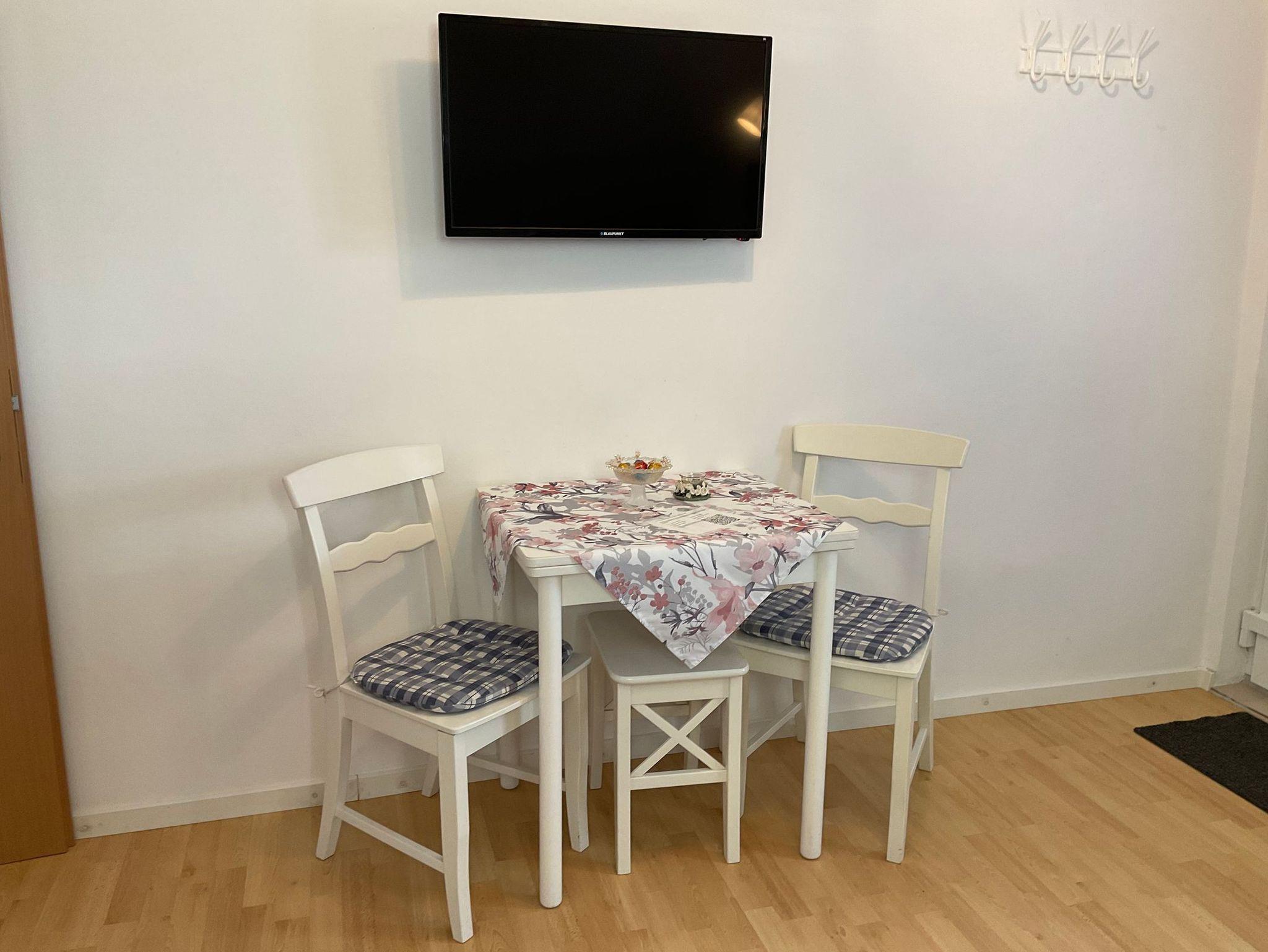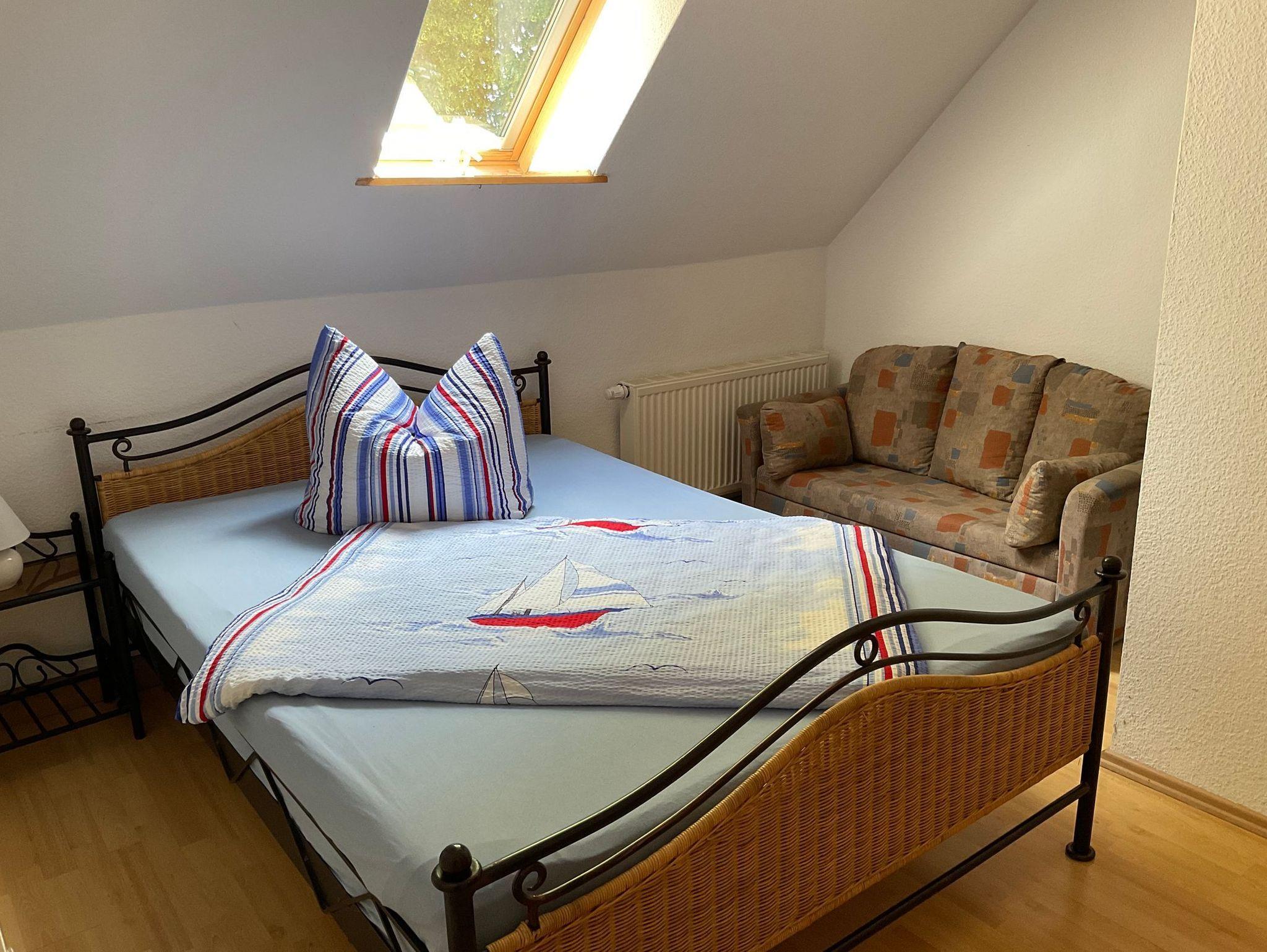 Die Ferienwohnung 3 befindet sich im Obergeschoß und ist über eine Außentreppe erreichbar. Sie verfügt über ein Wohnzimmer mit Küchenzeile und einer gemütlichen Sitzgruppe, (Sat TV, Radio). Im Schlafzimmer befindet sich ein Doppelbett und es besteht die Möglichkeit ein Kinderreisebett aufzustellen. -Bad mit DU/WC. Das großzügige Grundstück läden zur aktiven Erhohlung ein.