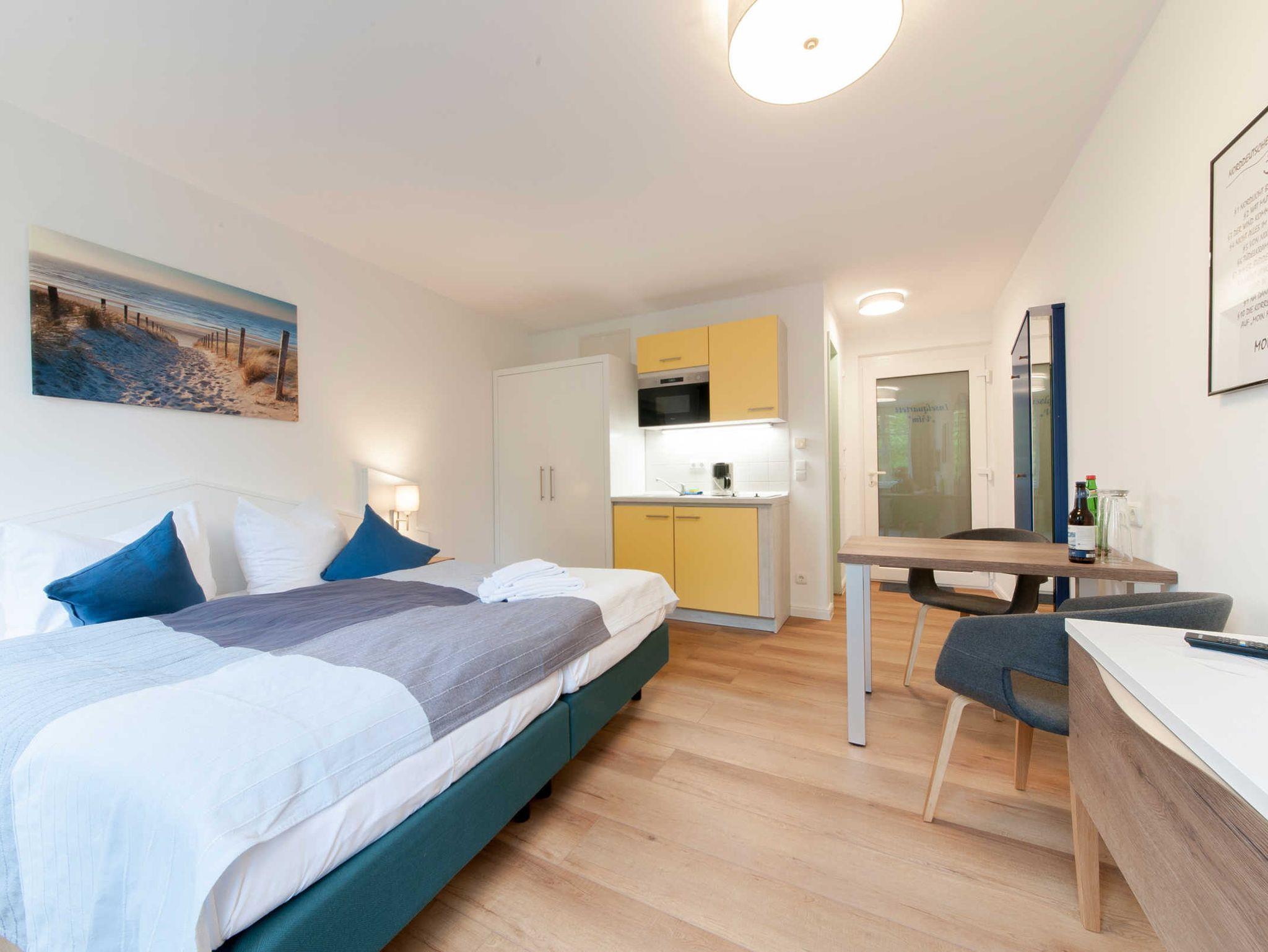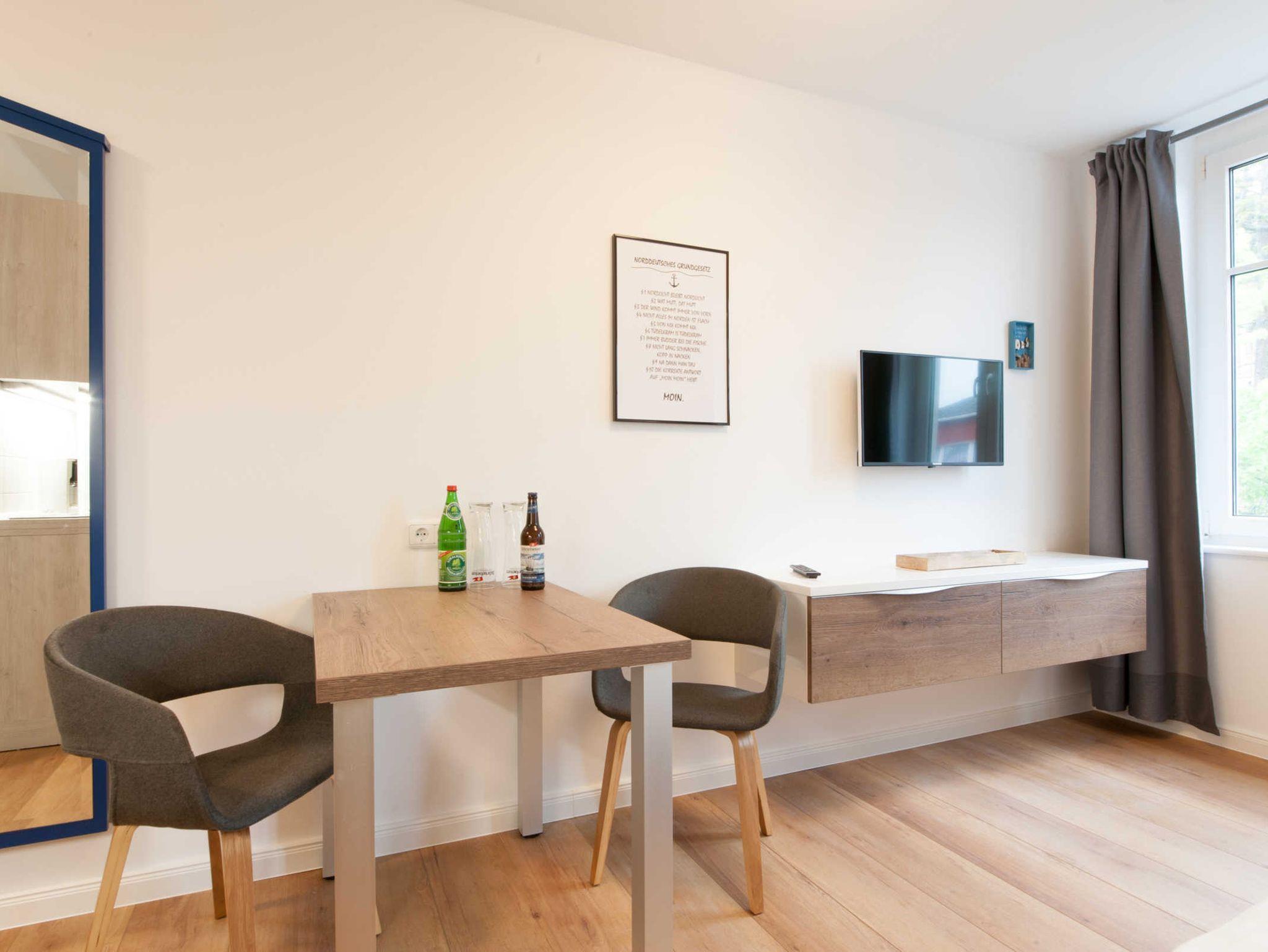 Charmantes 1-Raum-Appartement in Wiek mit Hafen- und Kliniknähe, WLAN und eigenem Parkplatz.