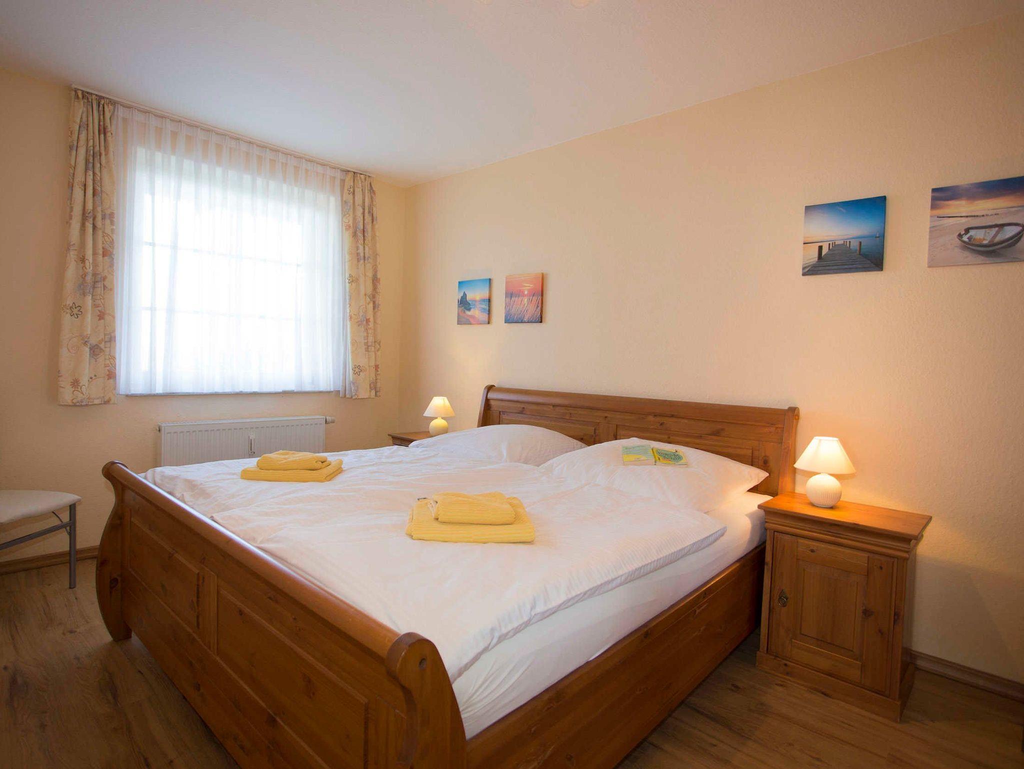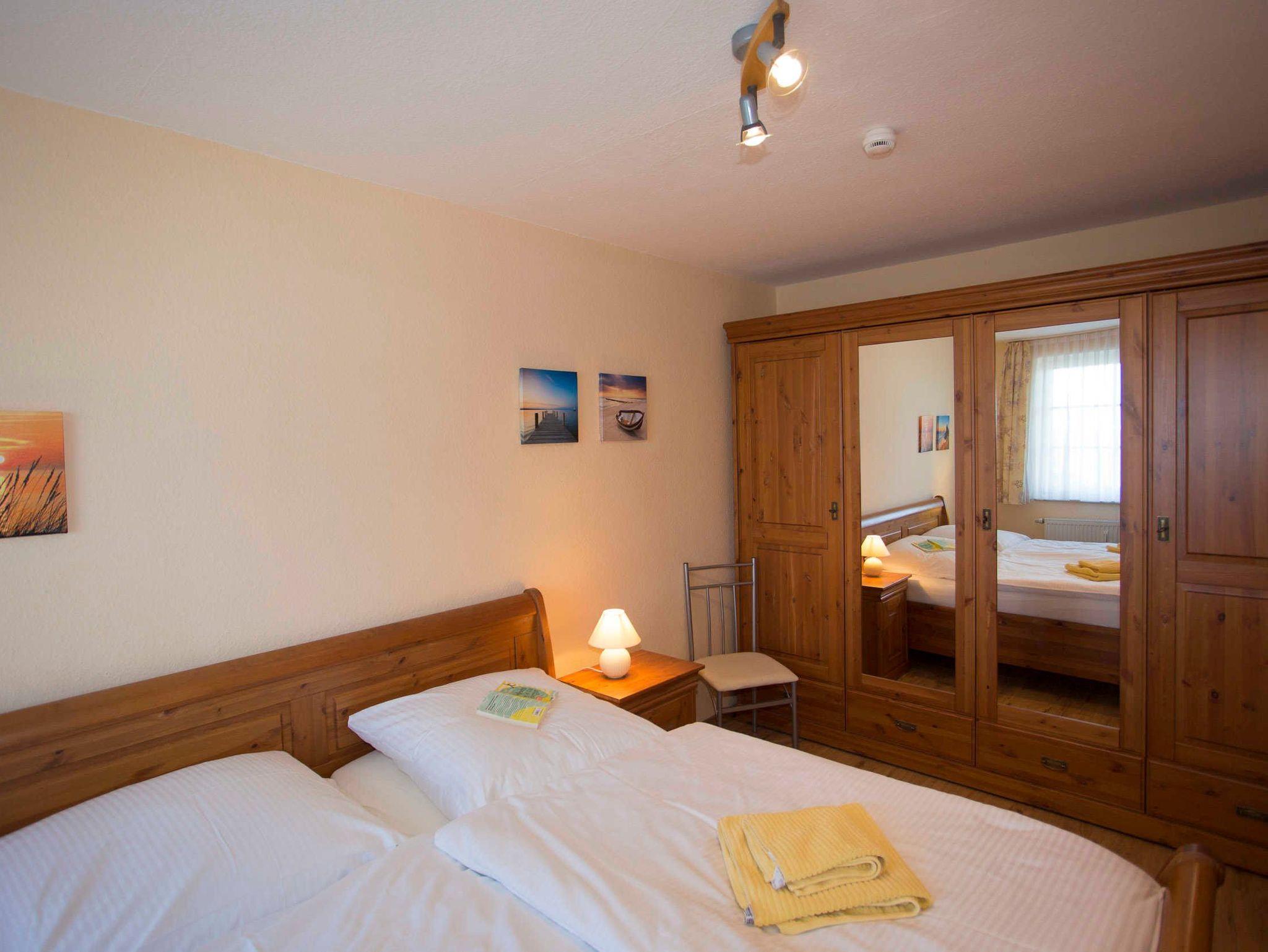 Die Ferienwohnung verfügt über ein Schlafzimmer mit einem Doppelbett (2,00 x 1,80m einzelnen 21cm dicken Komfort-Kaltschaum-Matratzen sowie sehr guten Lattenrosten). Im Schlafzimmer befindet sich ein großer Kleiderschrank.