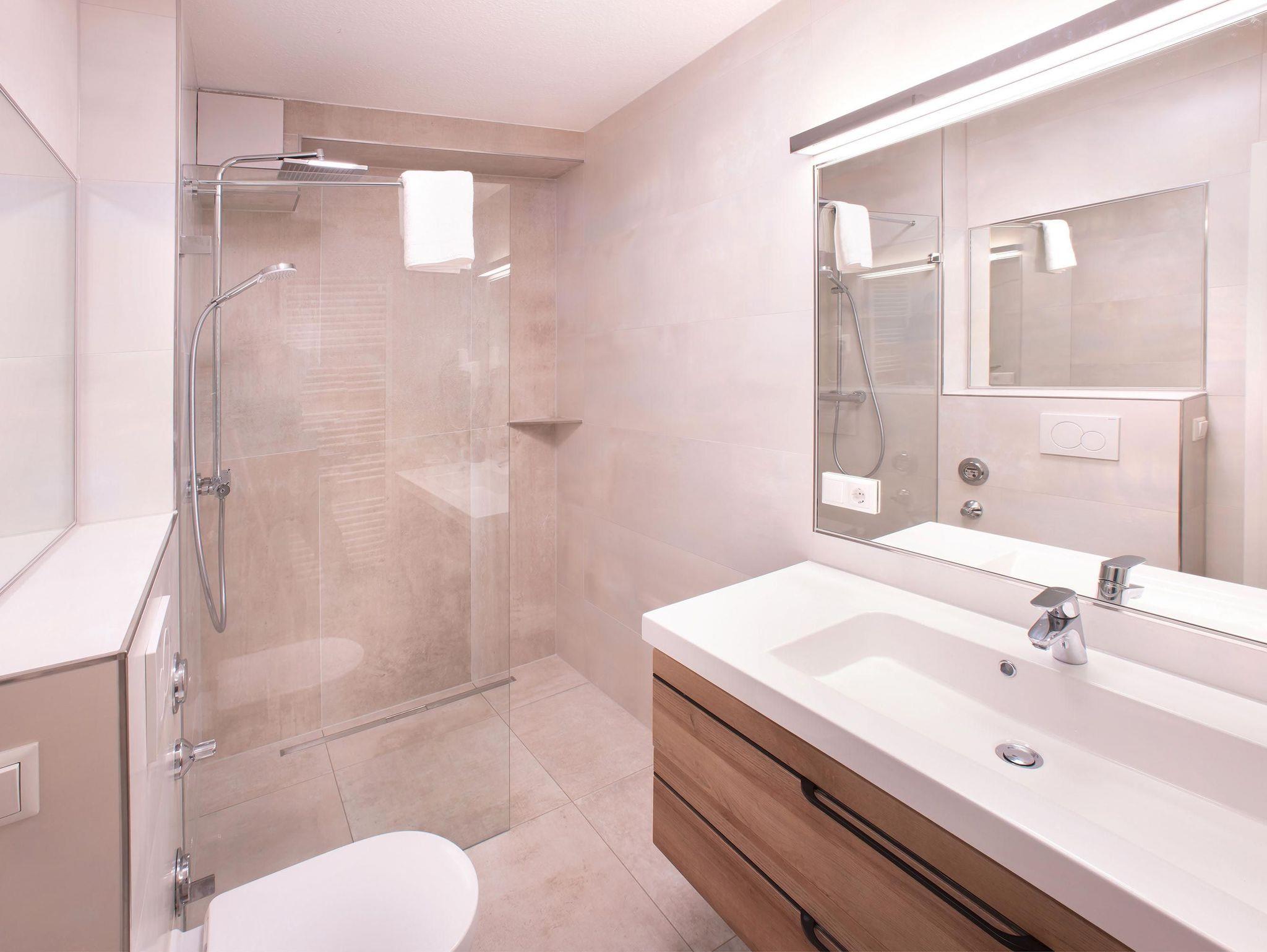 Im Flur ist eine Flurgarderobe angebracht. Das Bad (innen liegend) ist mit Dusche/WC und Waschbecken ausgestattet.