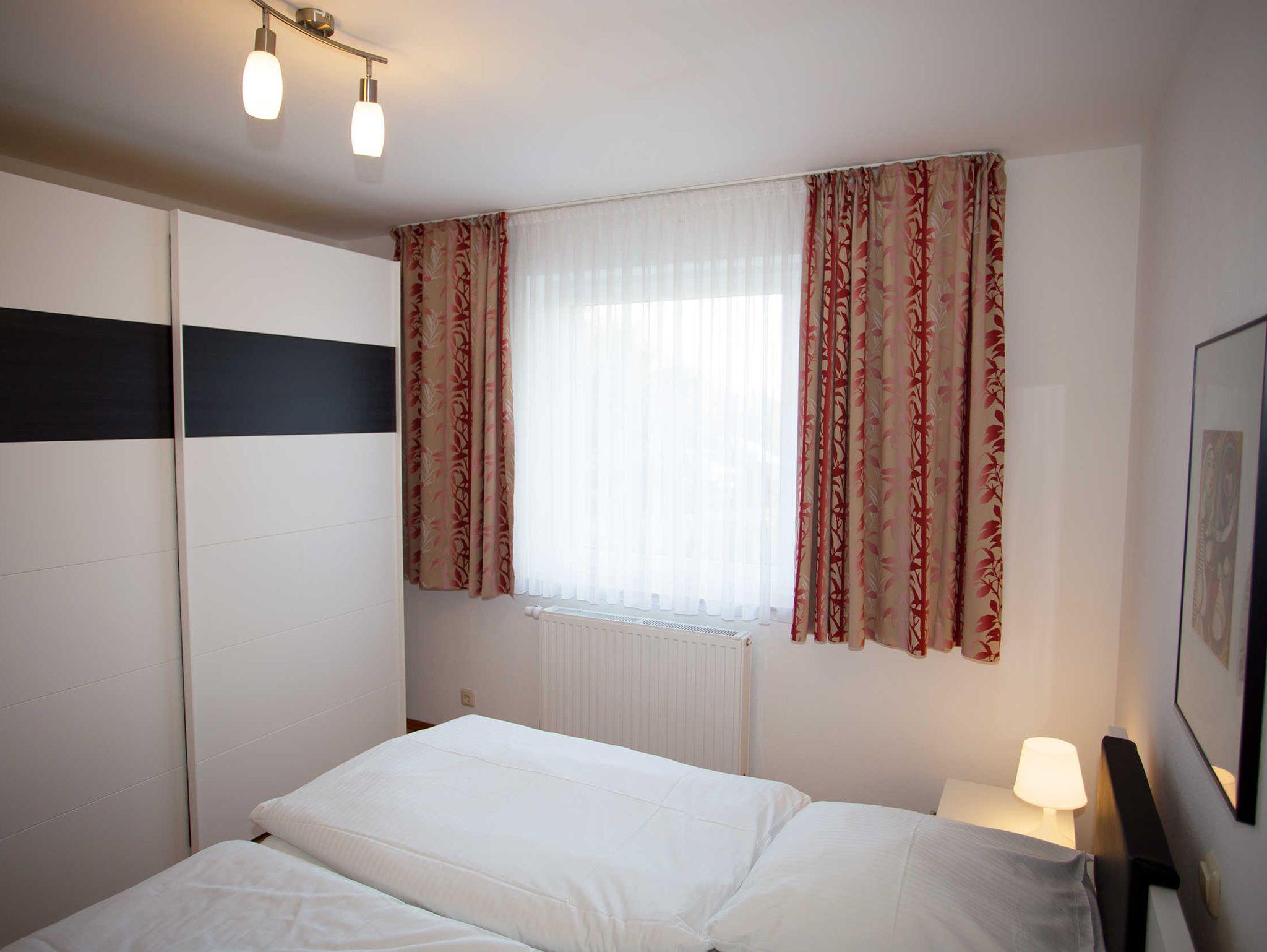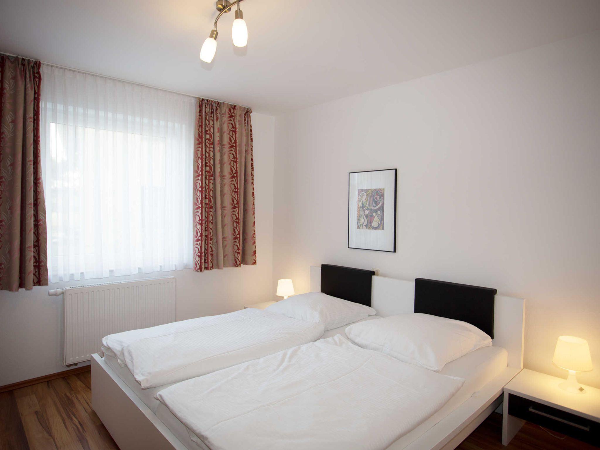 Die Ferienwohnung verfügt über zwei separate Schlafzimmer mit jeweils einem Doppelbett (2,00 x 1,80m, einzelnen 21cm dicken Komfort-Kaltschaum-Matratzen sowie sehr guten Lattenrosten) und jeweils einen großen Kleiderschrank.