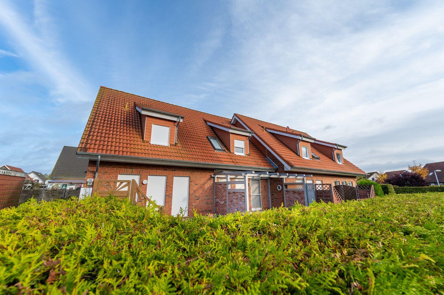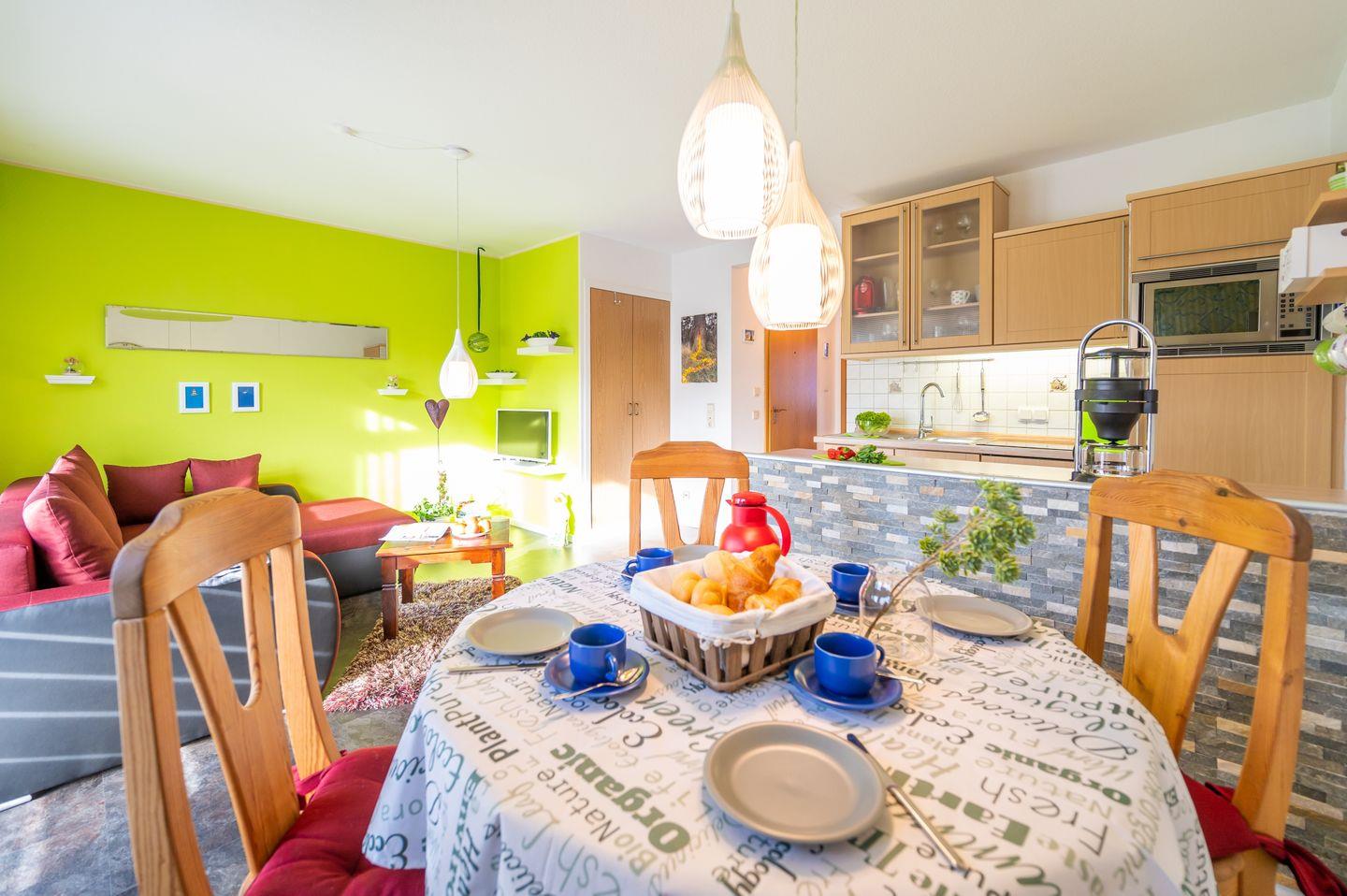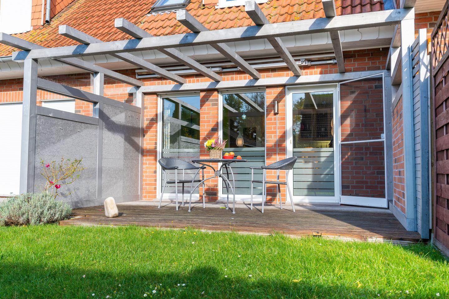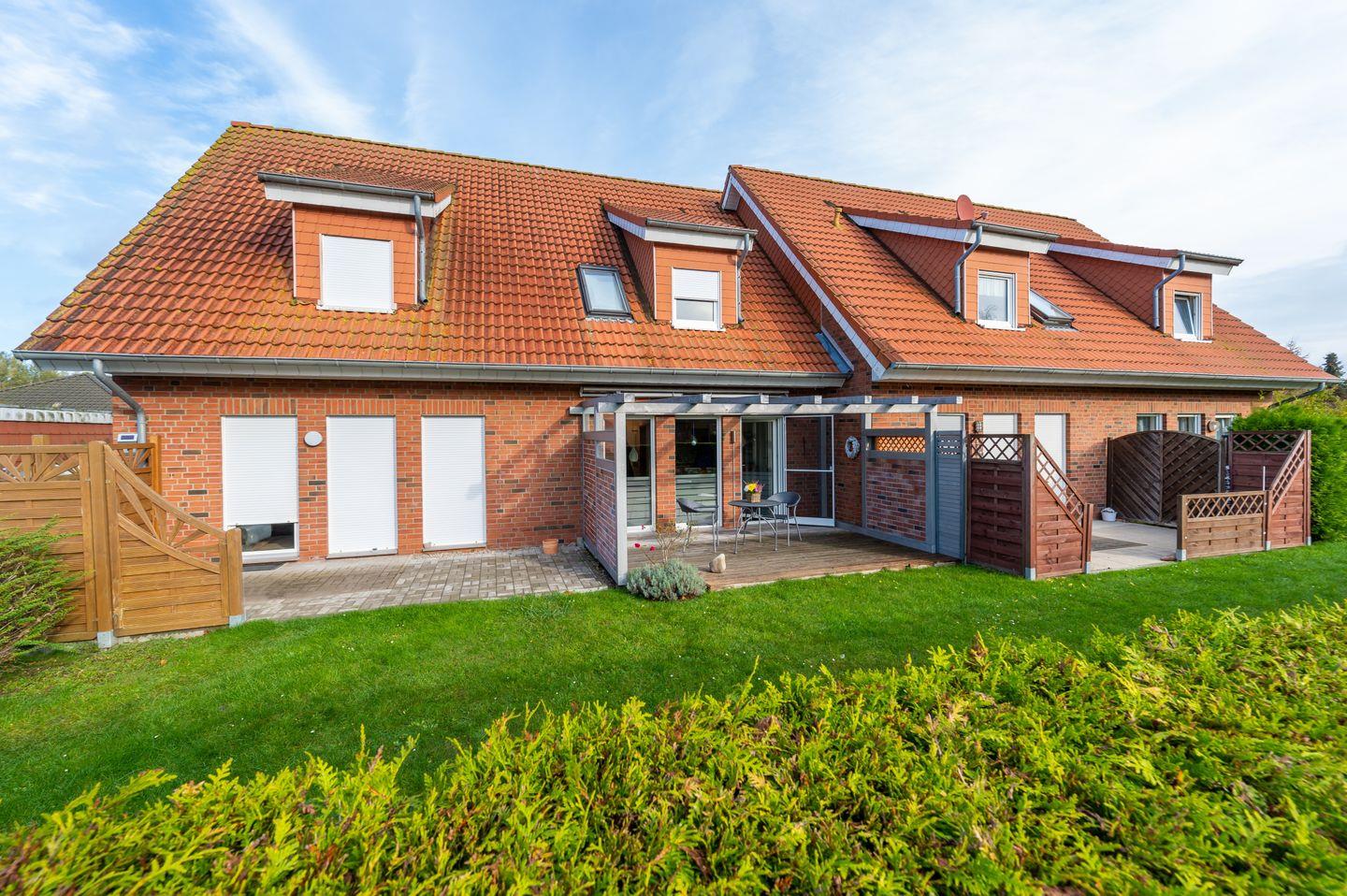 Helle Ferienwohnung mit Südterrasse in Wiek, wenige Minuten vom Wasser entfernt, ideal für entspannte Tage zu zweit.