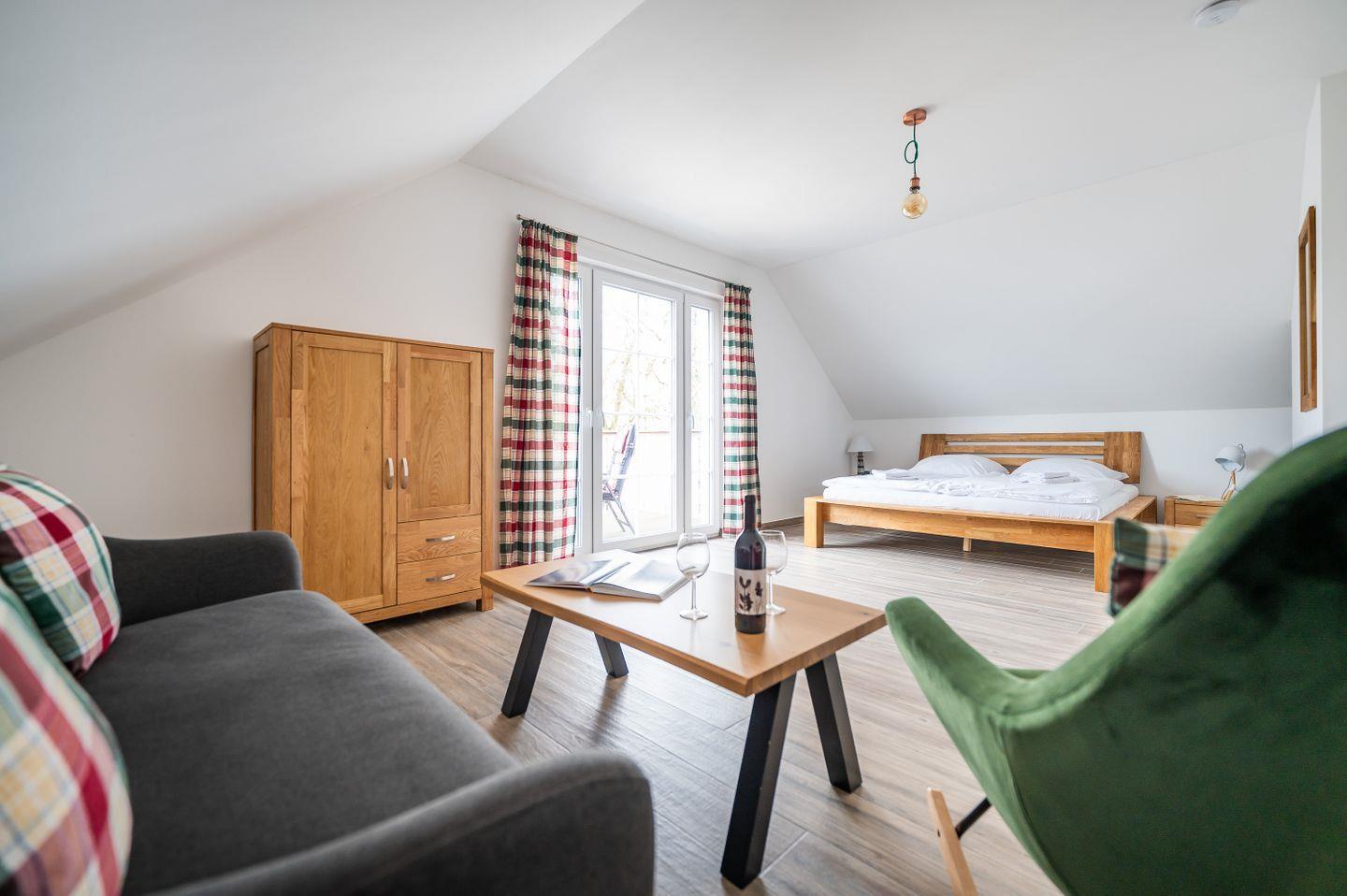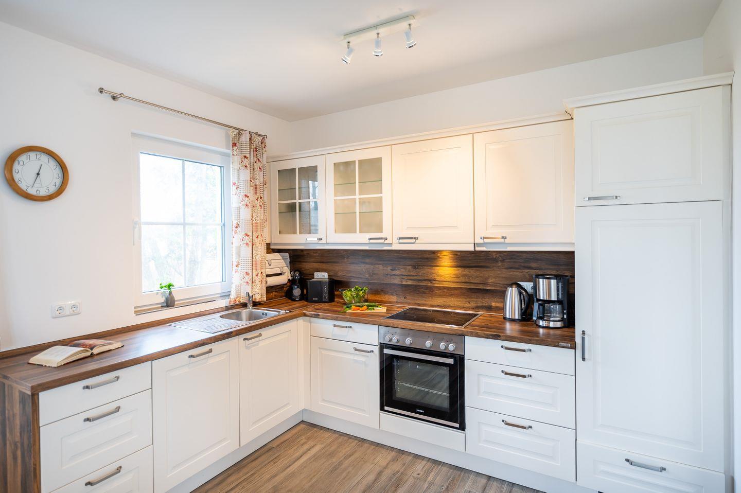 Das skandinavisch inspirierte Ferienhaus “Marianne & Heinrich” bietet mit 135 m² genug Platz, um mit Familie und Freunden eine besondere Auszeit zu verbringen. Drei großzügige Schlafzimmer, davon zwei mit eigenem Lounge-Bereich, sowie zwei stilvoll gestaltete Bäder sorgen für höchsten Komfort und Rückzugsmöglichkeiten für alle Gäste. Die offene und komplett ausgestattete Küche geht nahtlos in den gemütlichen Wohnbereich über und lädt zu gemeinsamen Kochabenden ein. Naturliebhaber werden den großen Garten des Eckgrundstücks und den weiten Blick über die Felder zu schätzen wissen. Auf der sonnigen, überdachten Terrasse und dem zusätzlichen Balkon genießen Sie die frische Luft und erholsame Stunden im Freien. Ein PKW-Stellplatz steht direkt am Haus zur Verfügung, und auf Anfrage ist auch Ihr vierbeiniger Begleiter willkommen.