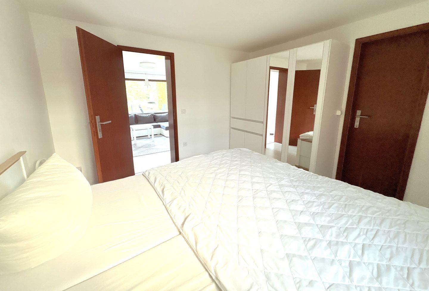 Im Schlafzimmer finden Sie ein Doppelbett im Maß 180 x 200cm.