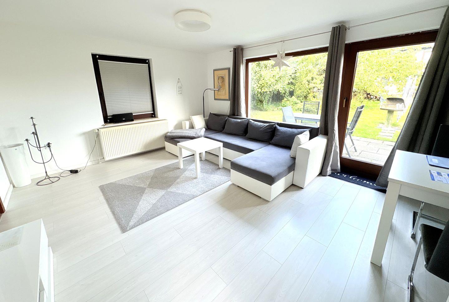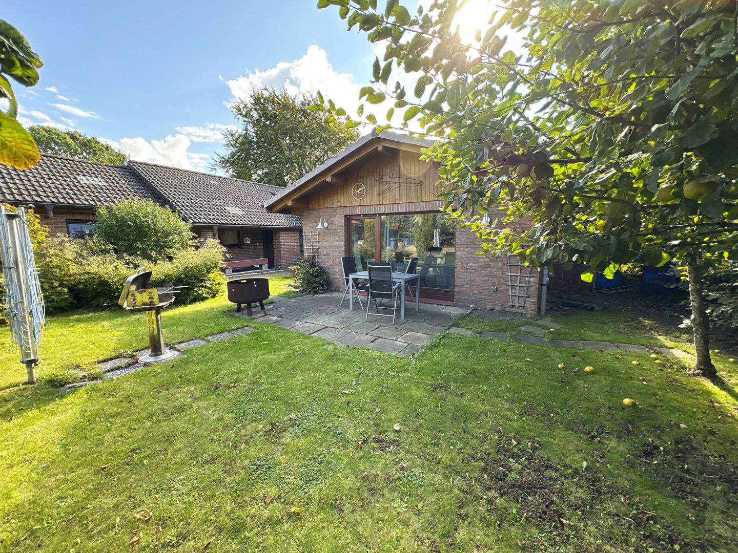 Gemütlicher Bungalow mit Terrasse, Feuerschale und WLAN im ruhigen Wiek, ideal für erholsame Ferien in naturnaher Lage.