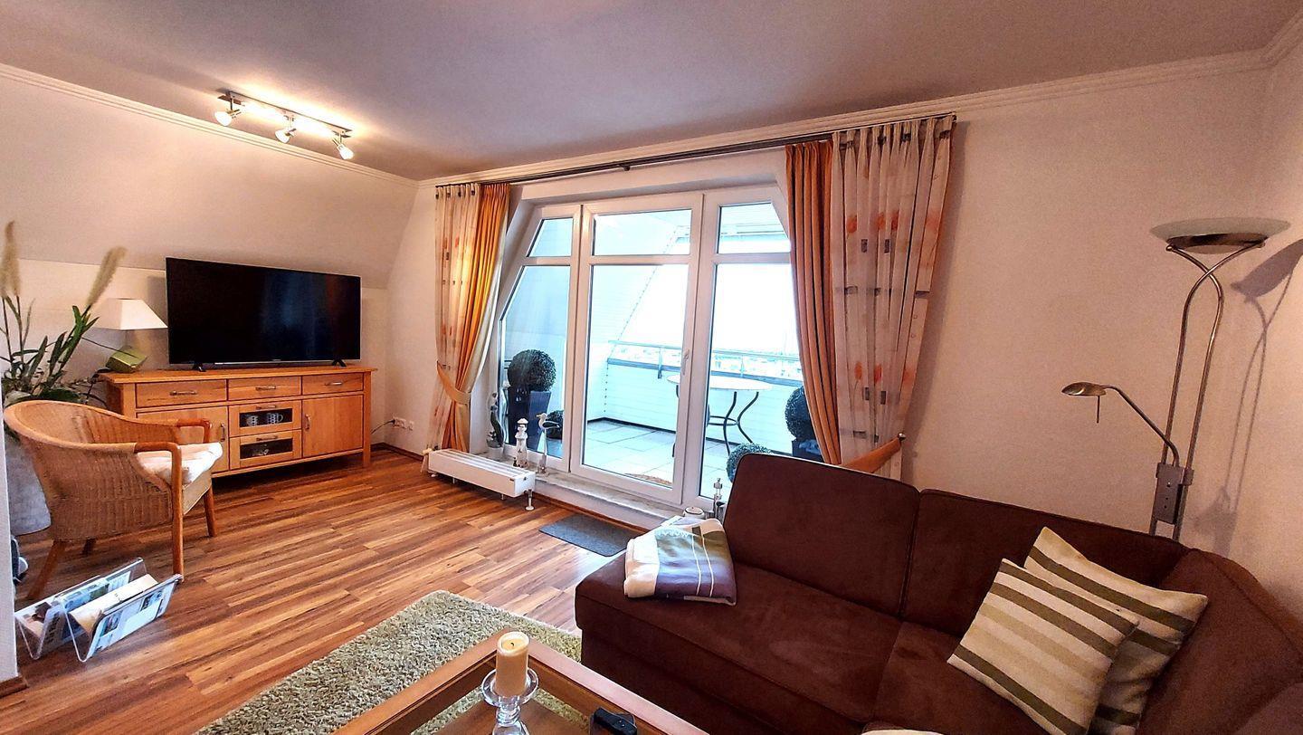 Die 3-Zimmer-Wohnung bietet ein gemütliches Wohnzimmer mit vorgelagertem Balkon. Es gibt zwei Schlafzimmer: ein Schlafzimmer mit Doppelbett und zusätzlichem TV sowie ein weiteres Schlafzimmer mit zwei Einzelbetten. Die moderne, helle Küche ist separat mit einem Esstisch. Sie ist komplett ausgestattet mit Geschirrspüler, Cerankochfeld, Backofen, Kühlschrank mit Gefriermöglichkeit, Kaffeemaschine, Toaster und Wasserkocher.