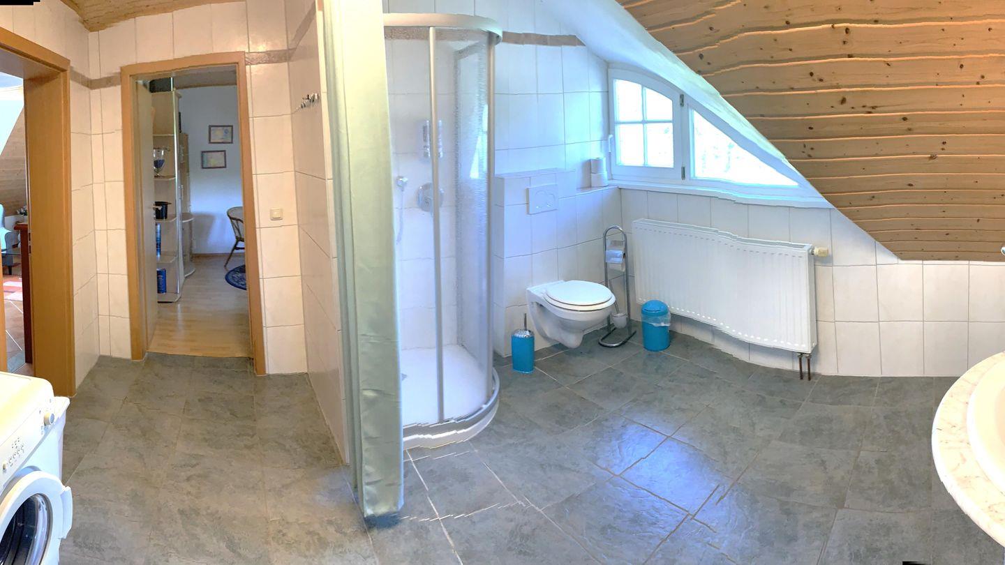 Das geräumige Badezimmer bietet eine Dusche, Waschbecken, WC und eine Waschmaschine. WLAN, Zentralheizung und ein eigener Pkw-Stellplatz sind ebenfalls vorhanden.