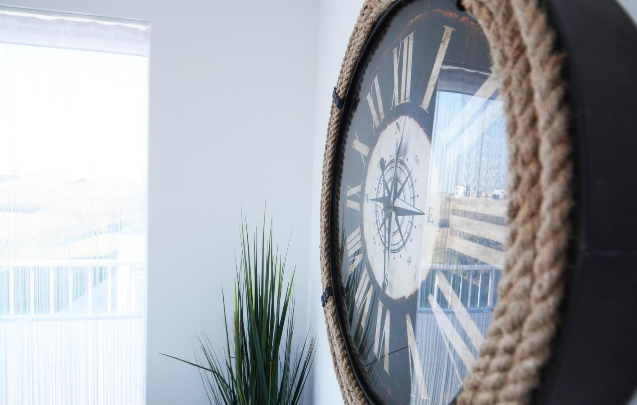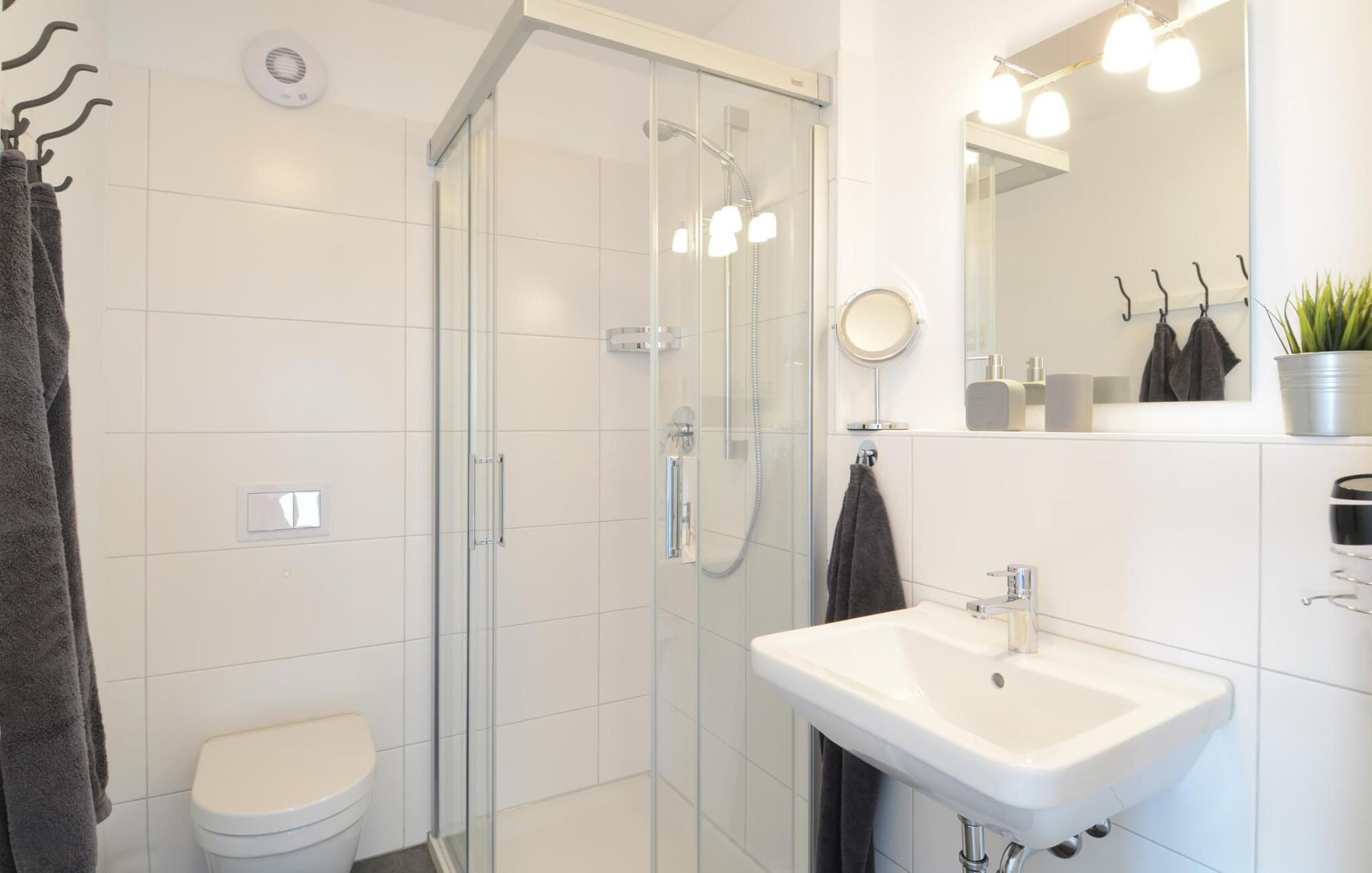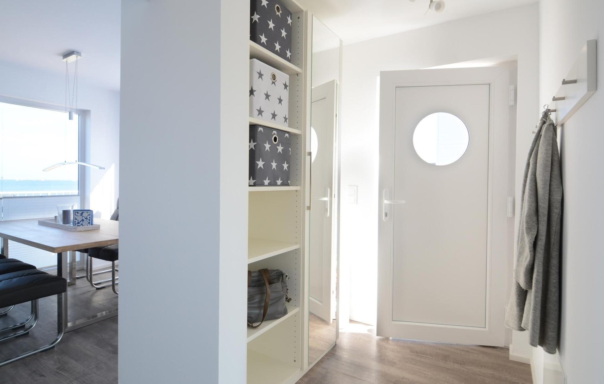Die Ferienwohnung Wilbur punktet außerdem mit einem privaten Wellnessbereich: Eine Infrarot Wärmekabine mit Hifi-Sound-System und LED-Farblichttherapie sowie eine große Relax-Whirlwanne mit Wasserblick stehen nach dem Strandspaziergang zum Tiefenentspannen bereit. Auch eine bodengleiche Dusche mit Wasserblick befindet sich im Hauptbadezimmer.