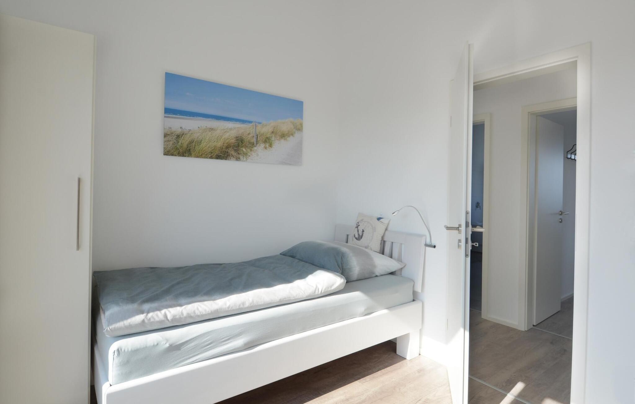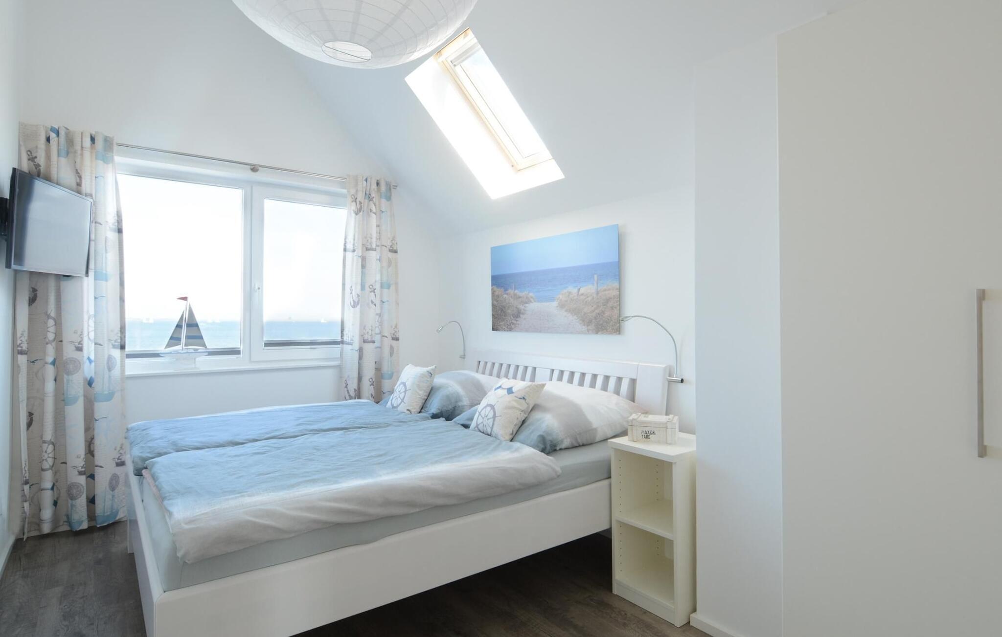 Auf der zweiten Ebene befindet sich der Ruhebereich der Ferienwohnung. Das Hauptschlafzimmer verfügt über einen traumhaften Schleiblick. Einschlafen unter Sternen, ein Dachfenster erlaubt nicht nur den Blick in den Sternenhimmel, sondern auch in traumhafte Wolkenformationen, die so charakteristisch sind für den Norden. Das Hauptschlafzimmer verfügt über einen zusätzlichen Flatscreen-TV. Das zweite Schlafzimmer ist mit zwei bequemen Einzelbetten ausgestattet.
