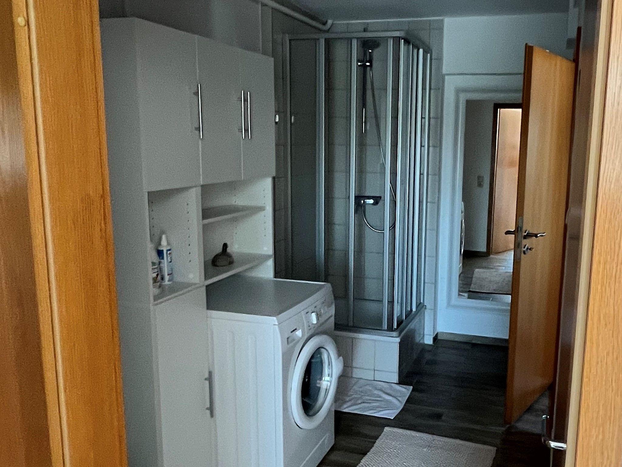 Im Erdgeschoss finden Sie die geräumige, voll ausgestattete Küche mit Eckbank, ein gemütliches Wohnzimmer mit Essecke sowie ein Badezimmer mit Wanne. Eine Dusche ist ebenfalls vorhanden. Diese befindet sich angrenzend an das Badezimmer in einem separaten Raum, in dem auch die Waschmaschine steht.