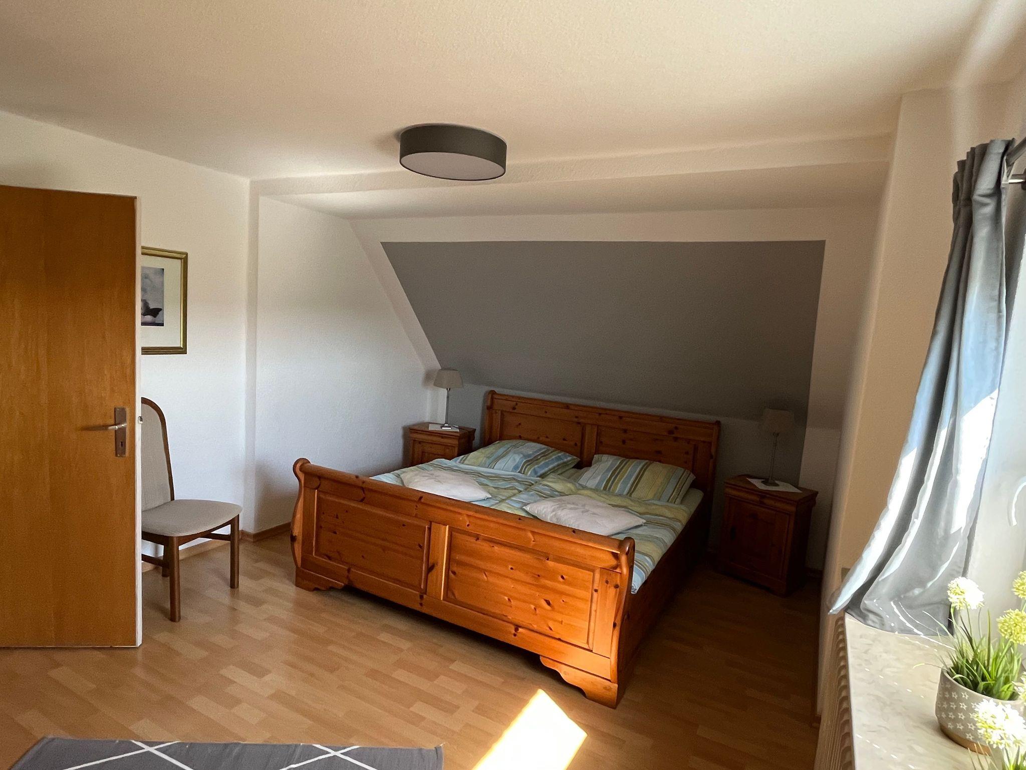 Die drei Schlafzimmer liegen im Obergeschoss. 2 Schlafzimmer sind direkt vom Flur aus erreichbar und verfügen jeweils über ein Doppelbett. Das dritte Schlafzimmer ist mit zwei Einzelbetten ausgestattet und über das kleinere der beiden anderen Schlafzimmer zu erreichen.