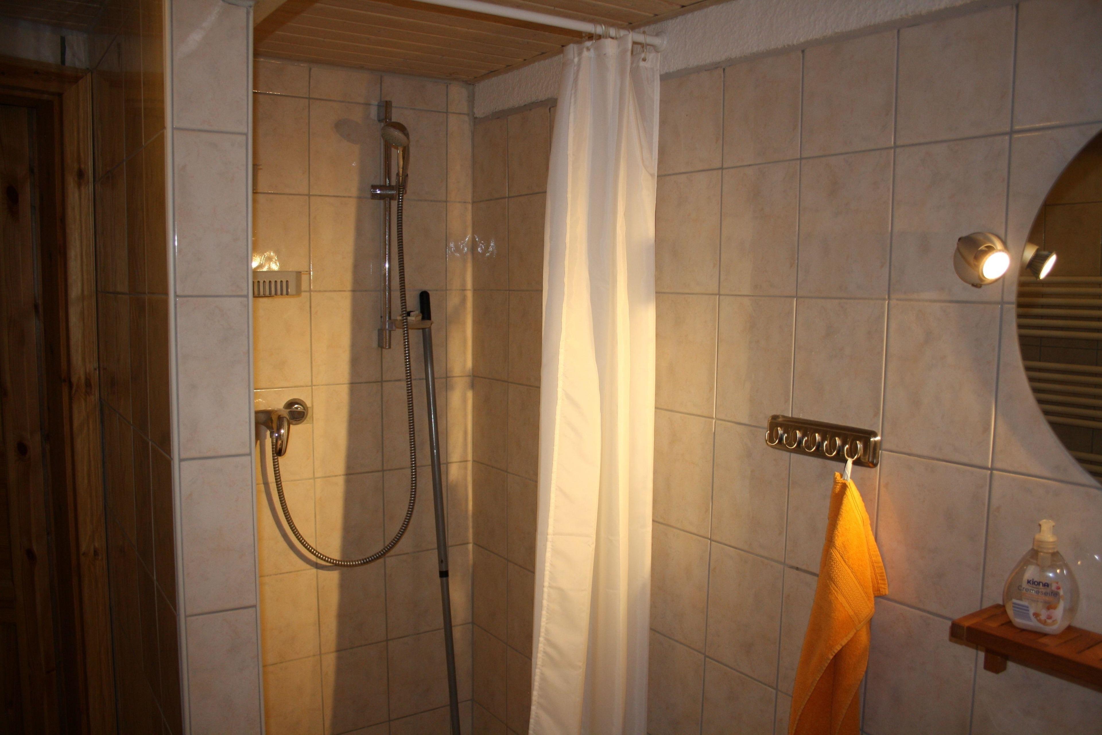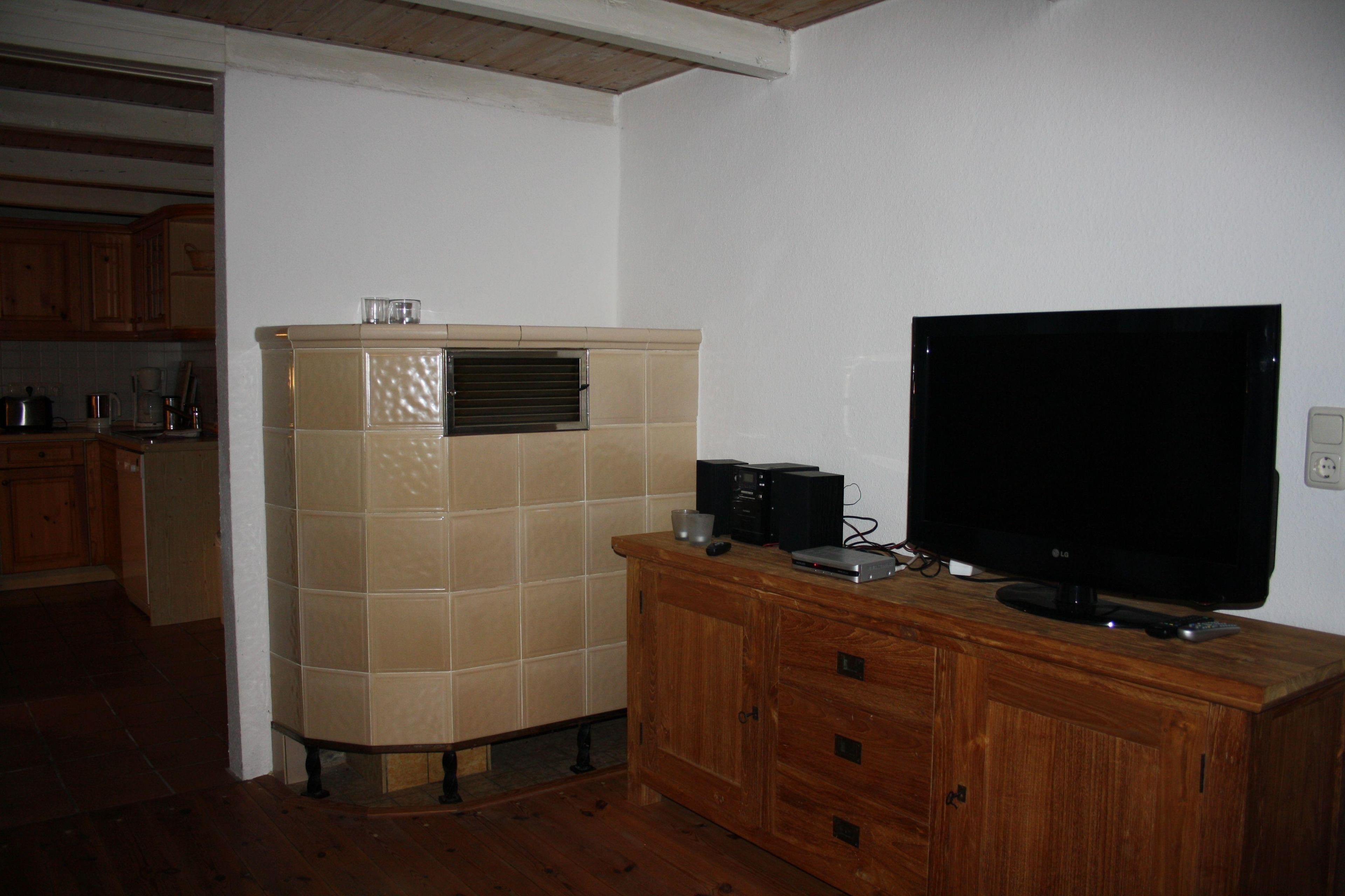 Dusche, voll ausgestattete Küche, Spülmaschine, Wohnzimmer, Sat-TV-Anlage, Schlafzimmer mit Doppelbett