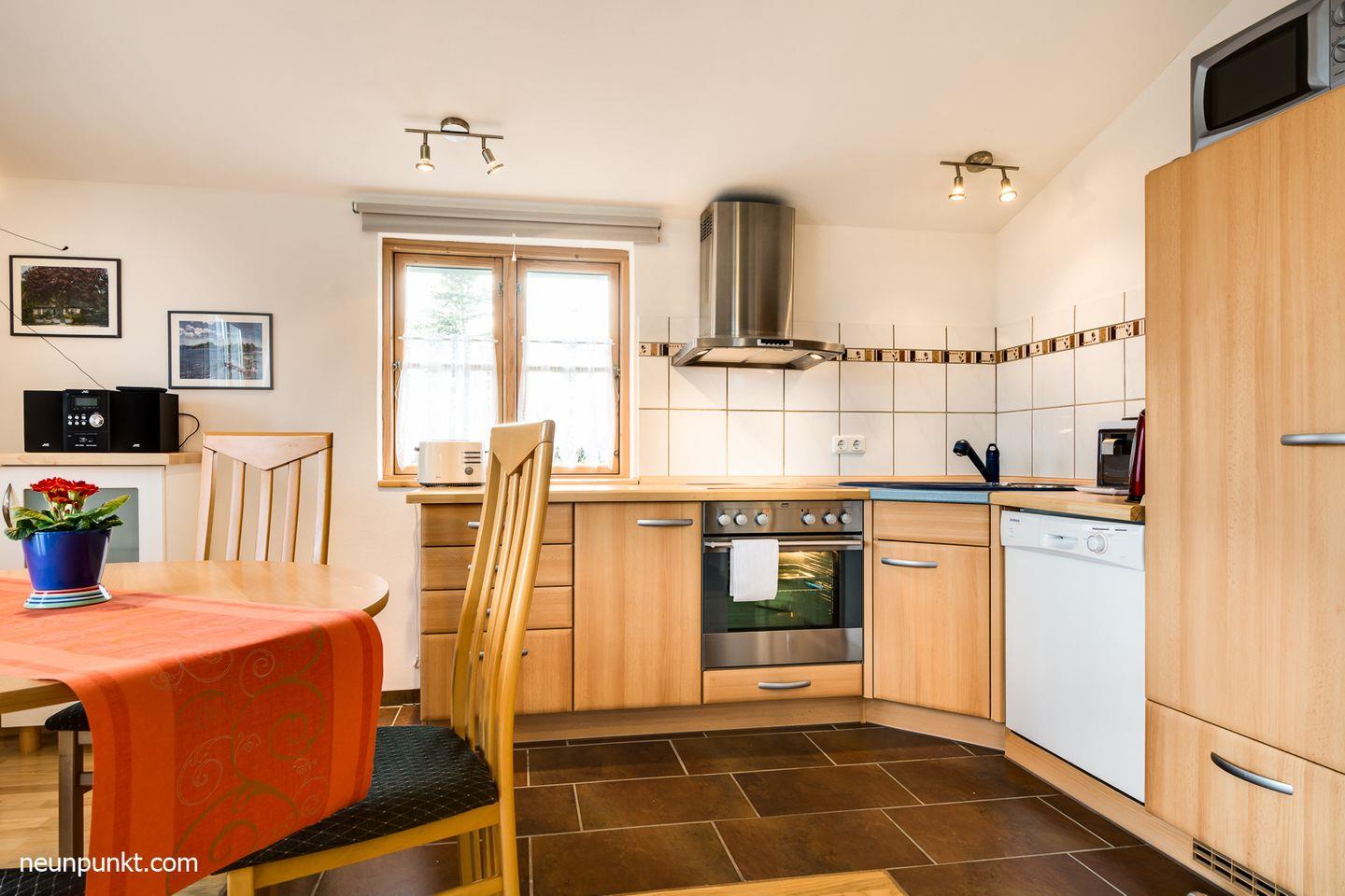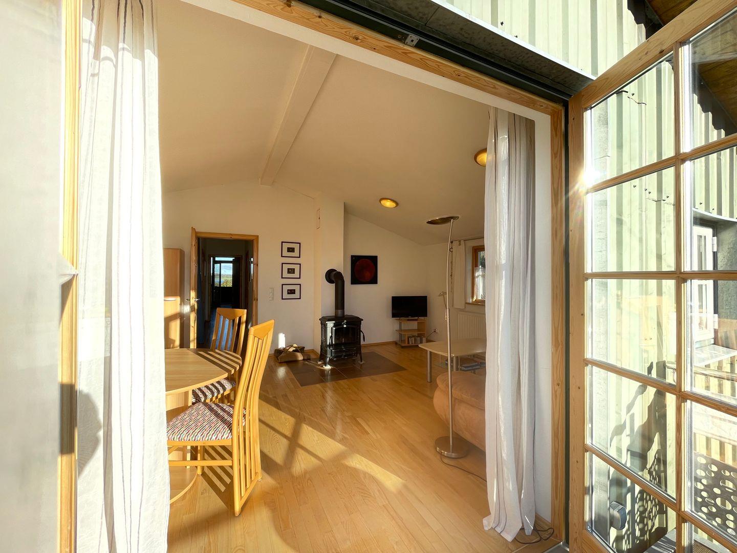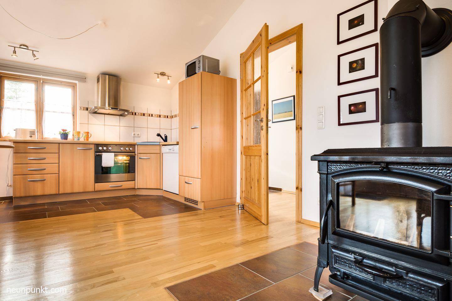 Moderne Ferienwohnung im Dachgeschoss mit Kaminofen, Süd-Balkon und moderner Küche in Winnemark.
