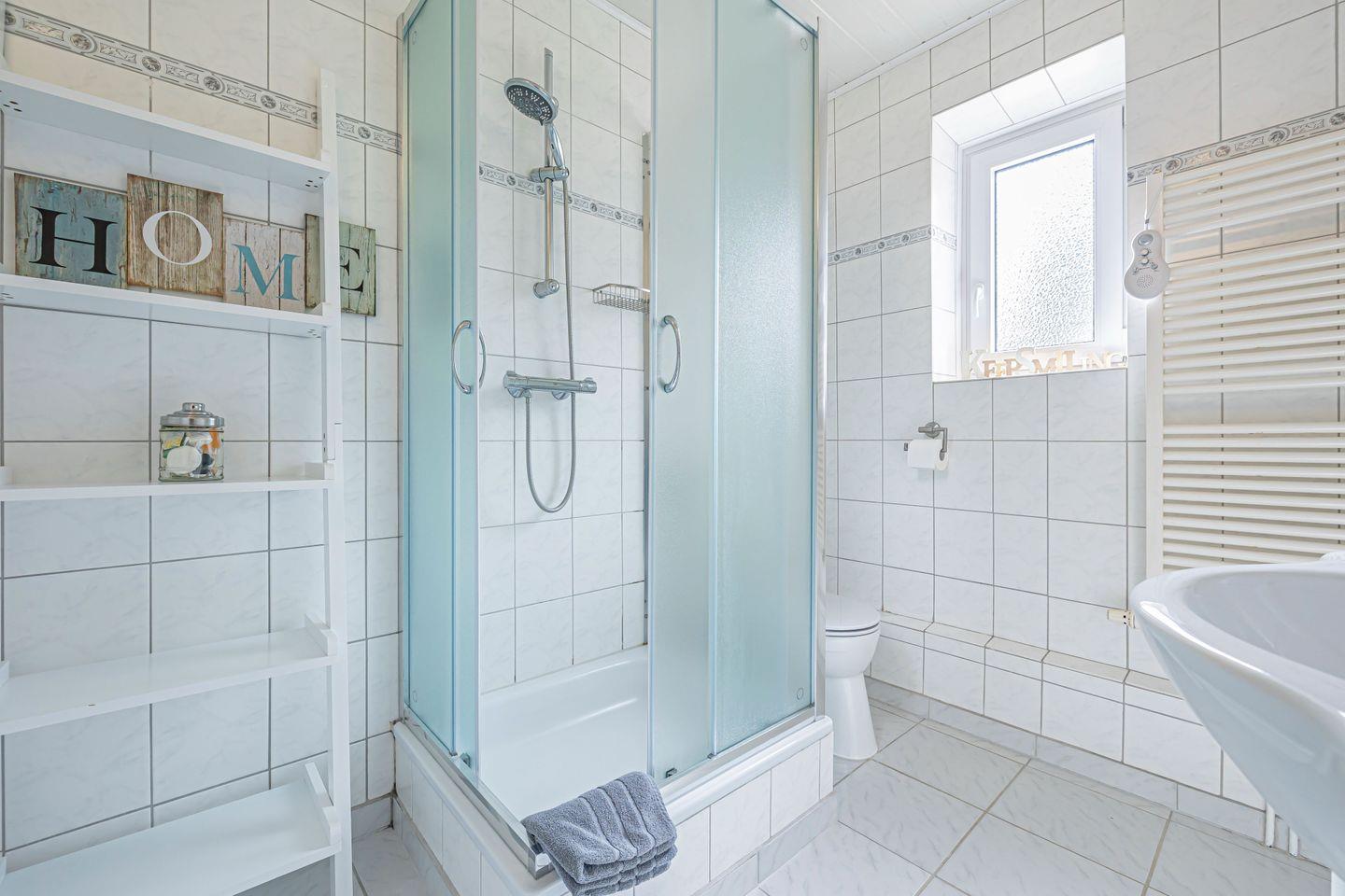 Zudem verfügt die Wohnung über ein Tageslichtbadezimmer mit Dusche, Fön und Kosmetikspiegel.
