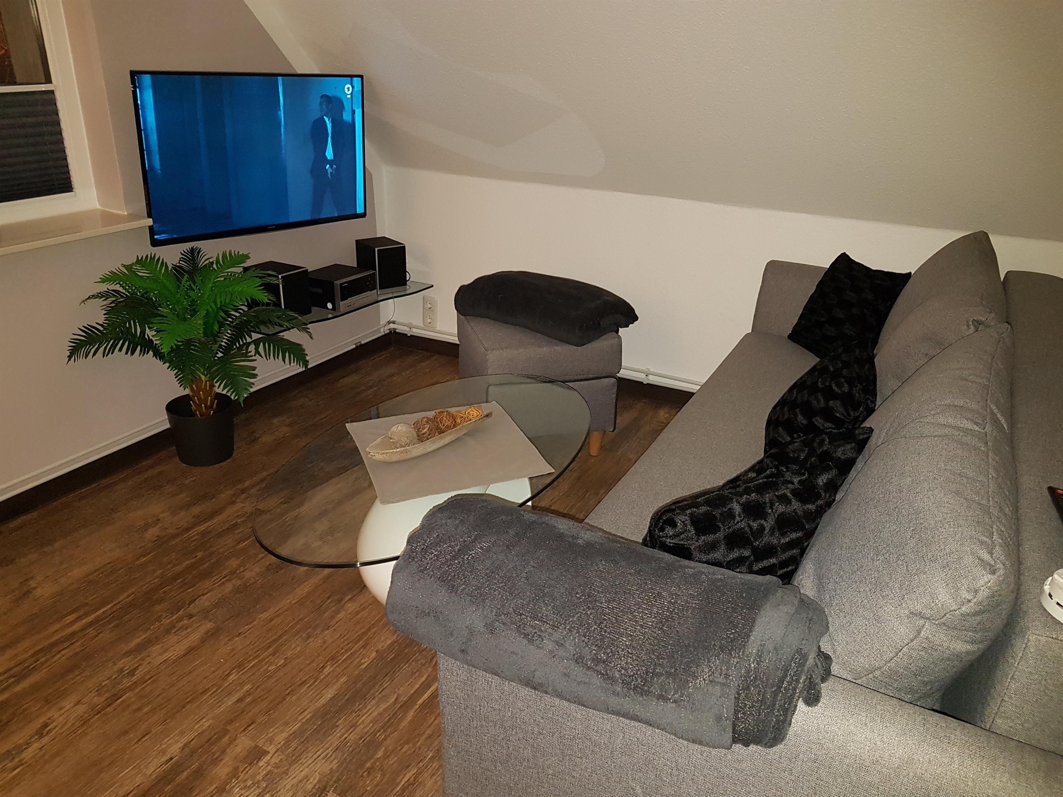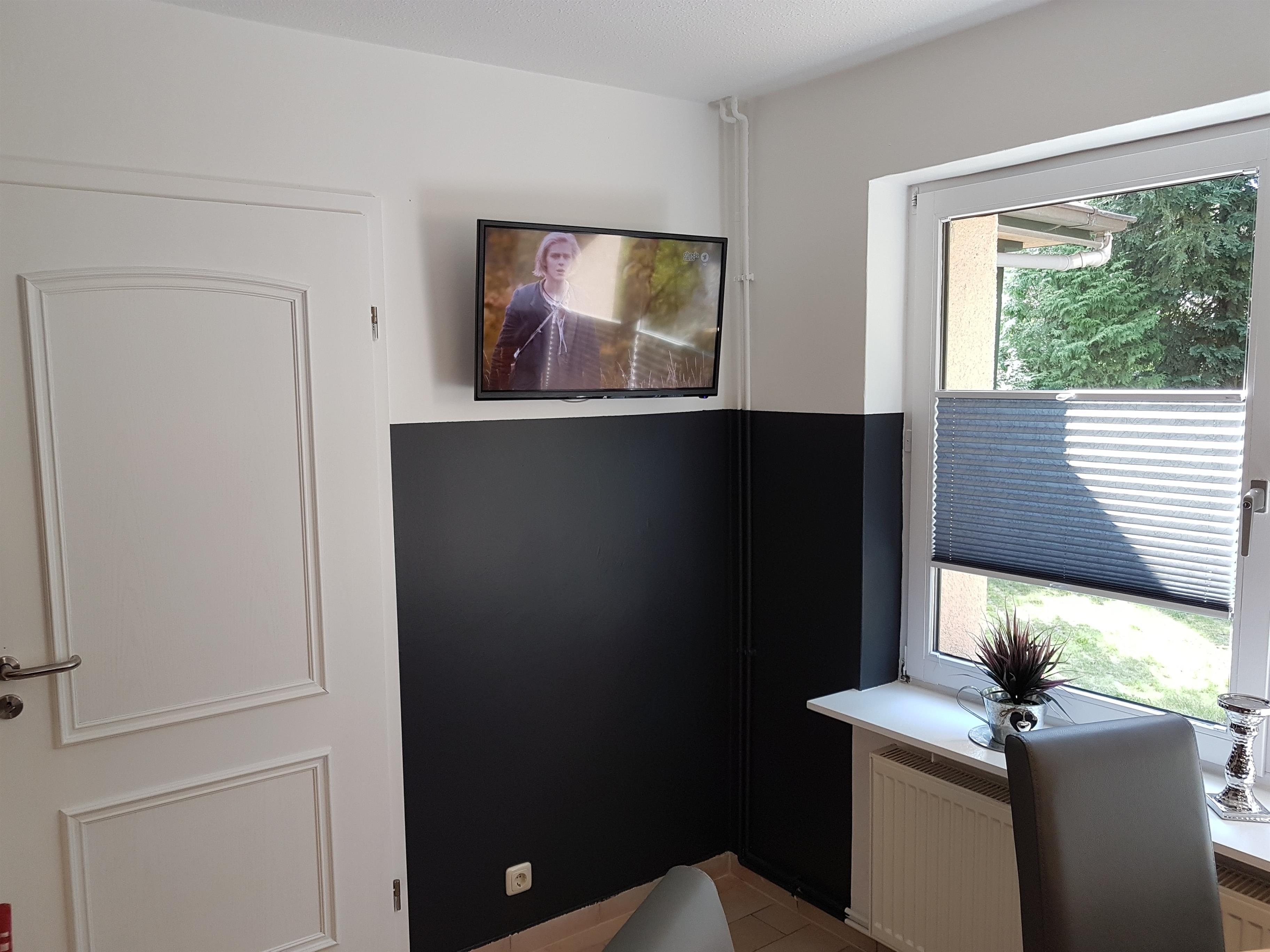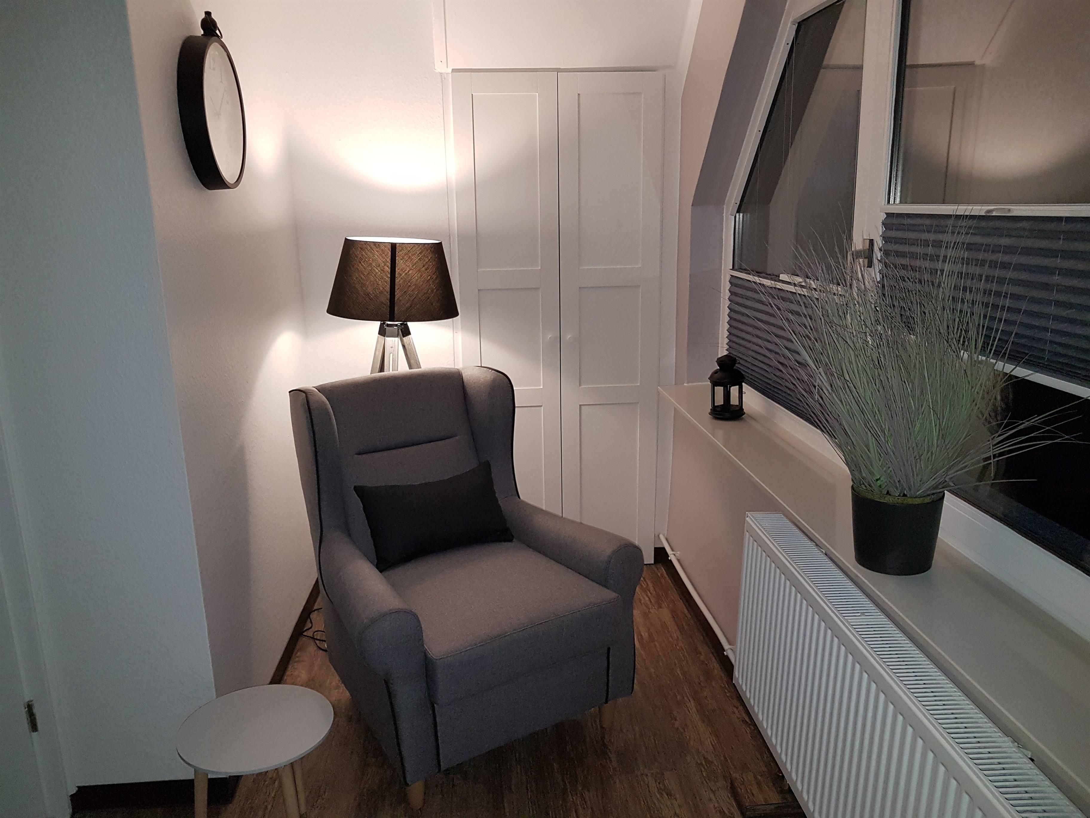 Ein gemütliches WZ mit TV und Ohrensessel lädt zu verweilen ein.