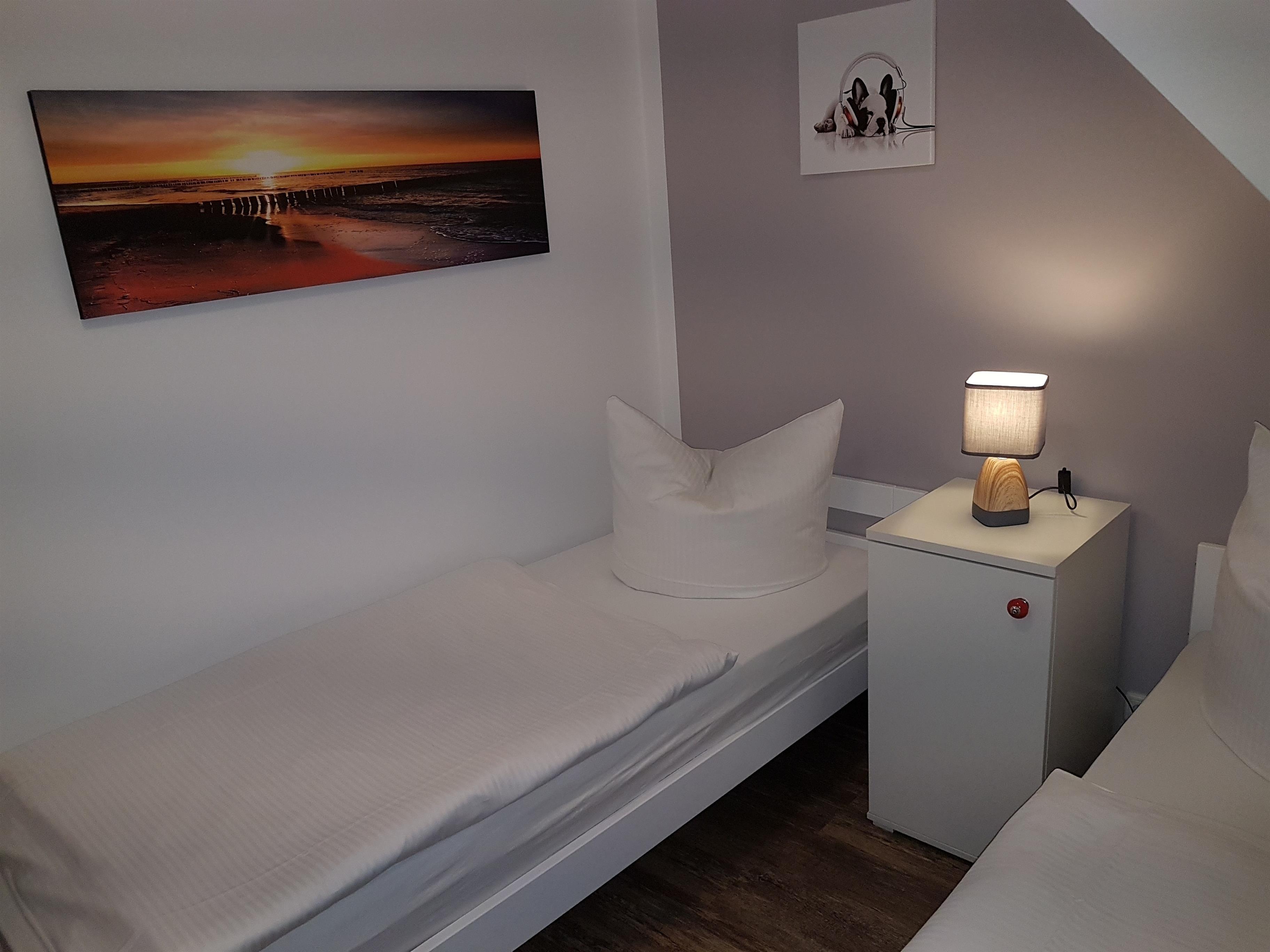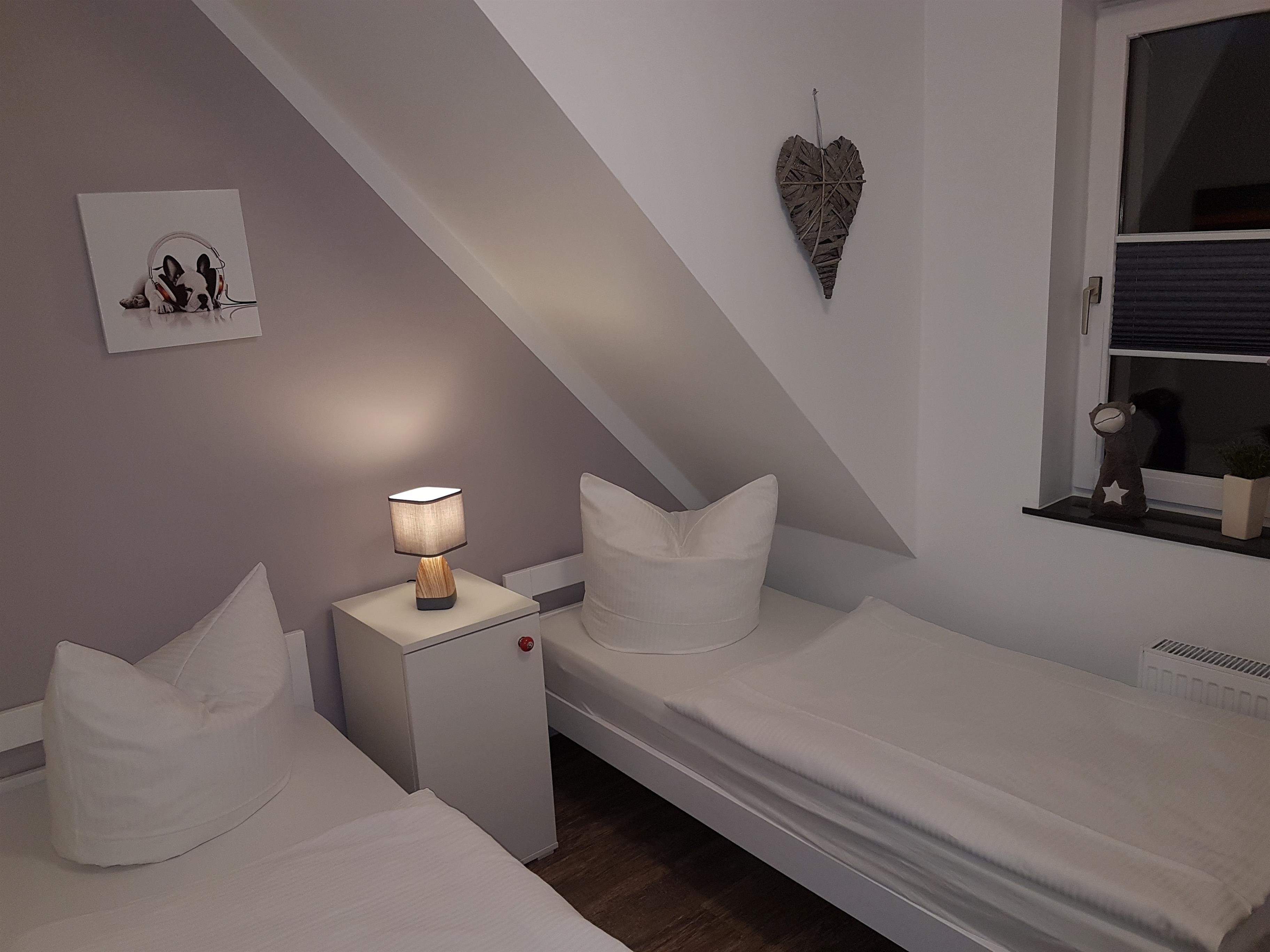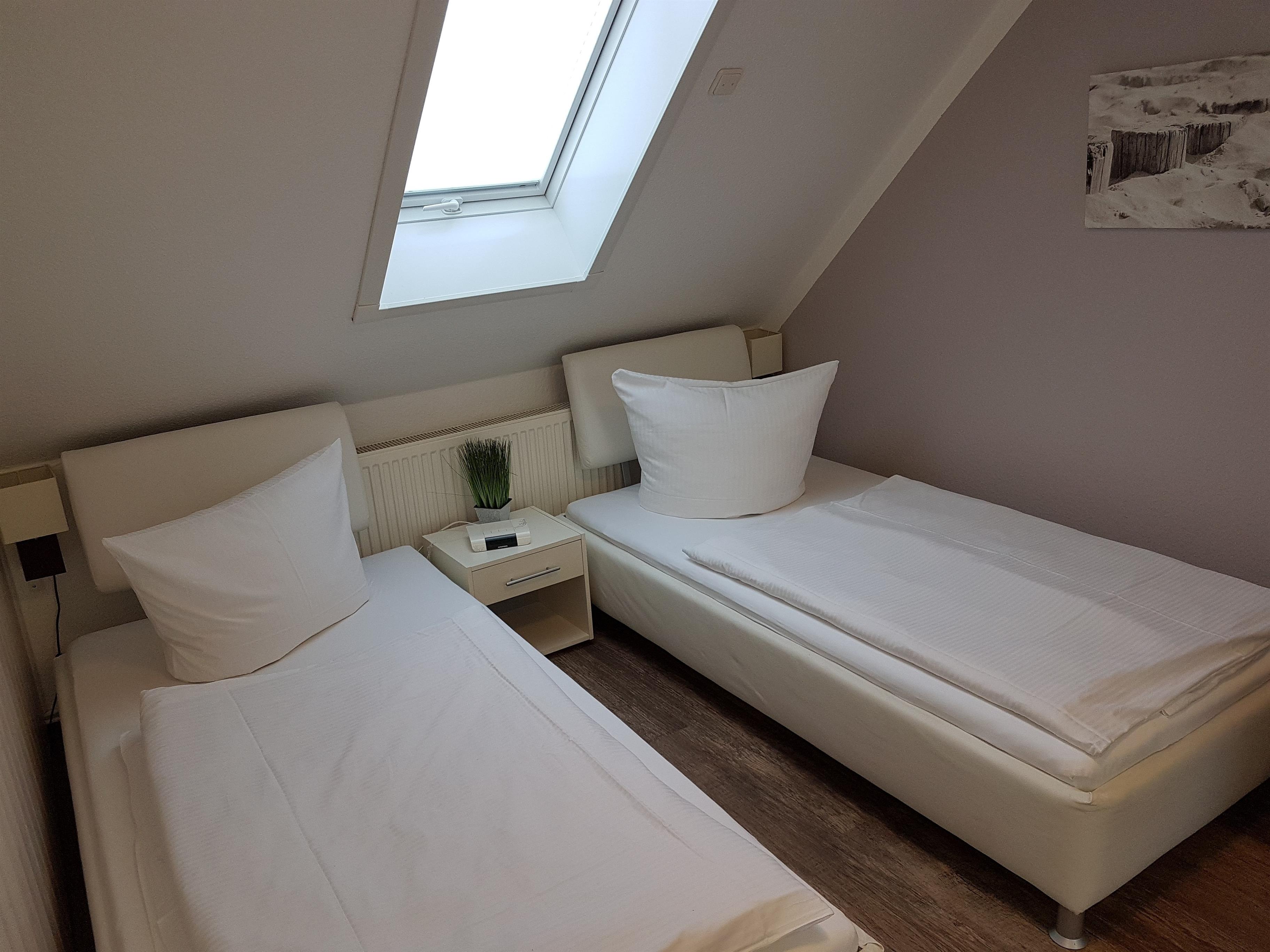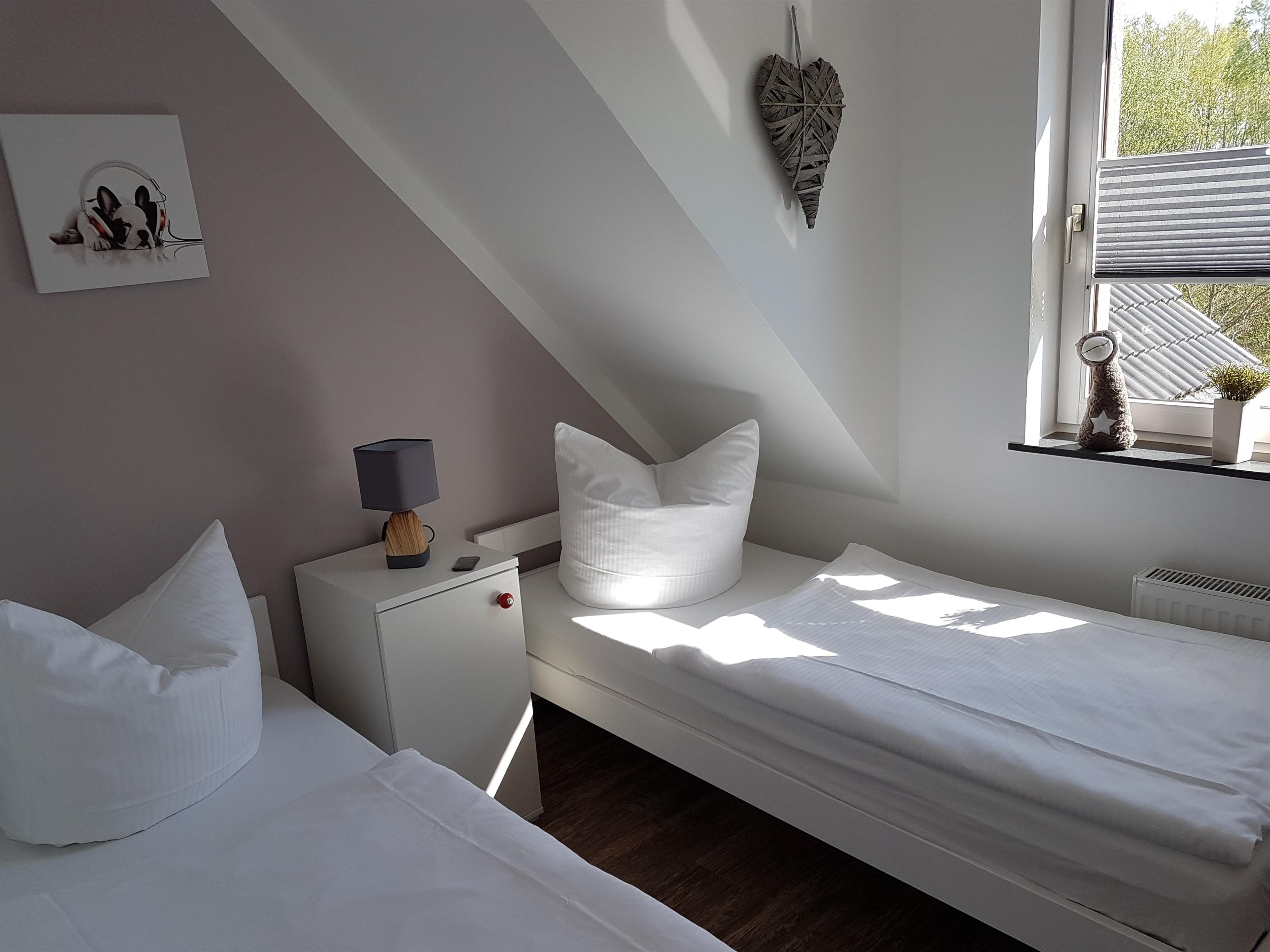 Die Betten sind einzelnd gestellt können aber durch einfaches Zusammenschieben als Doppelbett genutzt werden.