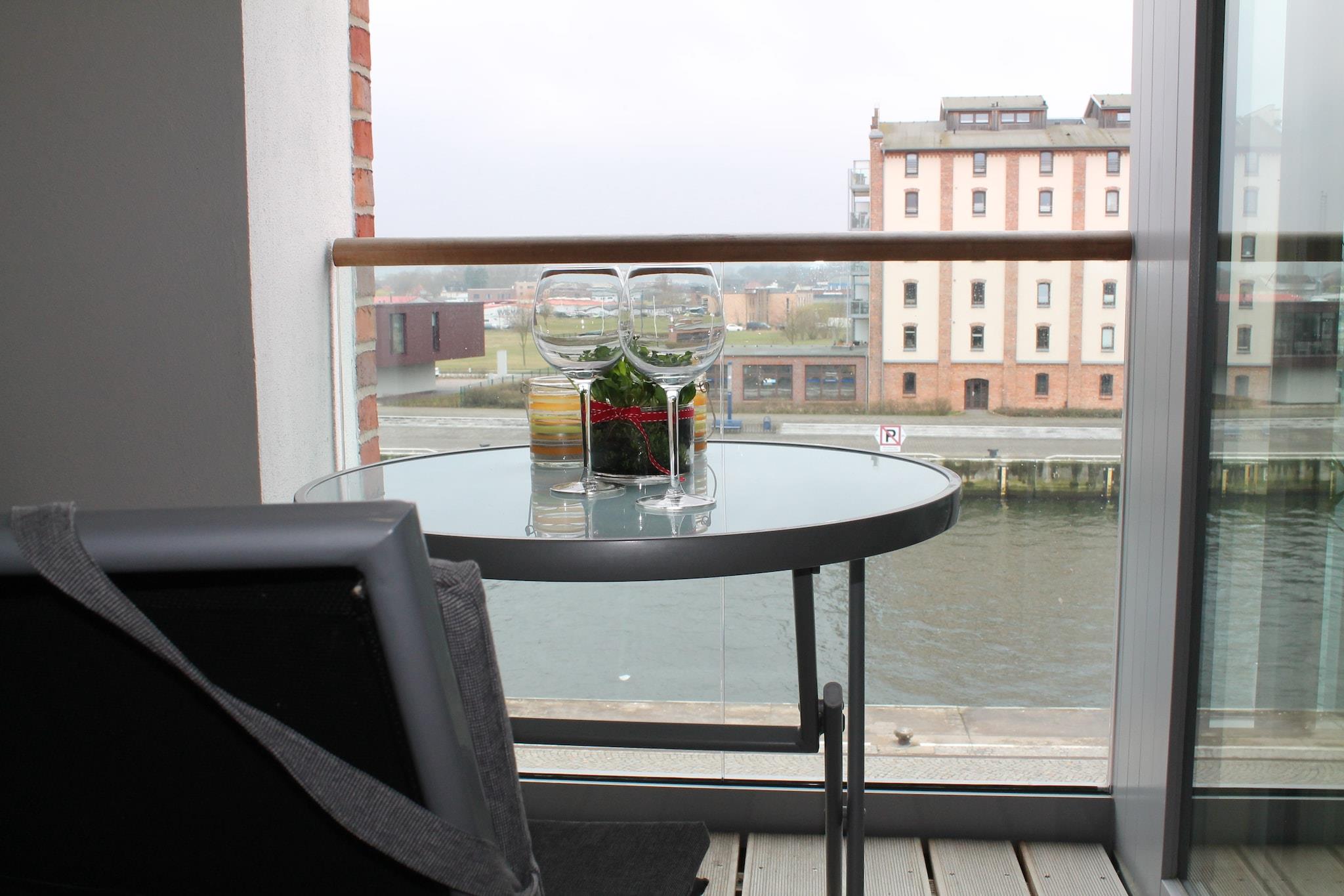 Gemütliches Apartment in Wismar mit Balkon und Blick auf die Ostsee, nahe Hafen und Altstadt, ideal für einen erholsamen Urlaub zu zweit.