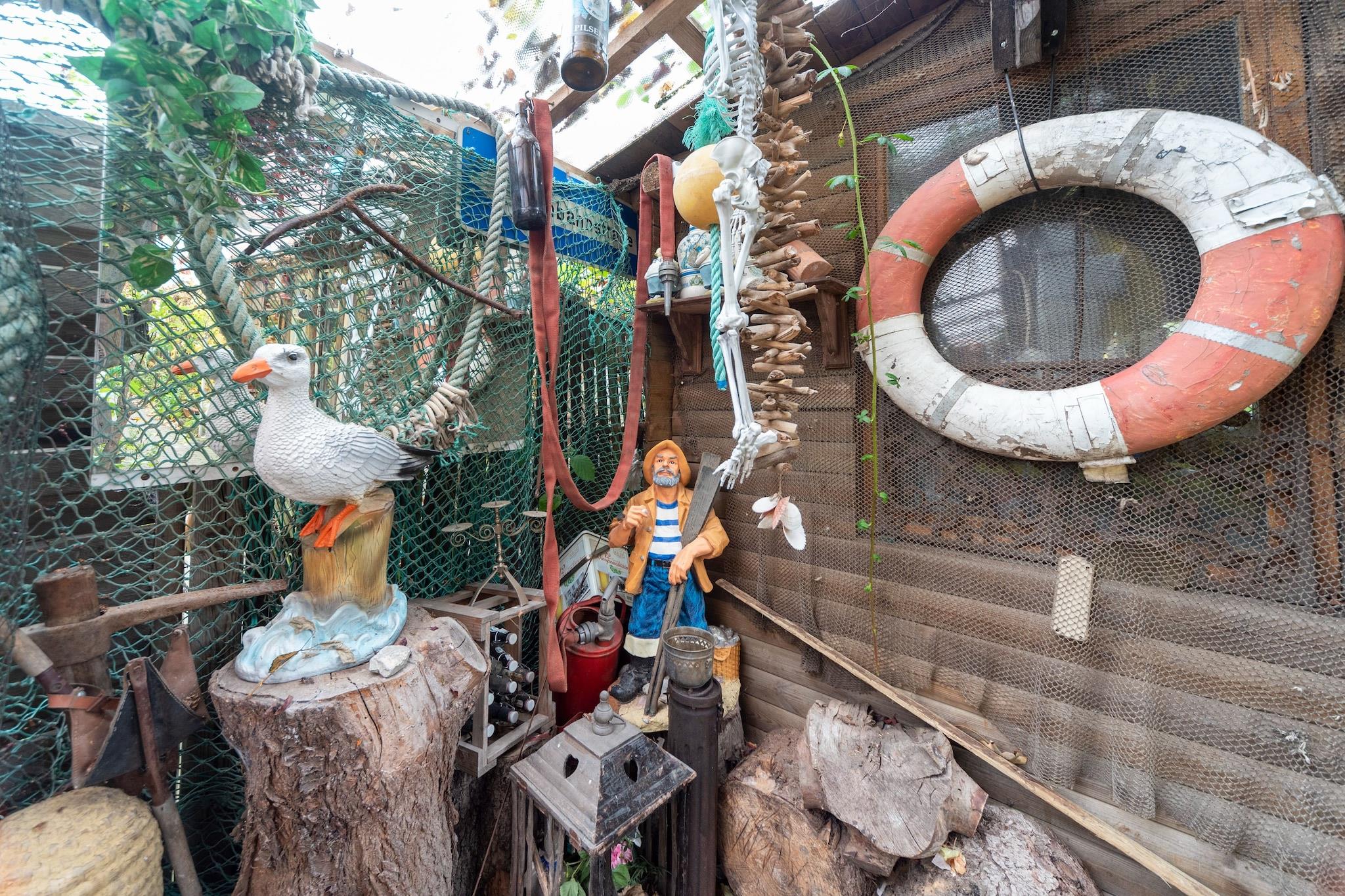 Parterre: (Eingang(von außen erreichbar), Esszimmer(Esstisch(2 Personen), Kühlschrank), offene Küche(Wasserkocher, Toaster, Kochherd(2 Kochplatten, elektrisch), Kaffeemaschine, Mikrowelle), Badezimmer(Dusche(ebenerdige Dusche), Waschbecken, Toilette)) In der 1. Etage: (Wohn-/Schlafzimmer(Doppelbett, TV(Satellit), Sitzecke, Radio)) Heizung, Klimaanlage, Terrasse(Gemeinschaftliche Nutzung mit anderen Gästen, überdacht), Terrasse, Garten(Gemeinschaftliche Nutzung mit anderen Gästen), Grill(Gemeinschaftliche Nutzung mit anderen Gästen), Parkplatz, Kinderbett