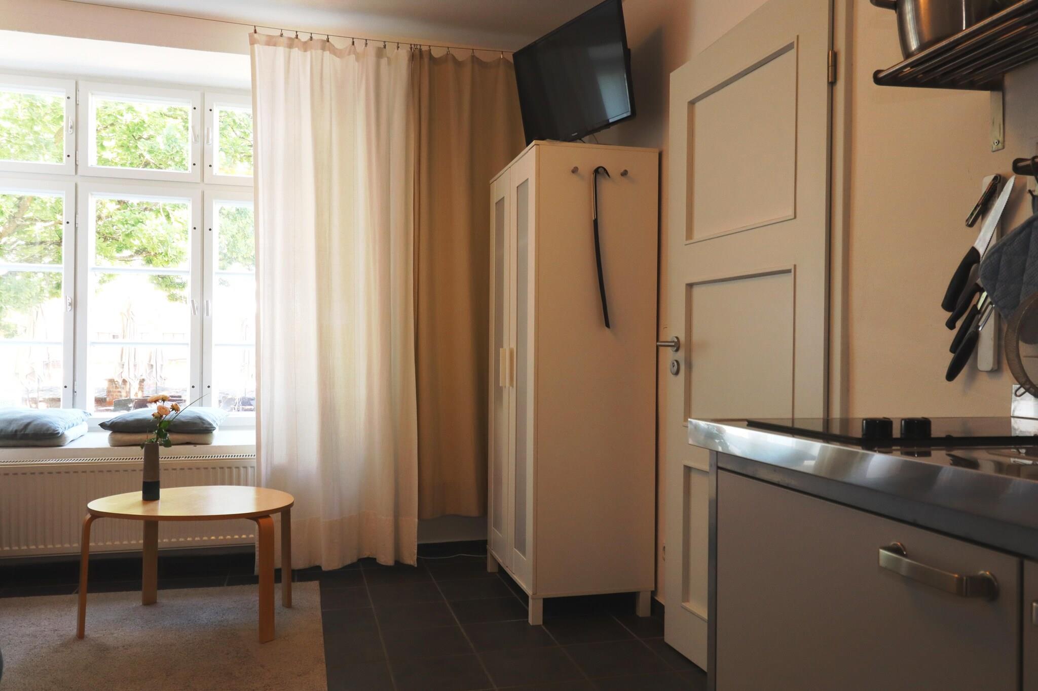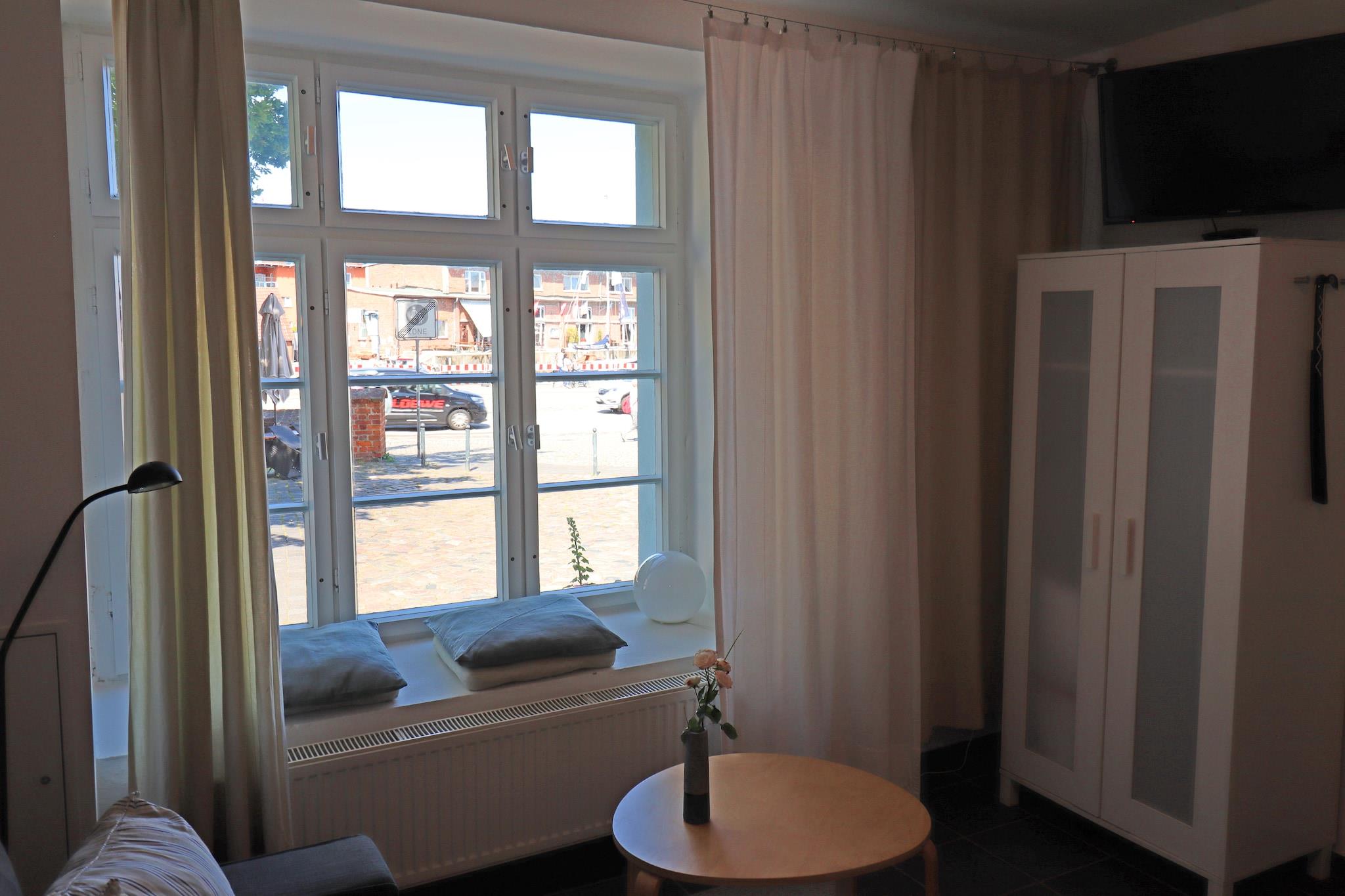 Charmantes Studio-Apartment in Wismar, 100 m von der Altstadt und dem Alten Hafen, mit Hafenblick und WLAN.