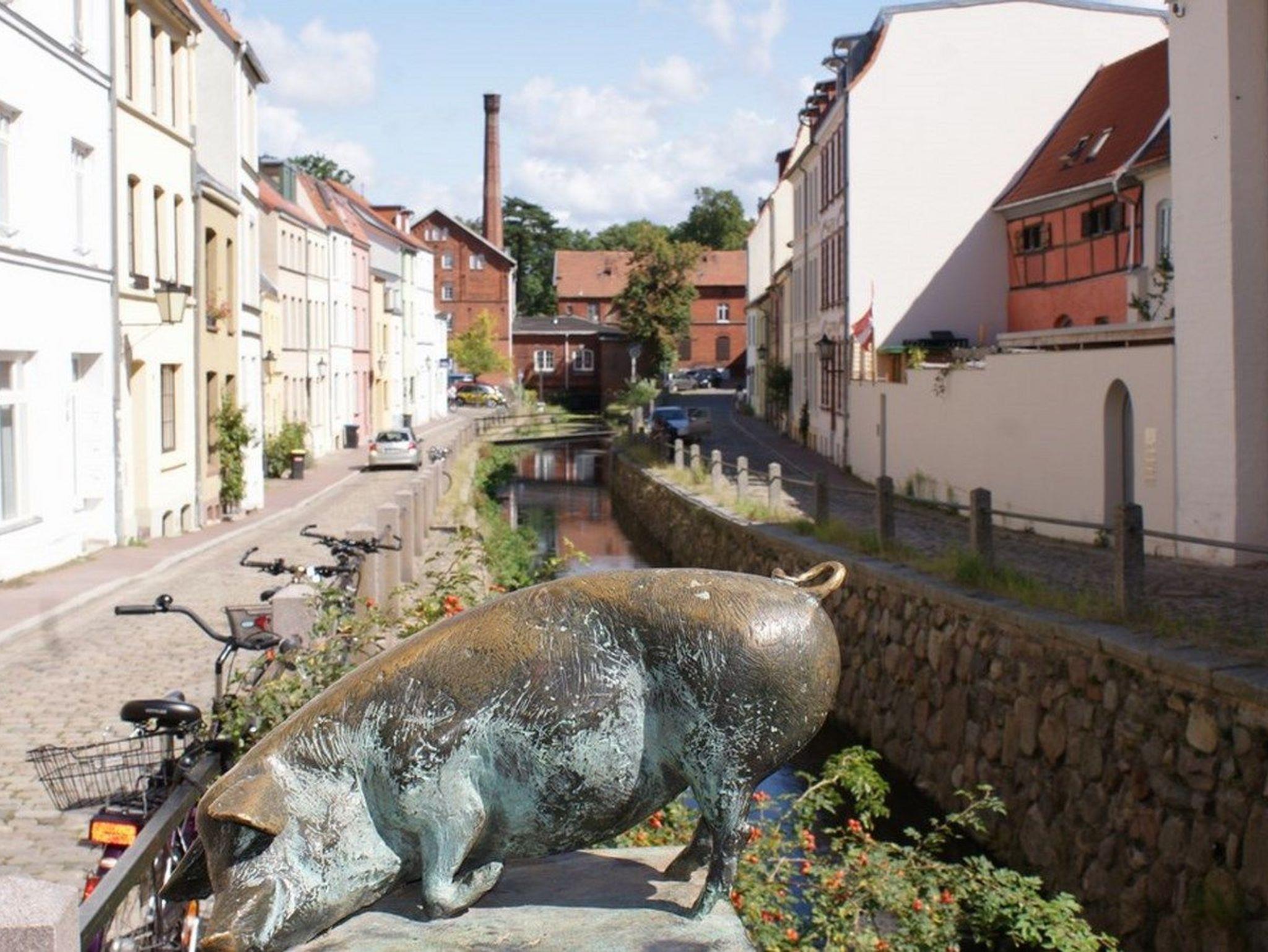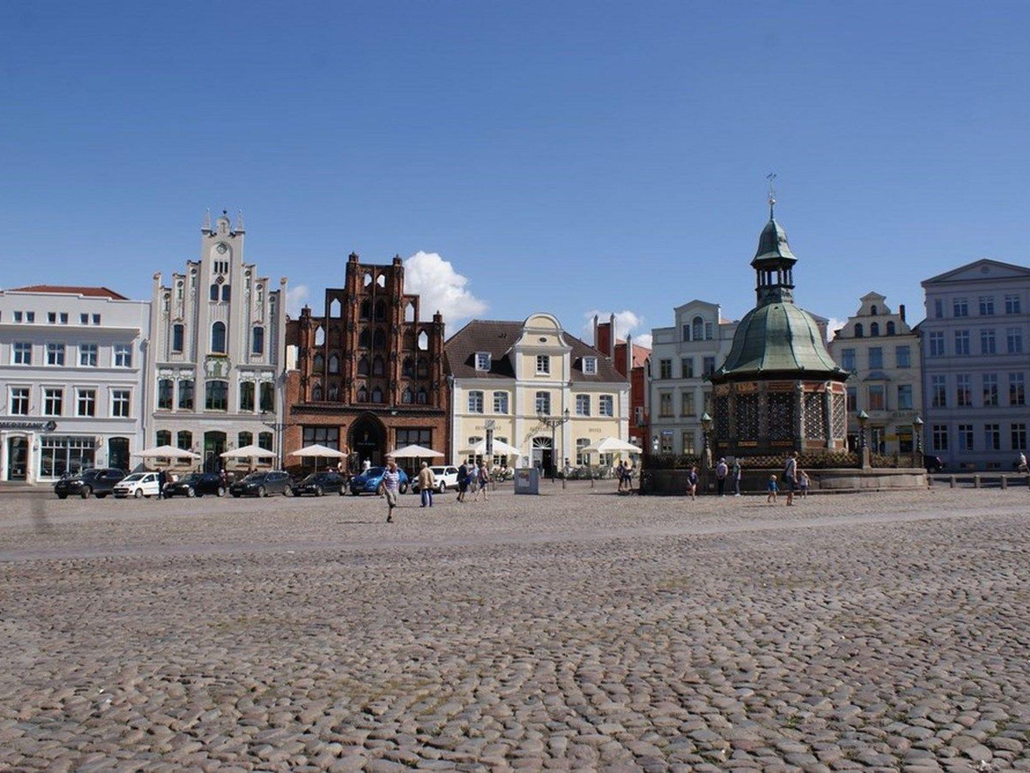 Der historische Wismarer Marktplatz und der Alte Hafen sind in wenigen Gehminuten zu erreichen.
