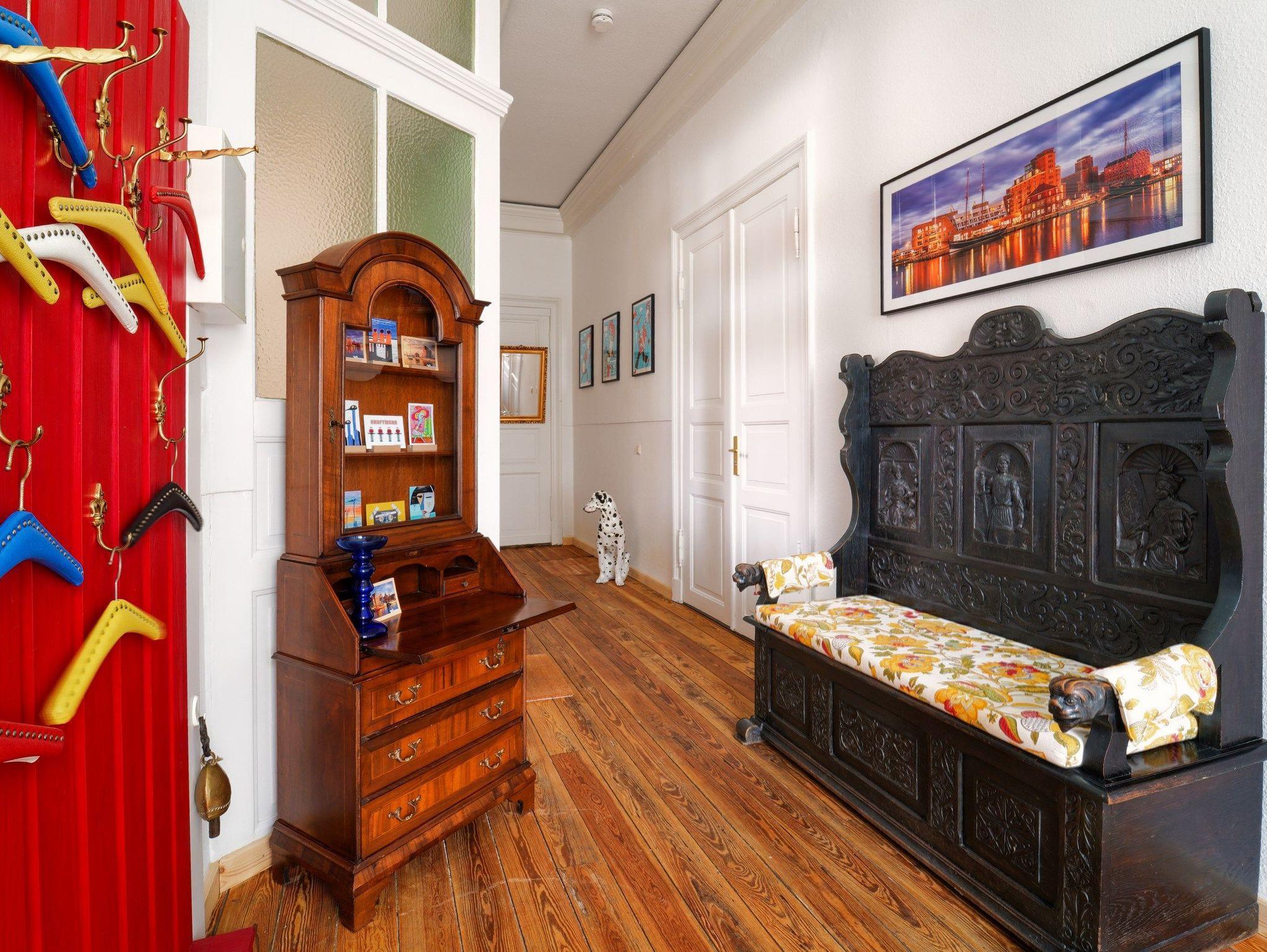 Erleben Sie maritimen Charme und historischen Flair in der stilvoll eingerichteten Ferienwohnung Gelbe Katze. Die großzügige Wohnung mit 115 m² Wohnfläche liegt im Hochparterre eines gepflegten Stadthauses am ruhigen Rand des Altstadtrings von Wismar einer der schönsten Hansestädte an der Ostseeküste. Der malerische Marktplatz mit seinen beeindruckenden Backsteinbauten, kleinen Geschäften, Cafés und Restaurants ist nur etwa 5 Gehminuten entfernt.