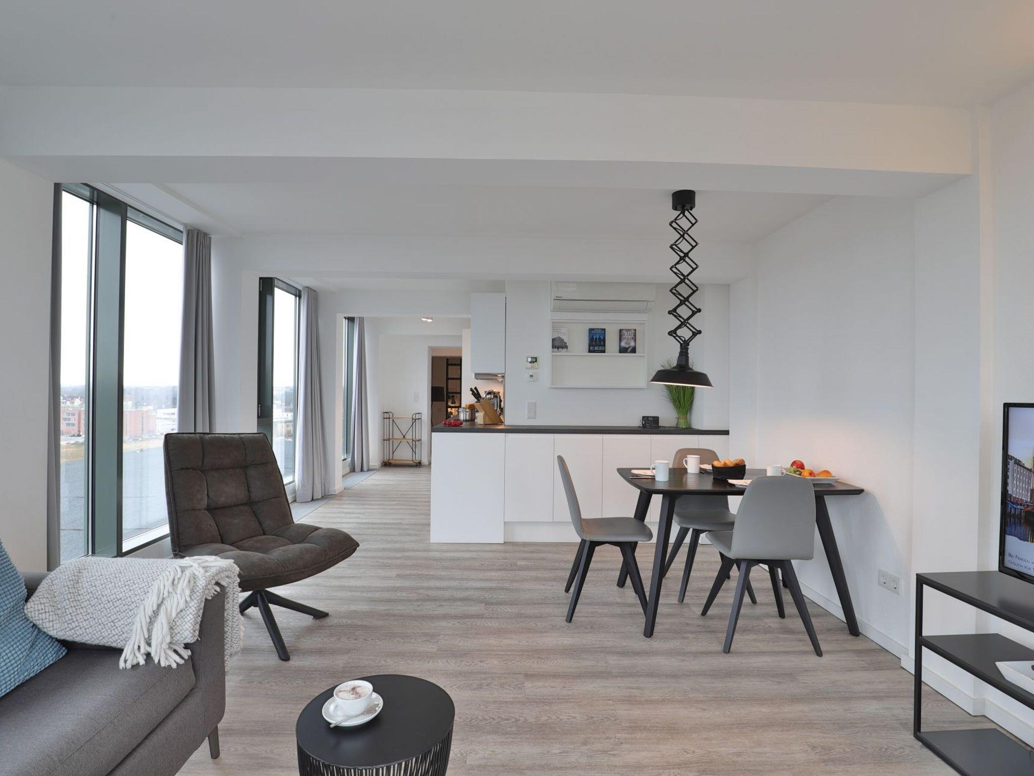 Das exklusiv eingerichtete 3-Zimmer-Apppartement bietet 85m² Wohnfläche für 2 Personen. Hier residieren Sie in der 8.Etage. Sie ist durch den Lift problemlos zu erreichen. Der geschmackvoll eingerichtete Wohnbereich ist mit einem Sofa, einem TV- Gerät und einer Essecke ausgestattet. Von dort gelangen Sie zur Dachterrasse und genießen einen unbeschreiblich traumhaften Ausblick. Die geschickt integrierte Küche (Glaskeramik-Kochfeld, Backofen, Kühlschrank mit Gefrierteil, Geschirrspüler...) lässt keine Wünsche offen. Das moderne Schlafzimmer mit Doppelbett und einem weiteren TV-Gerät, hat einen großen begehbaren Kleiderschrank und einen direkten Zugang zum großzügigen Badezimmer. Gerne können Sie hier mit Ihrem Haustier Ihren unvergesslichen Urlaub verbringen. Bei Anreise sind die Betten bezogen und Handtücher liegen für Sie bereit. WLAN steht Ihnen kostenfrei zur Verfügung. In unmittelbarer Nähe sind öffentliche Parkplätze vorhanden