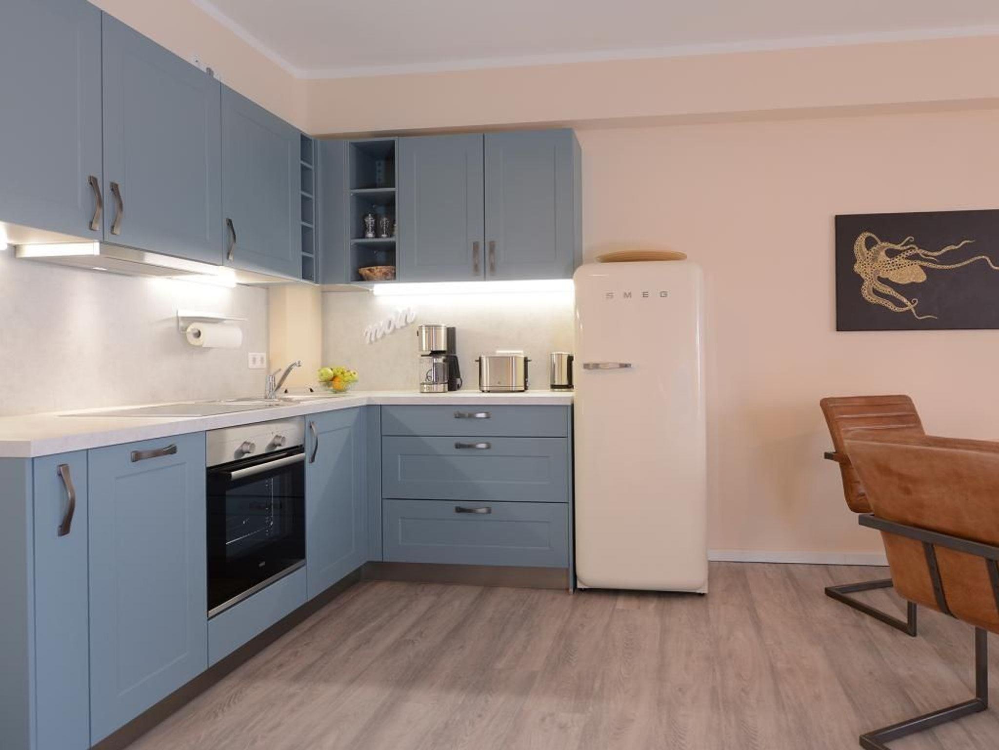 Dieses hochmoderne Appartement befindet sich in der 2 Etage dieses prachtvollen Gebäudes. Auf 48 m² Wohnfläche können hier 2 Personen einen Urlaub mit jeglichem Komfort genießen. In dem stilvoll eingerichteten Wohnzimmer mit Flachbild-Fernseher und Essecke ist die Küche geschickt integriert. Sie ist voll ausgestattet mit Geschirrspüler, Wasserkocher, Kaffeemaschine u.v.m. Das exklusive Appartement verfügt des Weiteren über ein Schlafzimmer mit Doppelbett und einem zweiten TV-Gerät. Das Duschbad ist in einer hochwertigen Bauausführung. Ein separates WC ist auch vorhanden. Bei Anreise sind 2 Betten bezogen und Handtücher liegen für Sie bereit. WLAN steht Ihnen kostenfrei zur Verfügung.