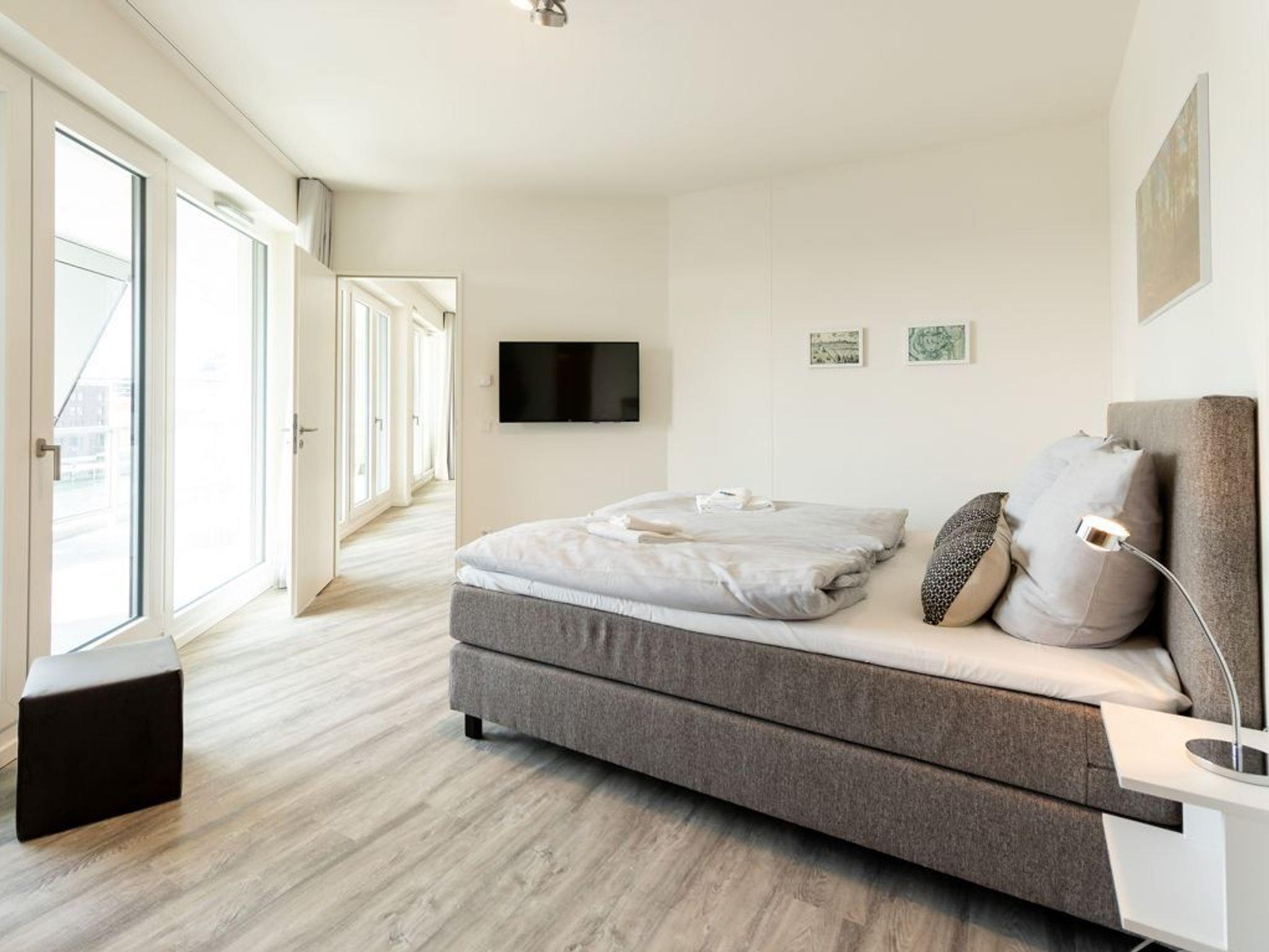 Die exklusive 2-Zimmer-Ferienwohnung Hafenspitze 38 befindet sich in der 3. Etage und ist mit dem Fahrstuhl bequem erreichbar. Die Wohnfläche beträgt 75qm für bis zu 4 Personen. Eine offene Küchenzeile ist im Wohnbereich integriert. Das separate Schlafzimmer mit Doppelbett grenzt an ein komfortables Duschbad. Ein zweites Duschbad ist vorhanden. Der sonnige Balkon bietet den Blick auf die Hafenpromenade. Bei Ihrer Ankunft sind die Betten für 2 Personen bereits bezogen. Handtücher/Duschtücher sind ebenso für 2 Personen inkludiert. Weitere Wäschepakete sind gegen Gebühr zu buchbar. Es handelt sich um eine Nichtraucherwohnung. Gegen Gebühr können Sie im öffentlichen Hafenparkhaus in ca. 300 Meter Ihr Fahrzeug parken.