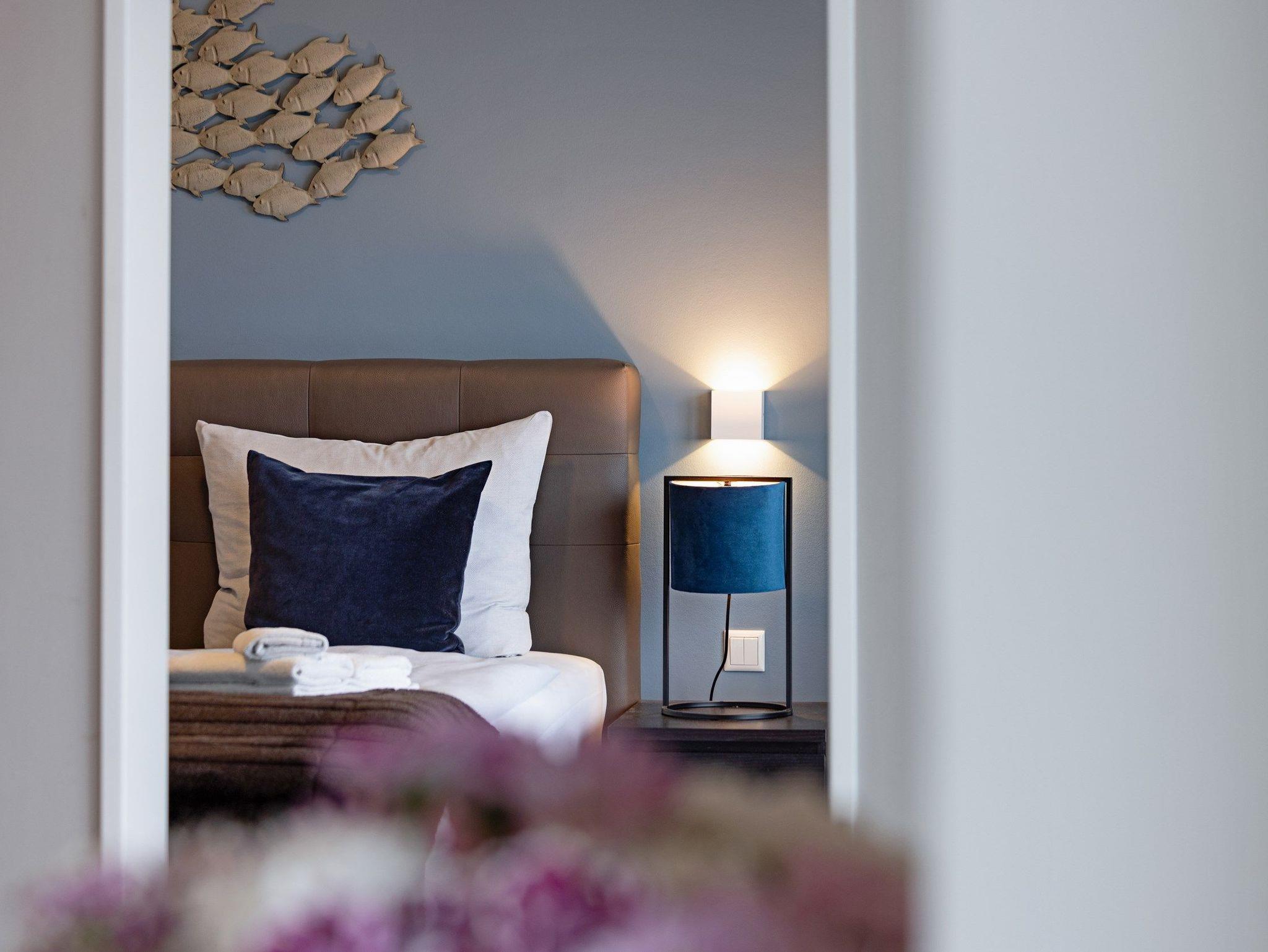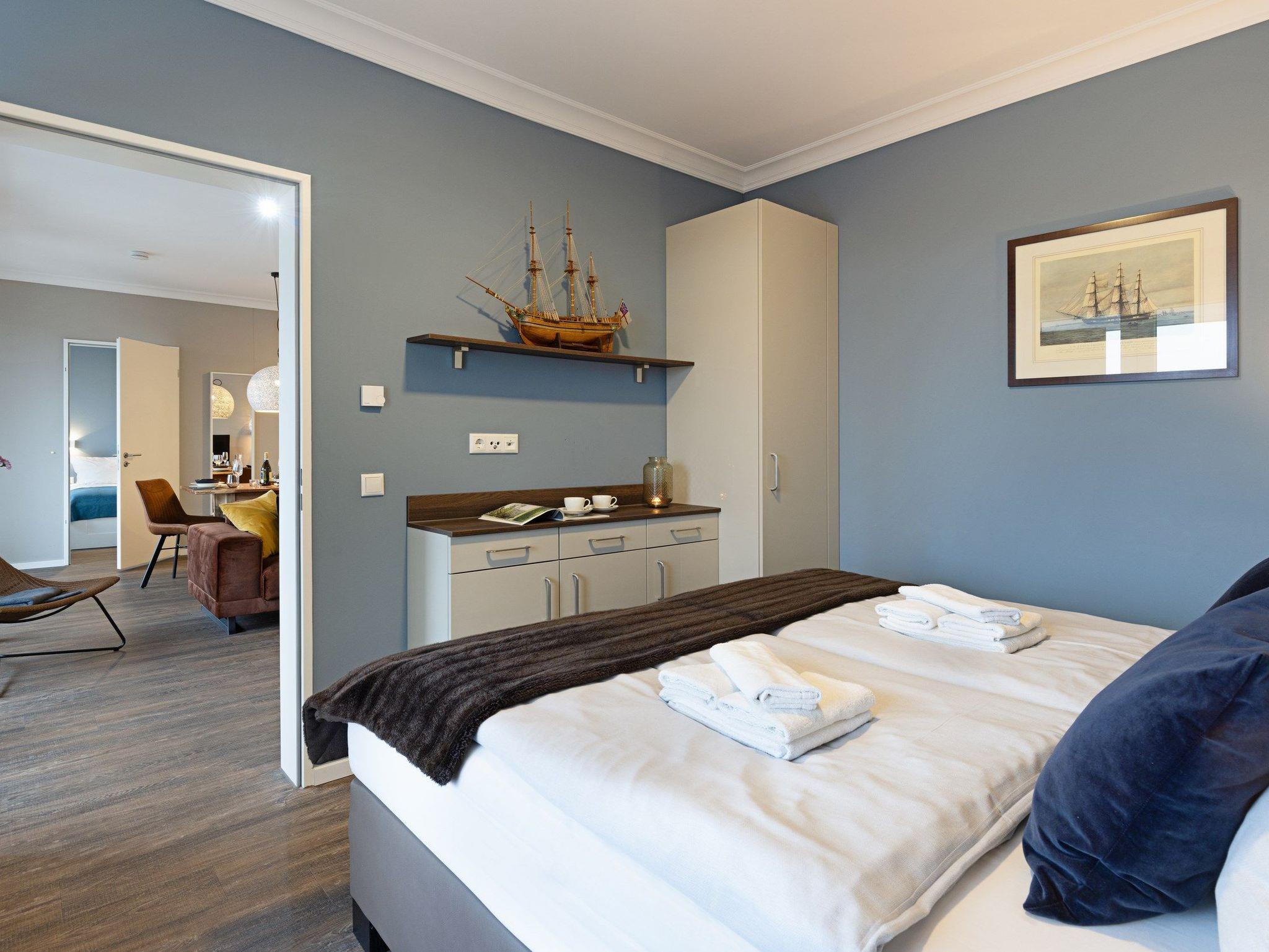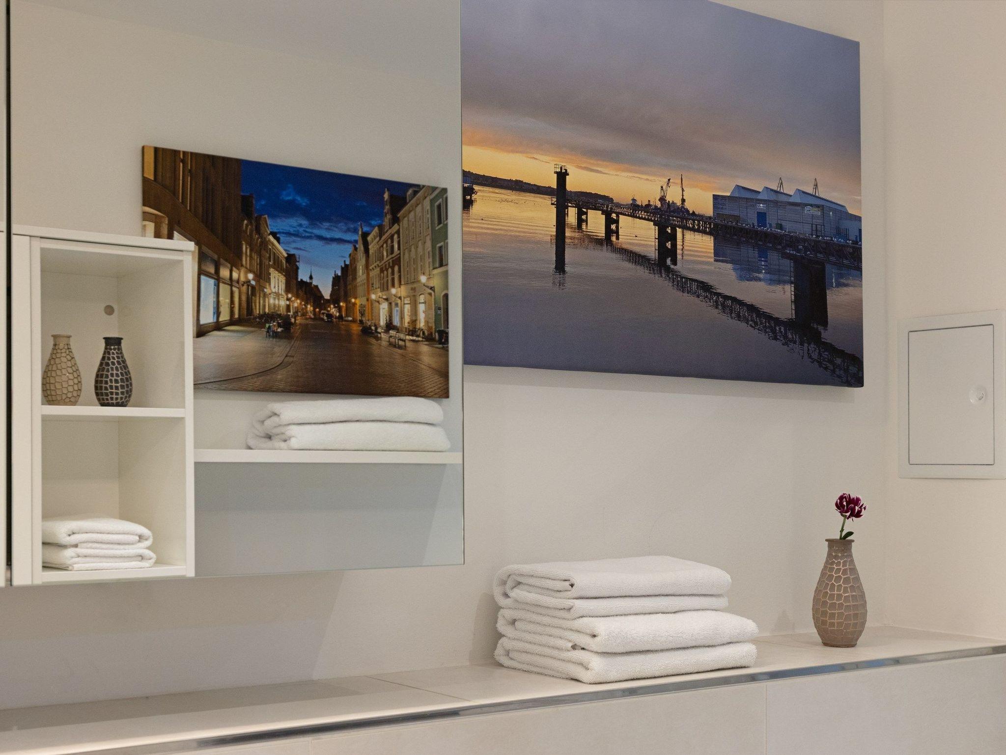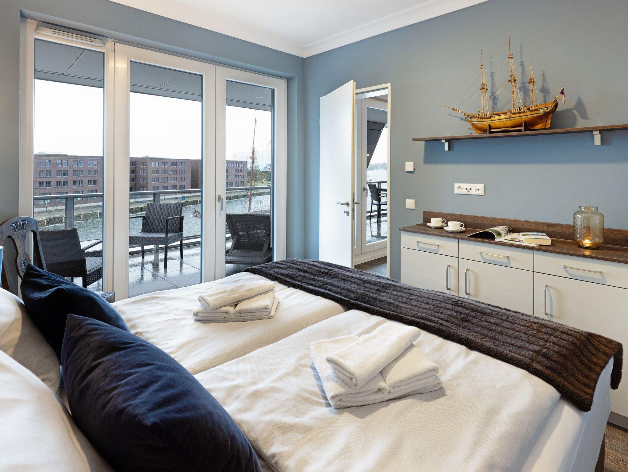 Bei uns wohnen Sie in der ersten Reihe in einmaliger Bestlage. Hier fa?ngt Ihr Urlaub schon beim Aufschließen der Wohnungstu?r an - eine Ferienwohnung fu?r anspruchsvolle Genießer. Die optimal geschnittene, stylisch-behagliche Wohneinheit liegt im obersten Deck und wurde fu?r Sie im nordisch-maritimen Stil eingerichtet. Hochwertige Materialien und Ausstattungselemente schaffen ein ausgleichendes und harmonisches Ambiente. Mit zwei separaten vollausgestatteten Schlafra?umen bieten wir Ihnen auf gera?umigen 66 m2 Wohnfla?che viel Platz fu?r bis zu 4 Ga?ste. Den unbezahlbaren Blick auf den Hafen und das Meer ko?nnen Sie in allen Aufenthaltsra?umen genießen, in den Schlafzimmern sogar im Liegen. Die großartige teilu?berdachte Loggia mit 24 m2 Aussichts- und Erholungsfla?che im ho?chsten Geschoss verwo?hnt Sie mit einem atemberaubenden 180°Panorama-Ausblick aus luftiger Ho?he u?ber den gesamten Alten Hafen. An Backbord verfolgen Sie das Geschehen an der lebhaften Hafenpromenade vom gotischen Wassertor, dem alten Hafentor im Nordwesten des historischen Stadtkerns der Stadt, u?ber den Liegeplatz der Wissemara, unserer beru?hmten originalgetreuen Replik einer mittelalterlichen Hansekogge, bis hin zum bekannten Museum Baumhaus, von wo aus fru?her die Hafeneinfahrt mit einer Sperrkette aus Baumstämmen vor Gefahren geschu?tzt wurde. Steuerbords schweift Ihr Blick u?ber den Alten Hafen hinaus bis weit hinein in die Wismarer Bucht. Erfreuen Sie sich bei Meereskla?ngen und leichter Salzbrise an den ein- und ausfahrenden Schiffen und genießen Sie wohltuenden Sonnenschein bis weit in die Abendstunden. Erleben Sie grandiose Ausblicke u?ber den Da?chern von Wismar. Was ko?nnte es Scho?neres geben, als Ihren Morgen an der Ostsee unter freiem Himmel mit duftendem Kaffee und frischen Bro?tchen zu beginnen und Ihren entspannten Urlaubstag spa?ter bei einem erlesenen Wein gelassen in der Abendsonne ausklingen zu lassen?