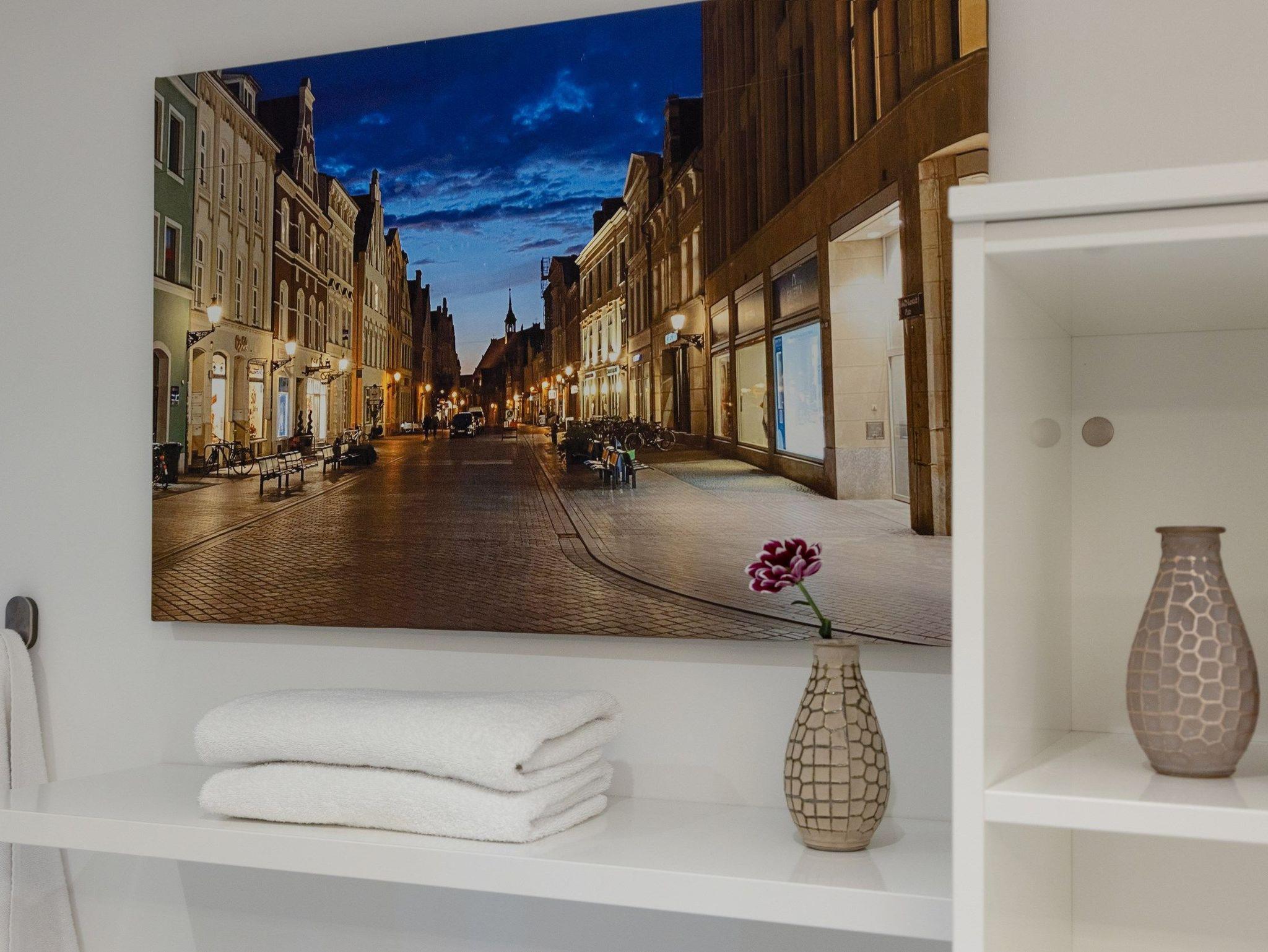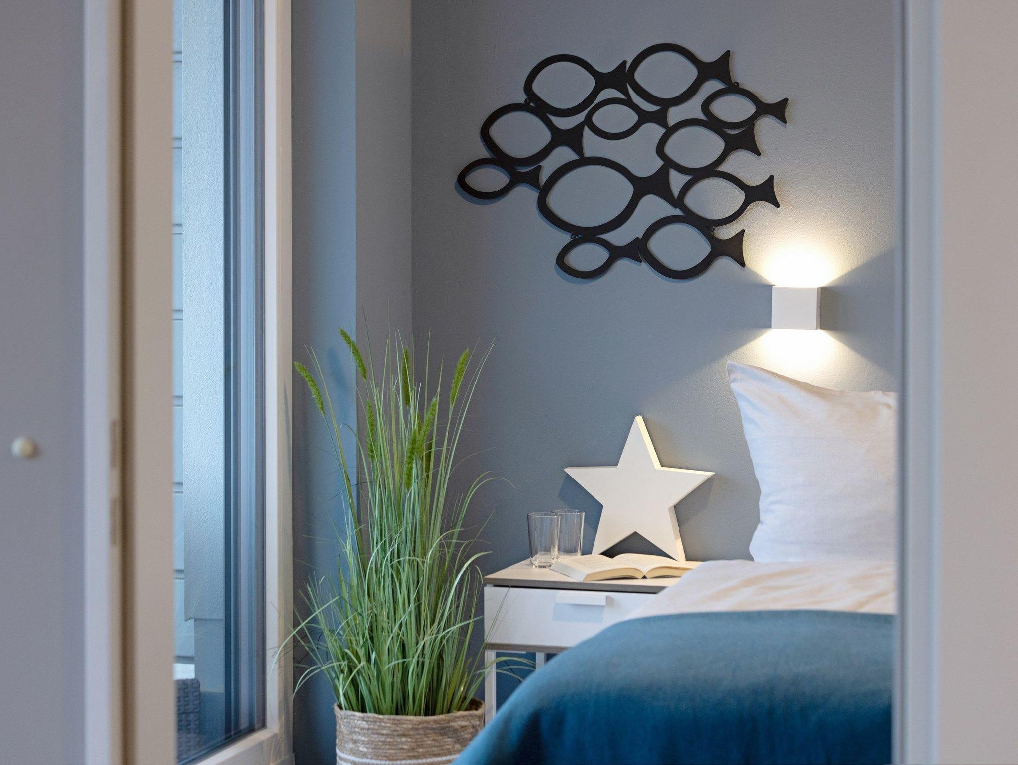 Bei uns wohnen Sie in der ersten Reihe in einmaliger Bestlage. Hier fa?ngt Ihr Urlaub schon beim Aufschließen der Wohnungstu?r an - eine Ferienwohnung fu?r anspruchsvolle Genießer. Die optimal geschnittene, stylisch-behagliche Wohneinheit liegt im obersten Deck und wurde fu?r Sie im nordisch-maritimen Stil eingerichtet. Hochwertige Materialien und Ausstattungselemente schaffen ein ausgleichendes und harmonisches Ambiente. Mit zwei separaten vollausgestatteten Schlafra?umen bieten wir Ihnen auf gera?umigen 66 m2 Wohnfla?che viel Platz fu?r bis zu 4 Ga?ste. Den unbezahlbaren Blick auf den Hafen und das Meer ko?nnen Sie in allen Aufenthaltsra?umen genießen, in den Schlafzimmern sogar im Liegen. Die großartige teilu?berdachte Loggia mit 24 m2 Aussichts- und Erholungsfla?che im ho?chsten Geschoss verwo?hnt Sie mit einem atemberaubenden 180°Panorama-Ausblick aus luftiger Ho?he u?ber den gesamten Alten Hafen. An Backbord verfolgen Sie das Geschehen an der lebhaften Hafenpromenade vom gotischen „Wassertor“, dem alten Hafentor im Nordwesten des historischen Stadtkerns der Stadt, u?ber den Liegeplatz der „Wissemara“, unserer beru?hmten originalgetreuen Replik einer mittelalterlichen Hansekogge, bis hin zum bekannten Museum „Baumhaus“, von wo aus fru?her die Hafeneinfahrt mit einer Sperrkette aus Baumstämmen vor Gefahren geschu?tzt wurde. Steuerbords schweift Ihr Blick u?ber den Alten Hafen hinaus bis weit hinein in die Wismarer Bucht. Erfreuen Sie sich bei Meereskla?ngen und leichter Salzbrise an den ein- und ausfahrenden Schiffen und genießen Sie wohltuenden Sonnenschein bis weit in die Abendstunden. Erleben Sie grandiose Ausblicke u?ber den Da?chern von Wismar. Was ko?nnte es Scho?neres geben, als Ihren Morgen an der Ostsee unter freiem Himmel mit duftendem Kaffee und frischen Bro?tchen zu beginnen und Ihren entspannten Urlaubstag spa?ter bei einem erlesenen Wein gelassen in der Abendsonne ausklingen zu lassen?