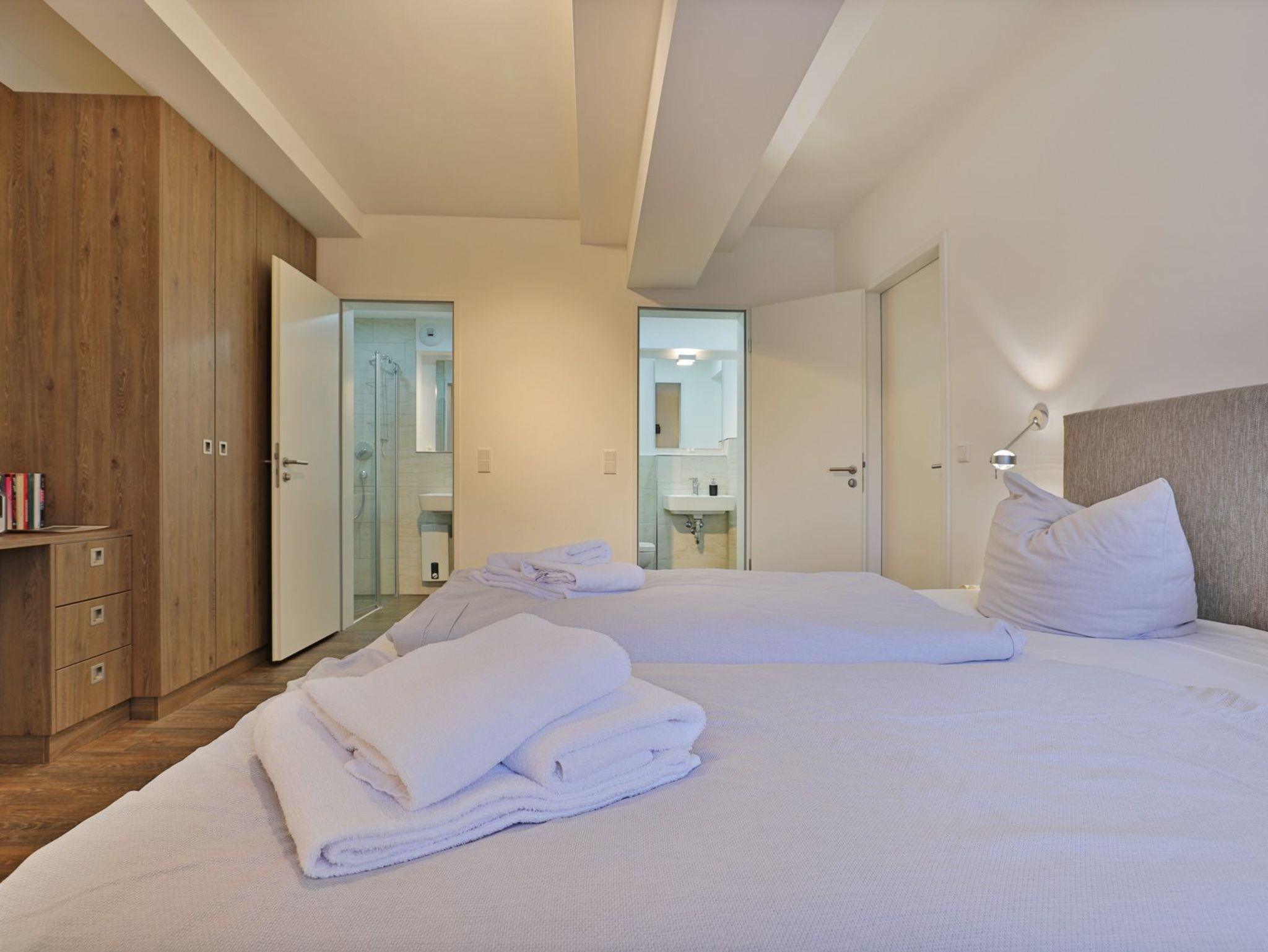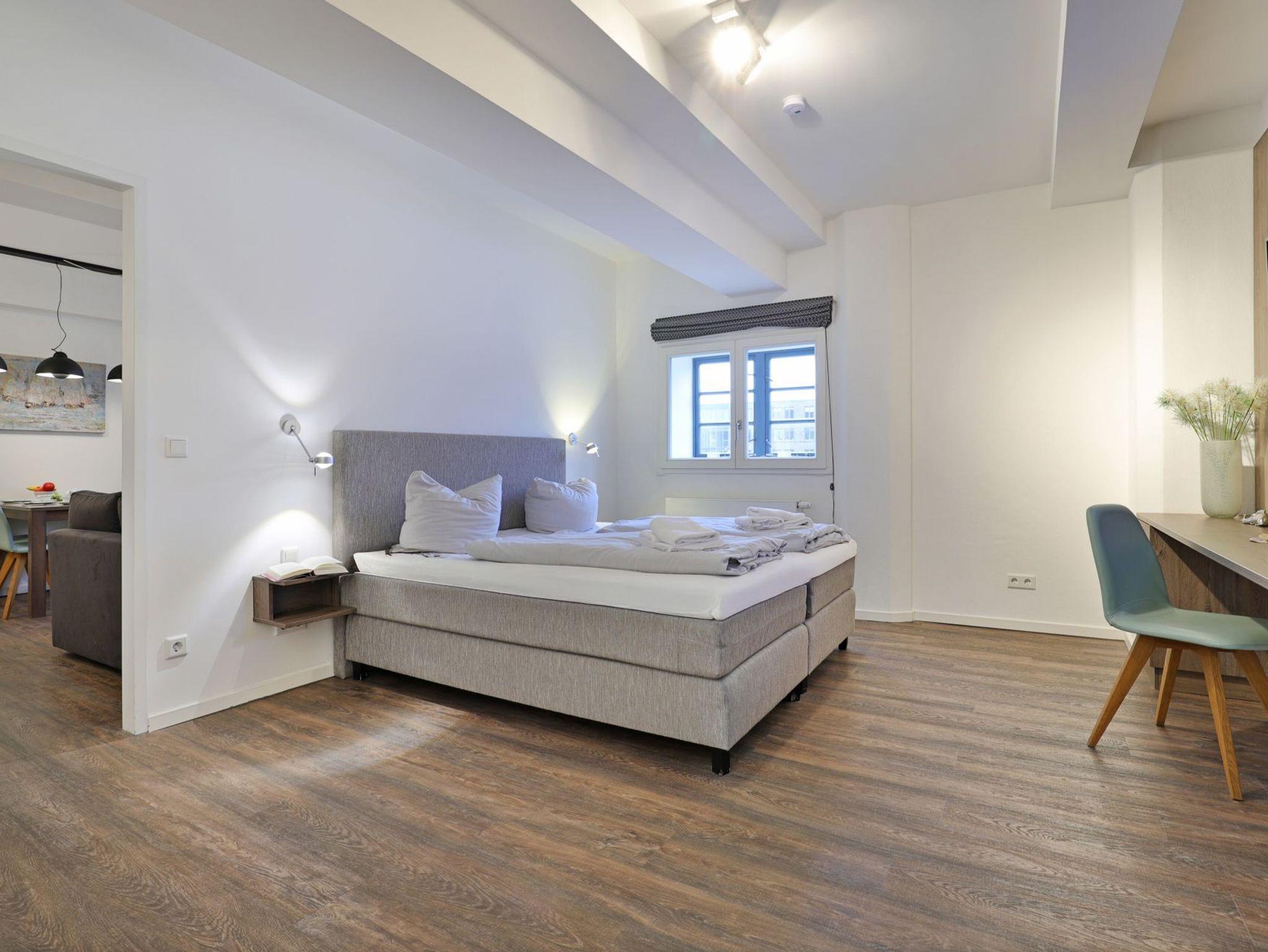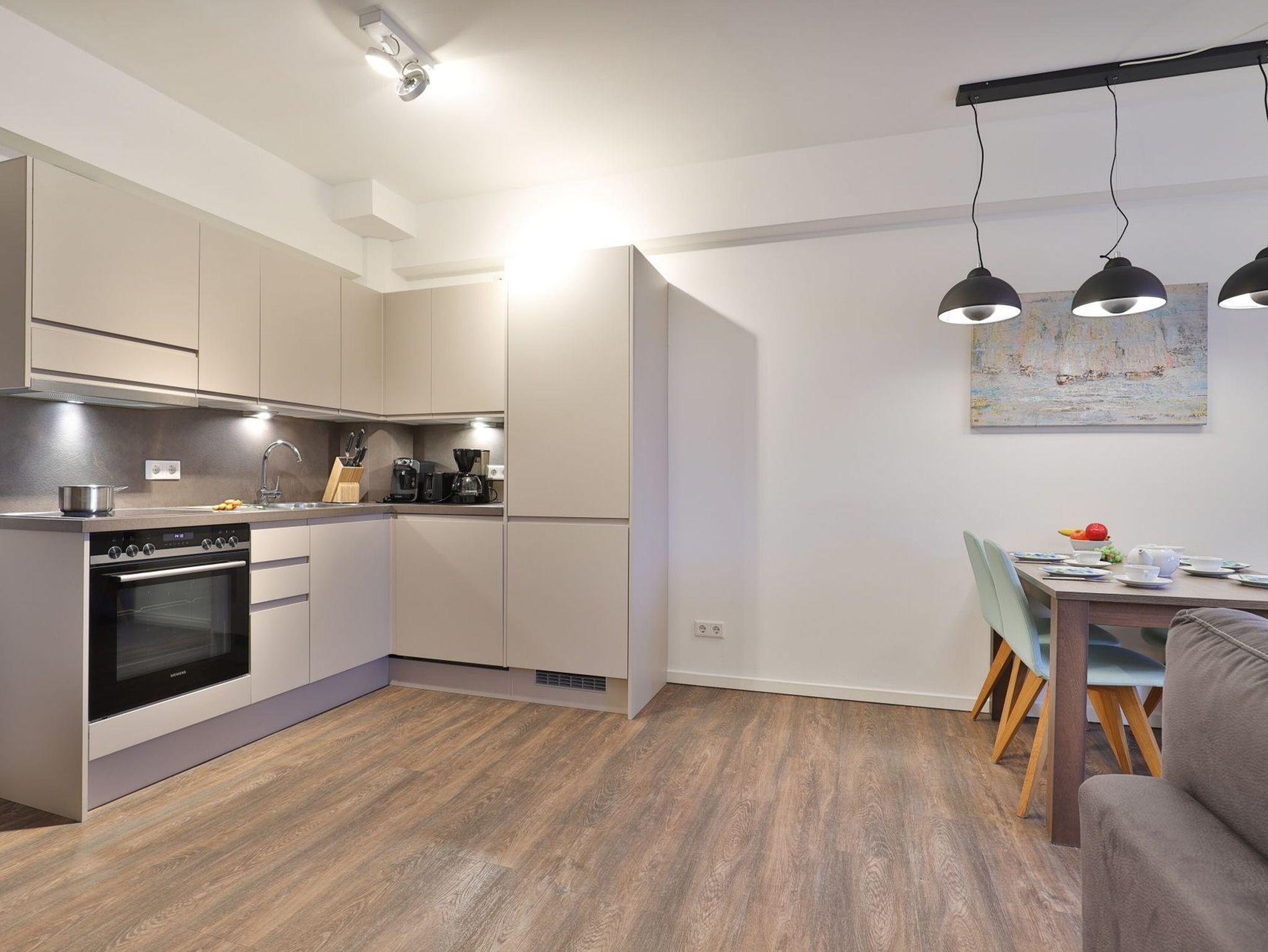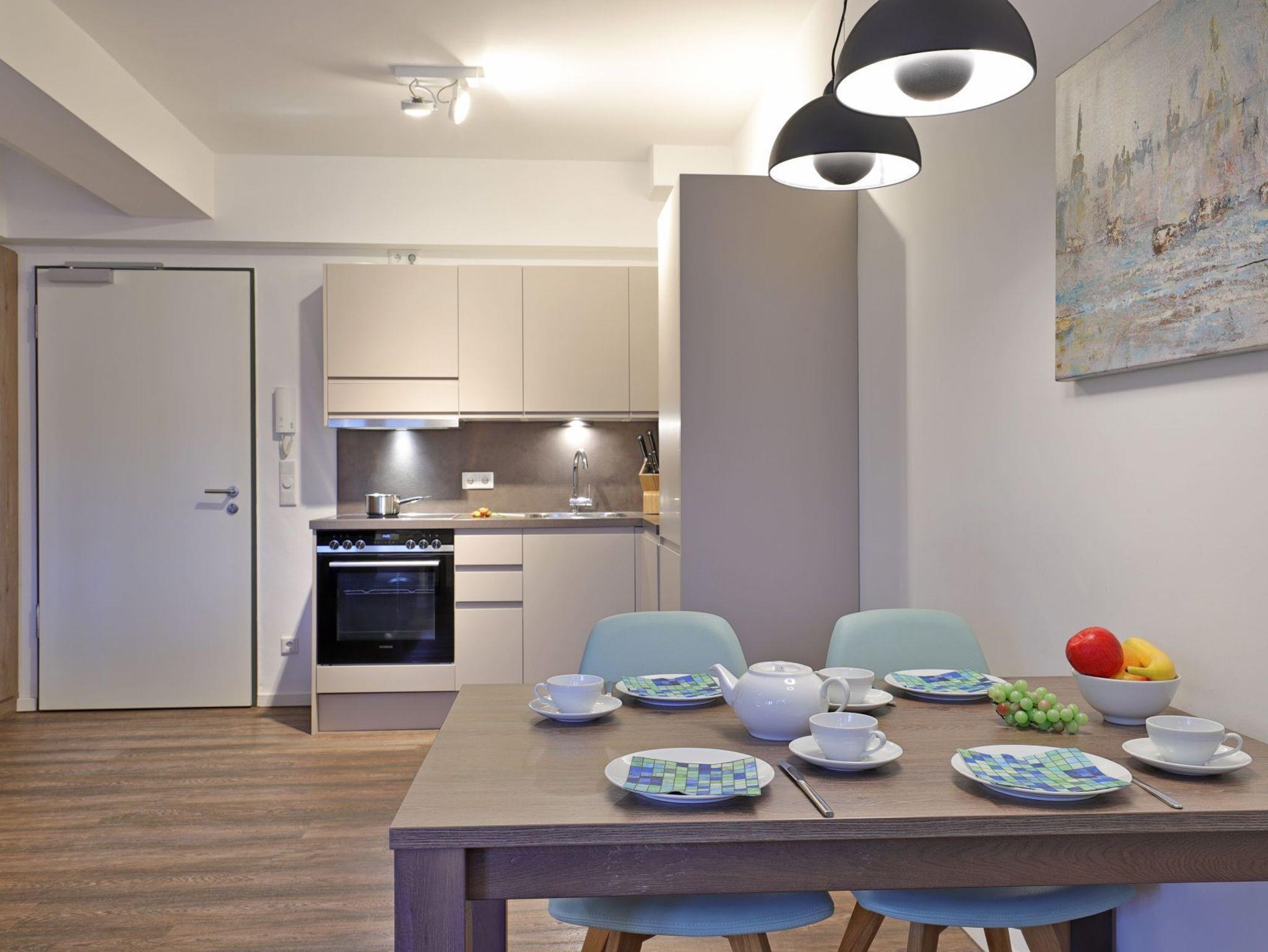 Dieses stilvoll eingerichtete 2-Zimmer-Appartement befindet sich in der 1. Etage und bietet mit seinen 48 m² Platz für 4 Personen. Das Appartement hat einen exklusiven eingerichteten Wohn- und Essbereich mit Fernseher und einer voll ausgestatteten integrierten Küche (Geschirrspüler, Mikrowelle, Backofen, Kühlschrank, Kaffeemaschine, Wasserkocher u.v.m.). Das elegante Schlafzimmer ist mit einem Doppelbett und einem Kleiderschrank eingerichtet. Des Weiteren gibt es ein modernes Duschbad. WLAN steht Ihnen kostenfrei zur Verfügung. Bei Anreise ist ein Bett für 2 Personen bezogen und Handtücher liegen für Sie bereit.In unmittelbarer Nähe sind öffentliche Parkplätze vorhanden.