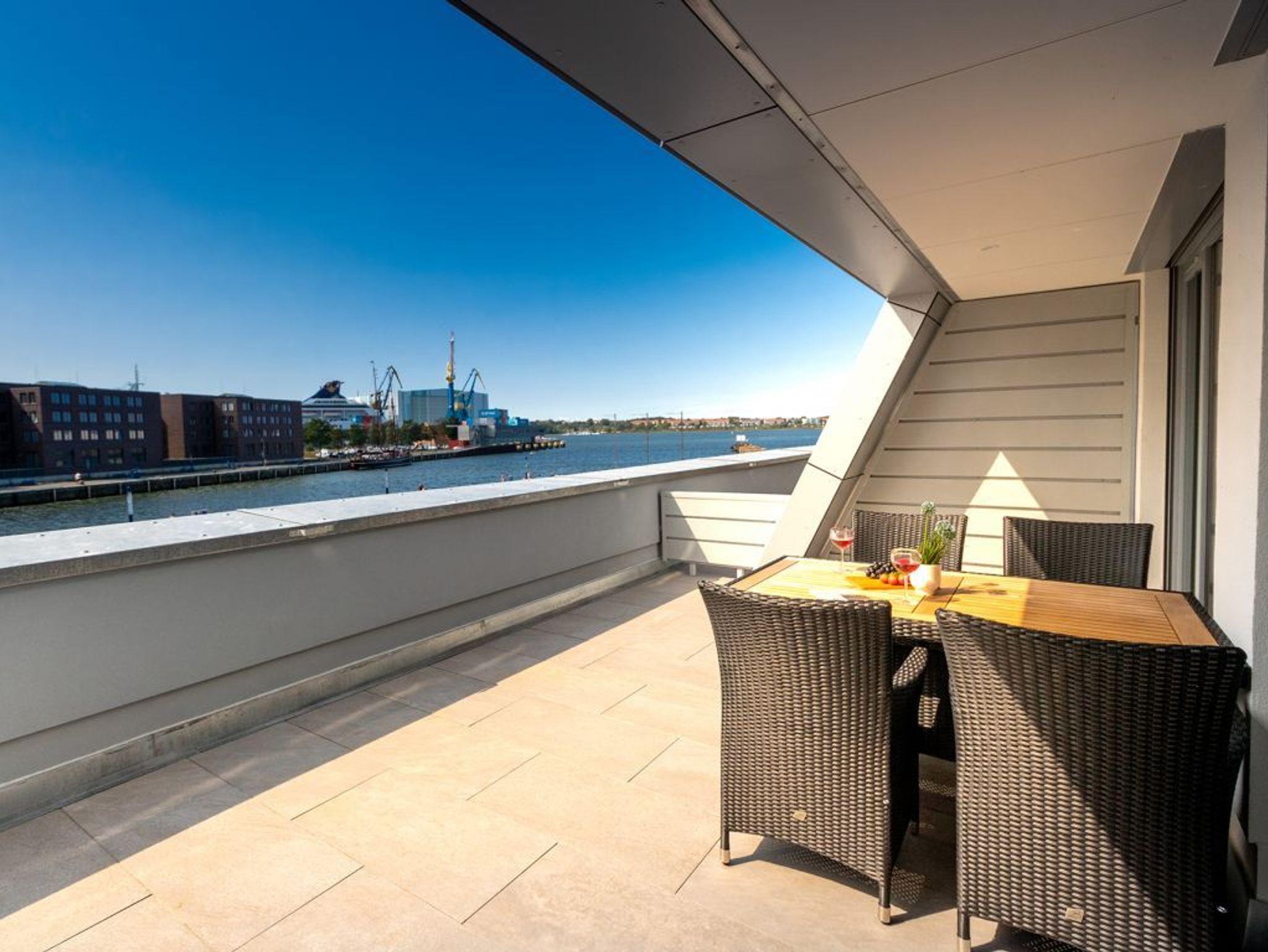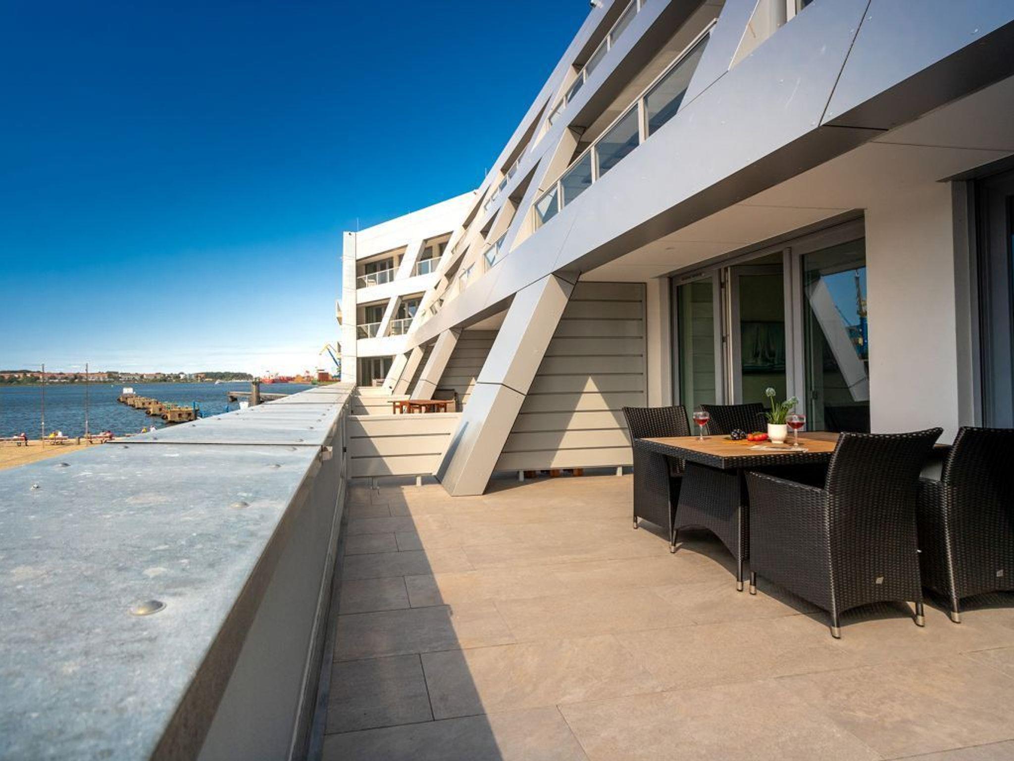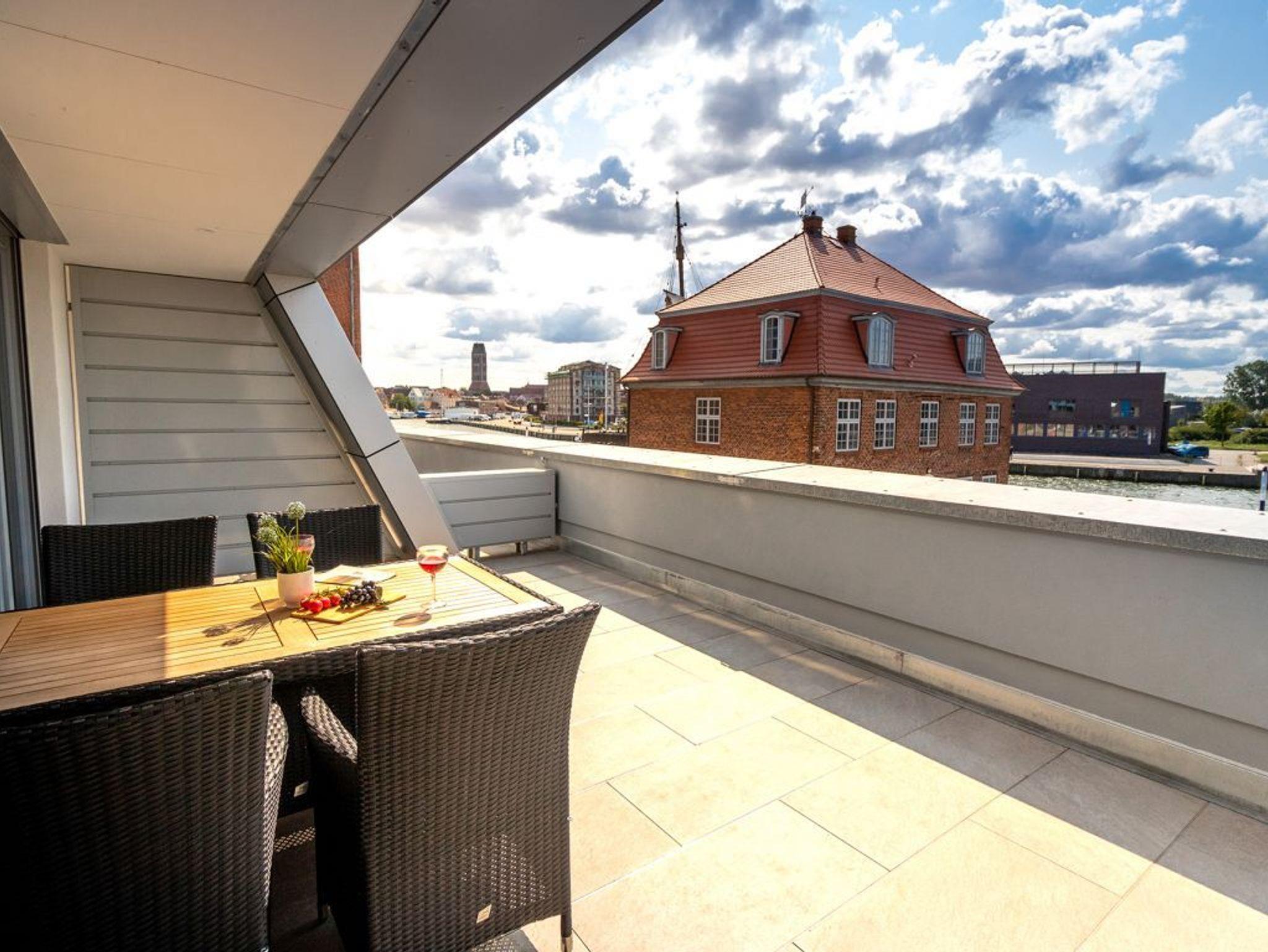 Luxuriöses 2-Zimmer-Appartement Hafenspitze 10 direkt am Alten Hafen in Wismar mit Terrasse und Ostseeblick.