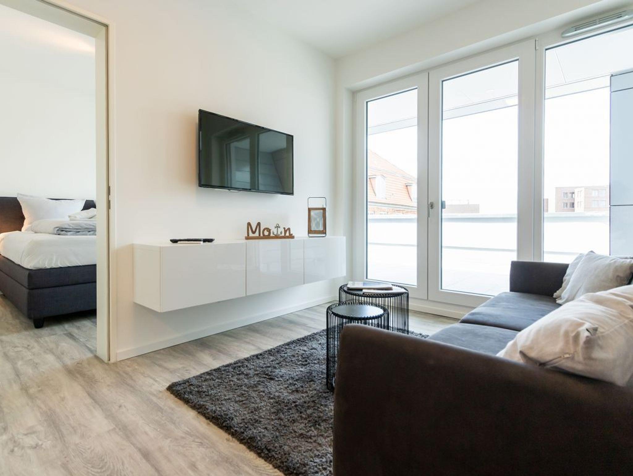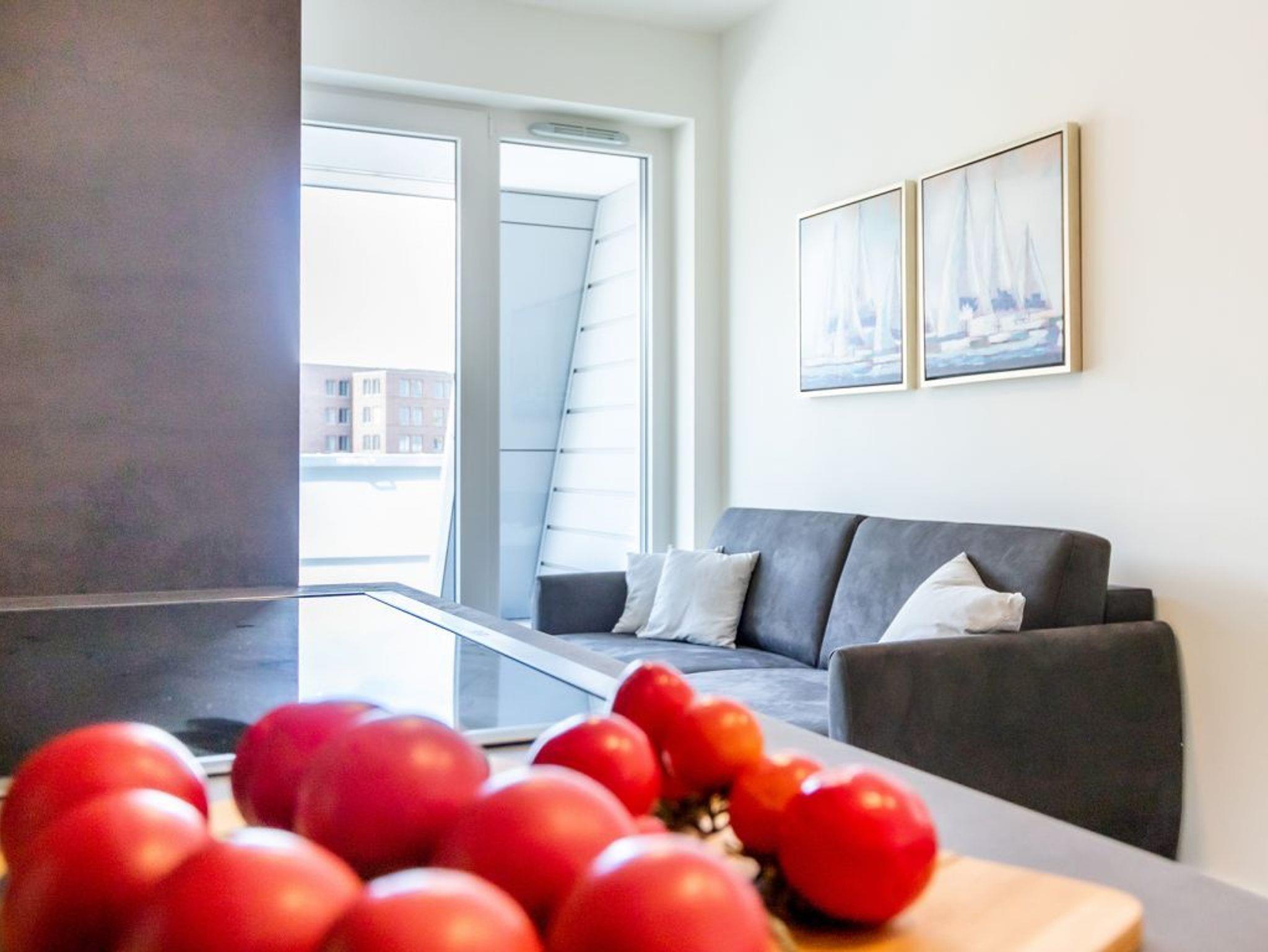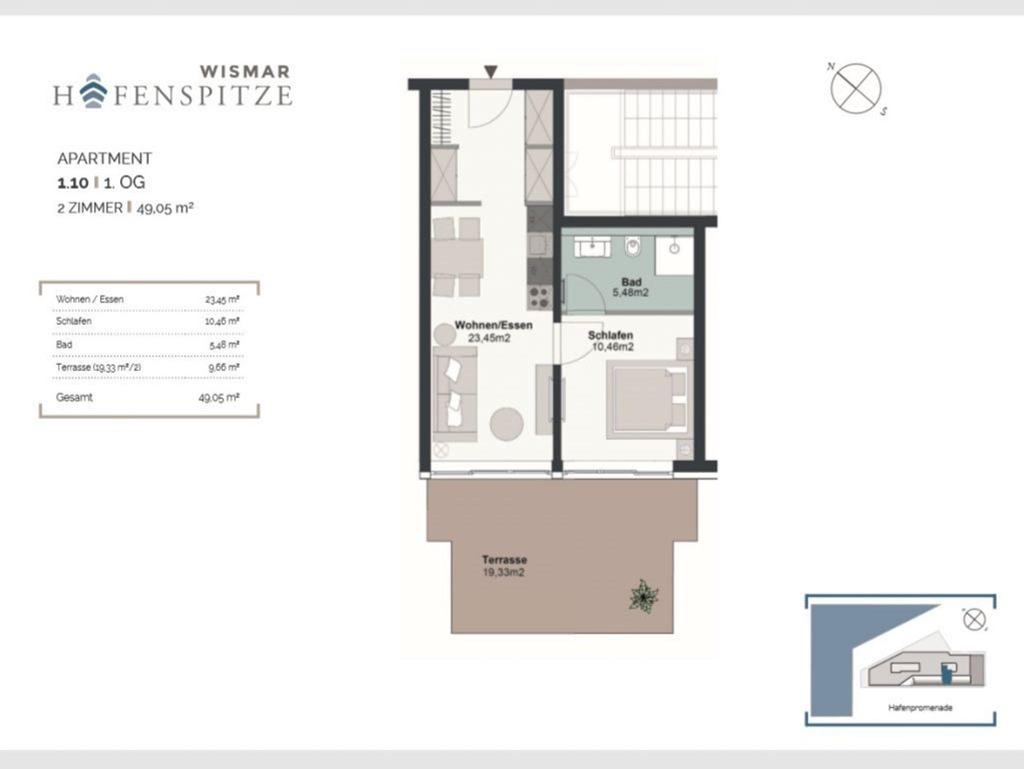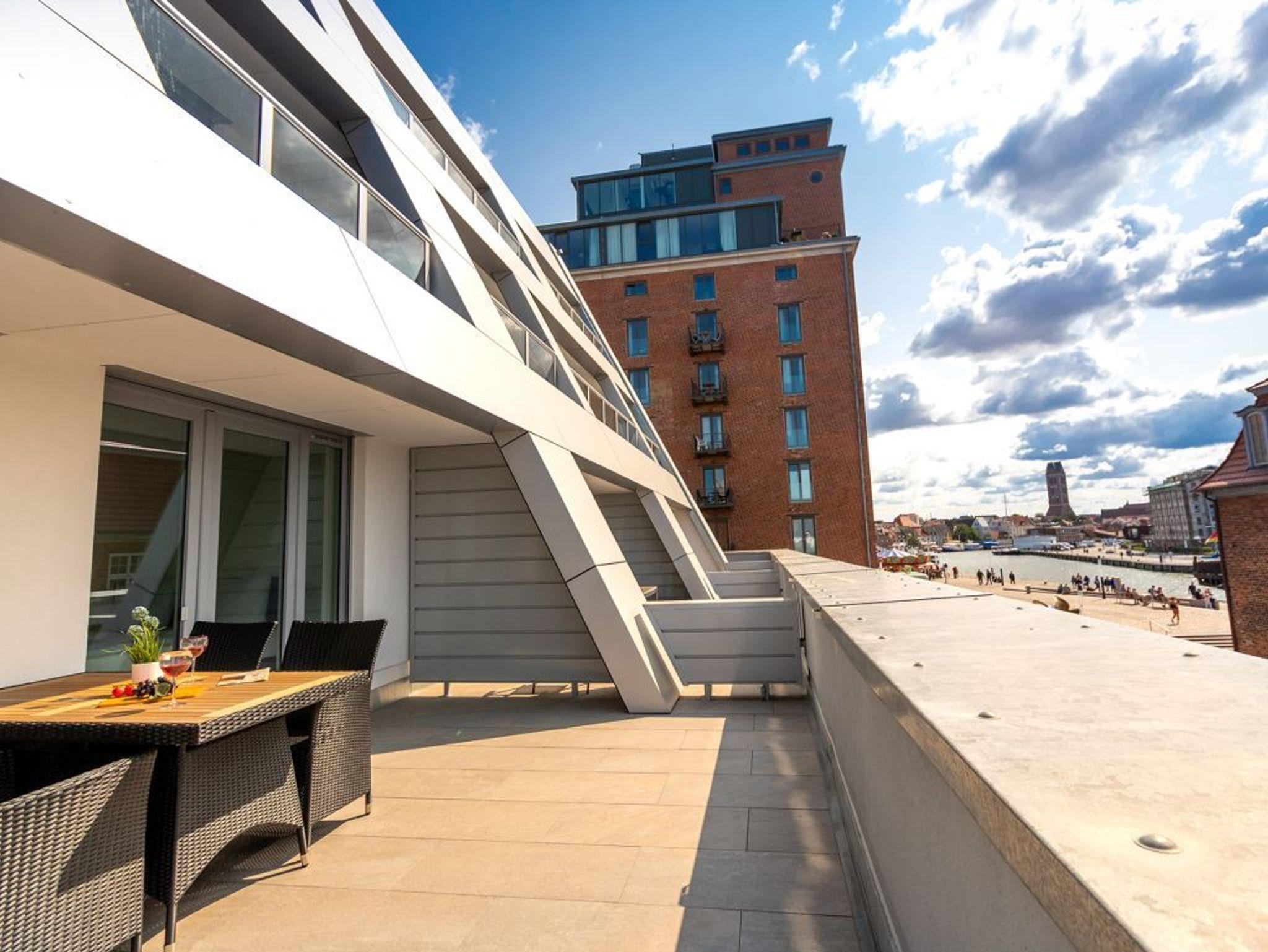 Luxuriöses 2-Zimmer-Appartement Hafenspitze 10 direkt am Alten Hafen in Wismar mit Terrasse und Ostseeblick.