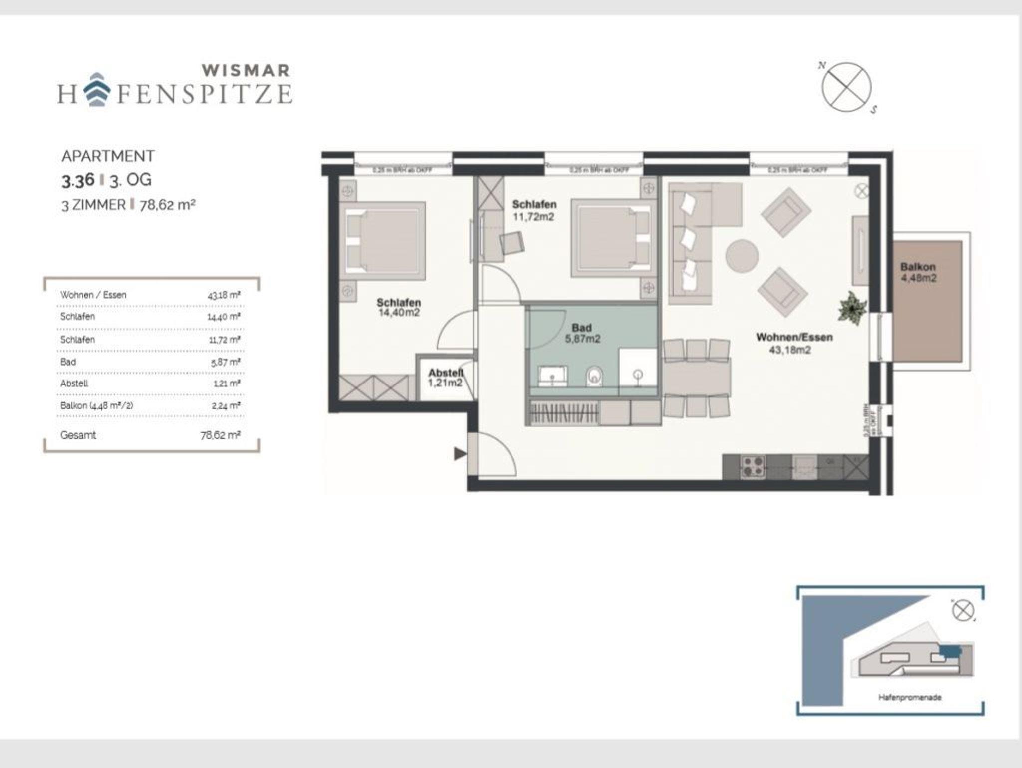 Luxuriöses 3-Zimmer-Ferienappartement Hafenspitze 36 mit Balkon und Ostseeblick in Wismar.