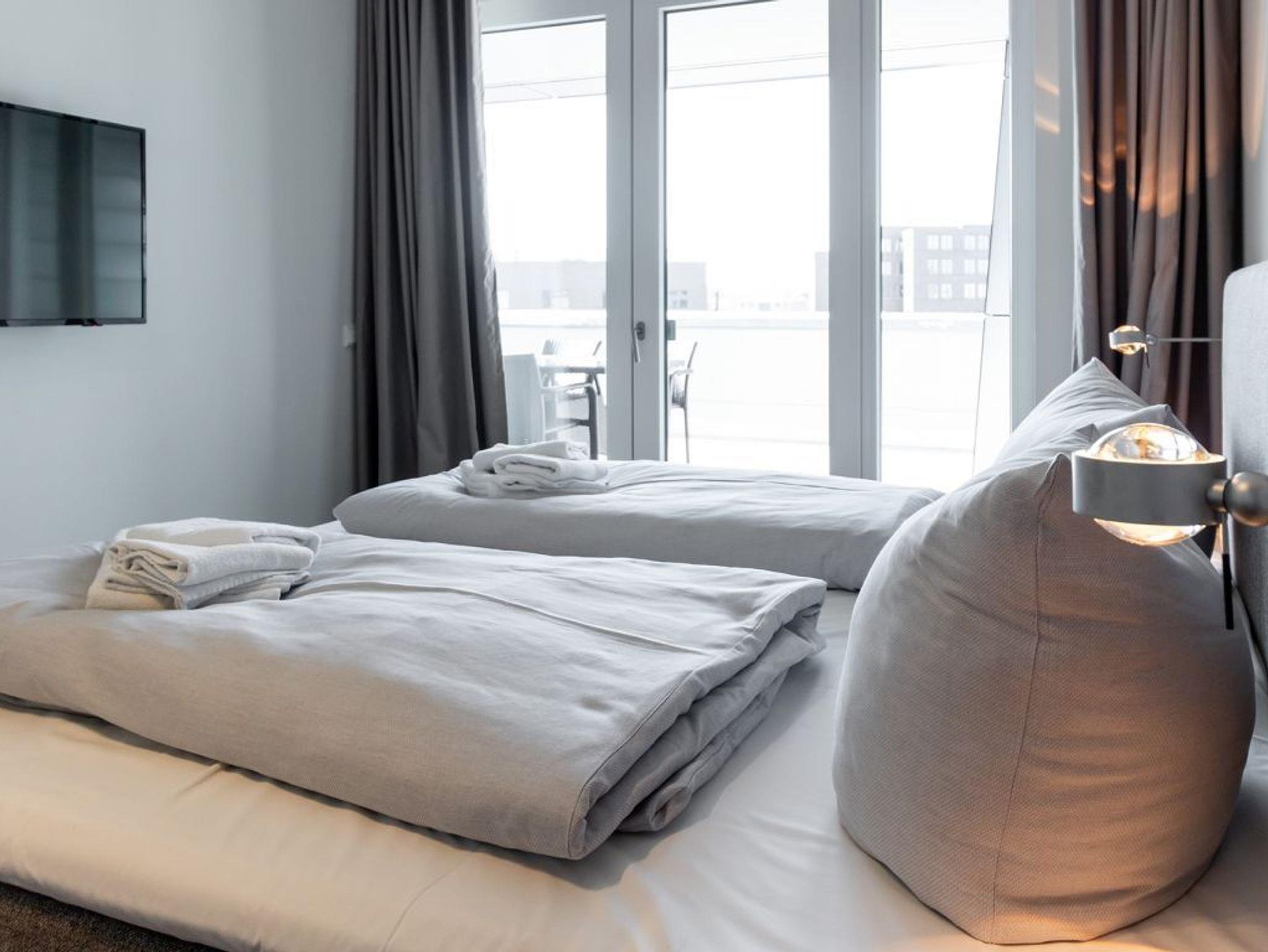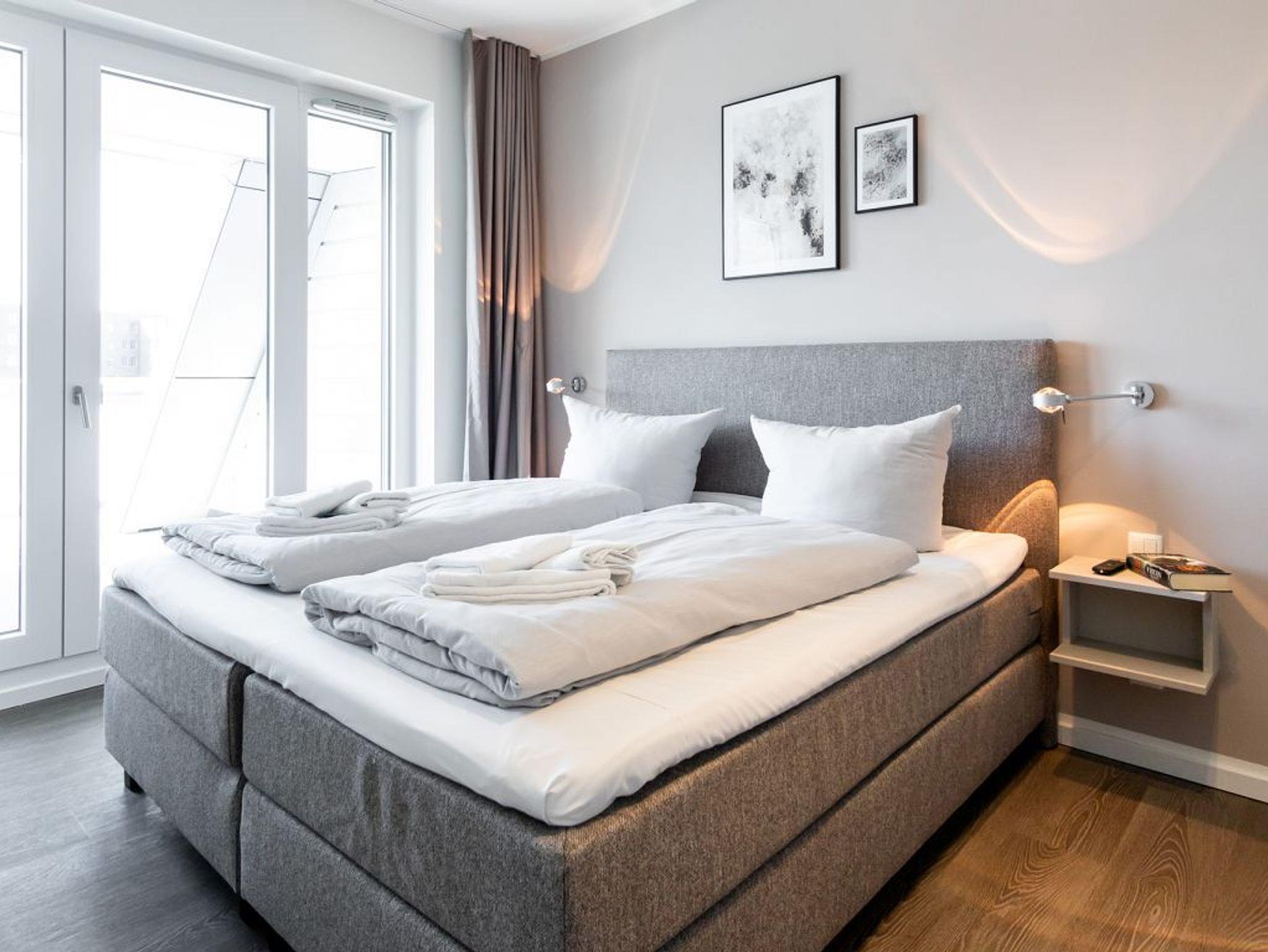 Die hier beschriebene 2-Zimmer-Ferienwohnung Hafenspitze 13 verspricht mir exklusiver Ausstattung sowie einer großzügigen Süd-West Terrasse mit Hafenblick einen nahezu perfekten Aufenthalt. Die geräumige Wohnfläche umfasst 58qm. Eine voll ausgestattete Küchenzeile ist in den Wohnbereich integriert. Zugehörig sind ein separates Schlafzimmer sowie 1 moderndes Duschbad. Bei Anreise sind bezogene Betten sowie Handtücher für 2 Personen inklusive. Eine Belegung dieser Wohnung ist mit bis zu 3 Personen möglich. Es handelt sich um eine Nichtraucherwohnung. Parkmöglichkeiten gegen Gebühr befinden sich im Parkhaus in ca. 300 Meter.