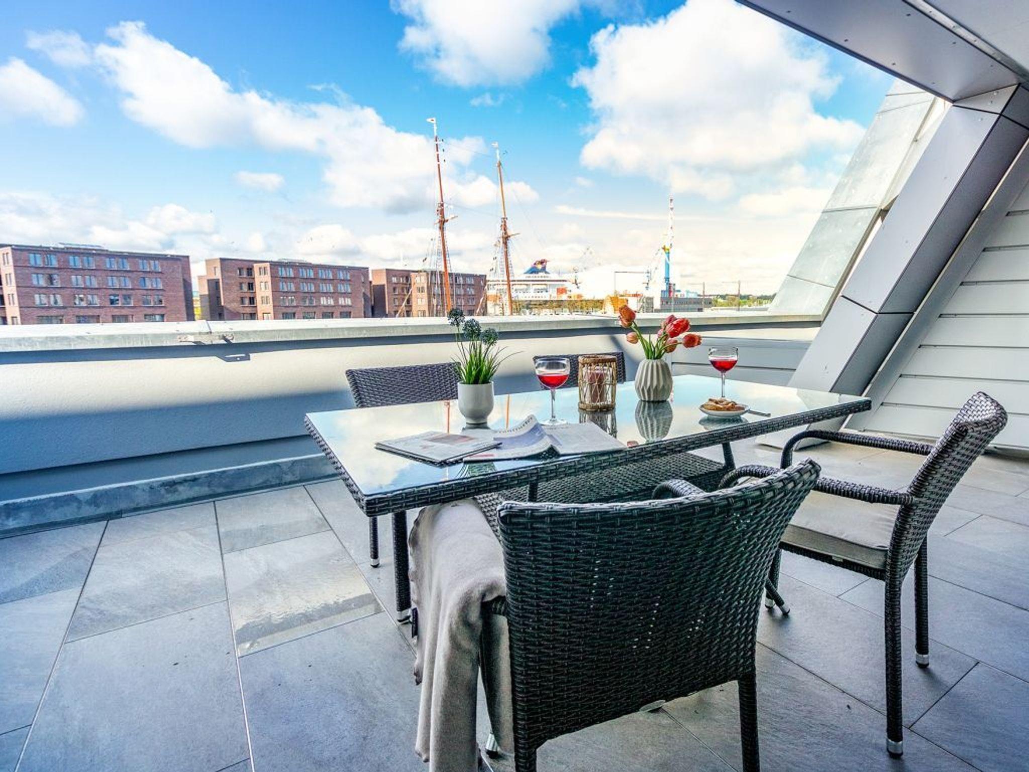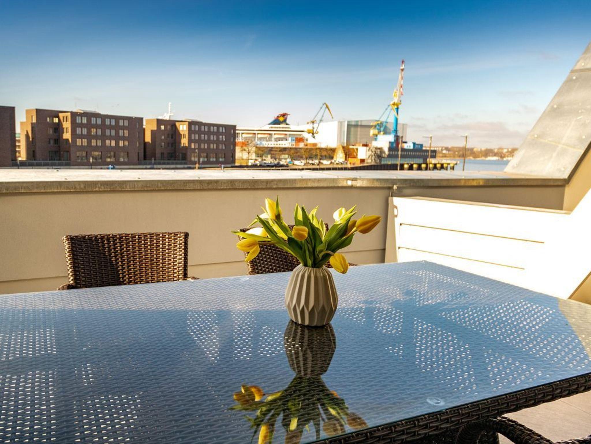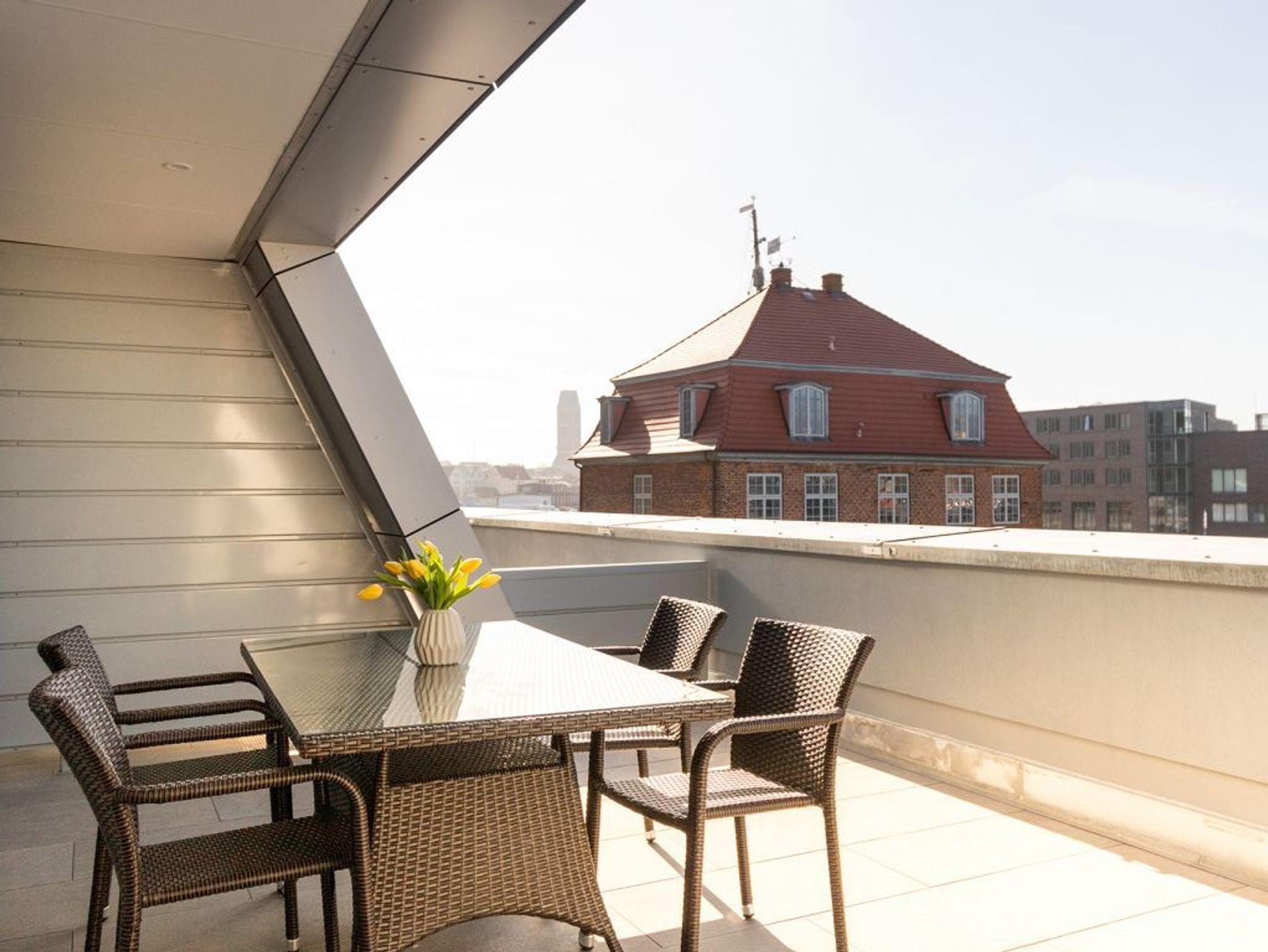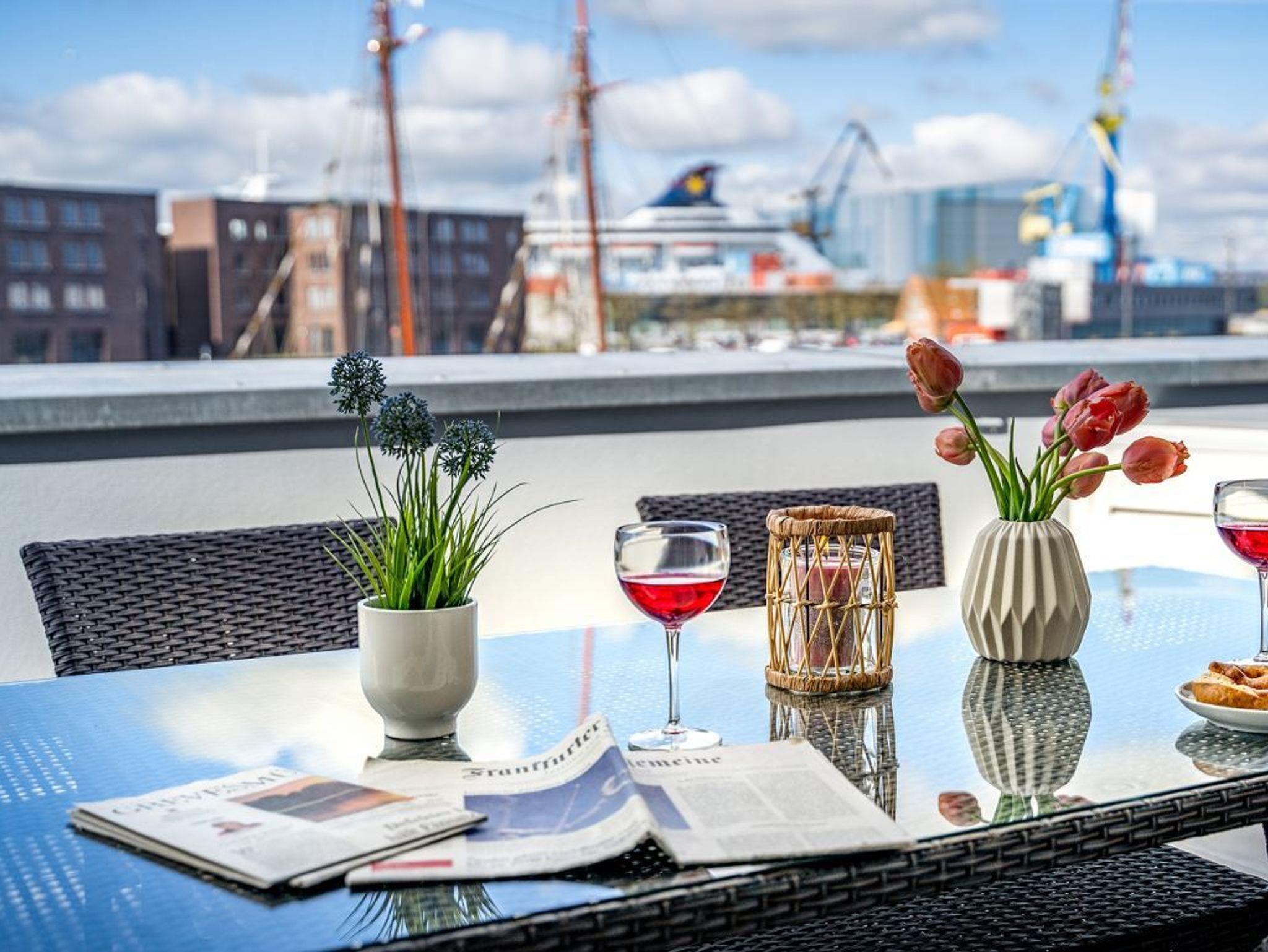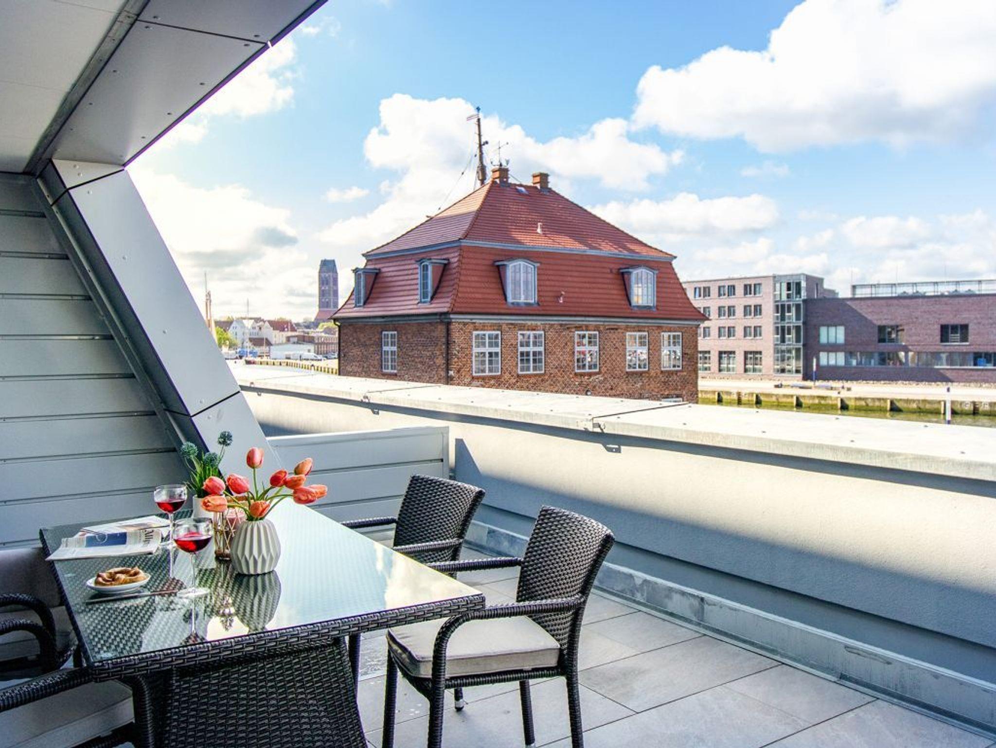 Luxuriöses 2-Zimmer-Appartement mit Hafenblick und Terrasse in Wismar, ideal für eine maritime Auszeit.