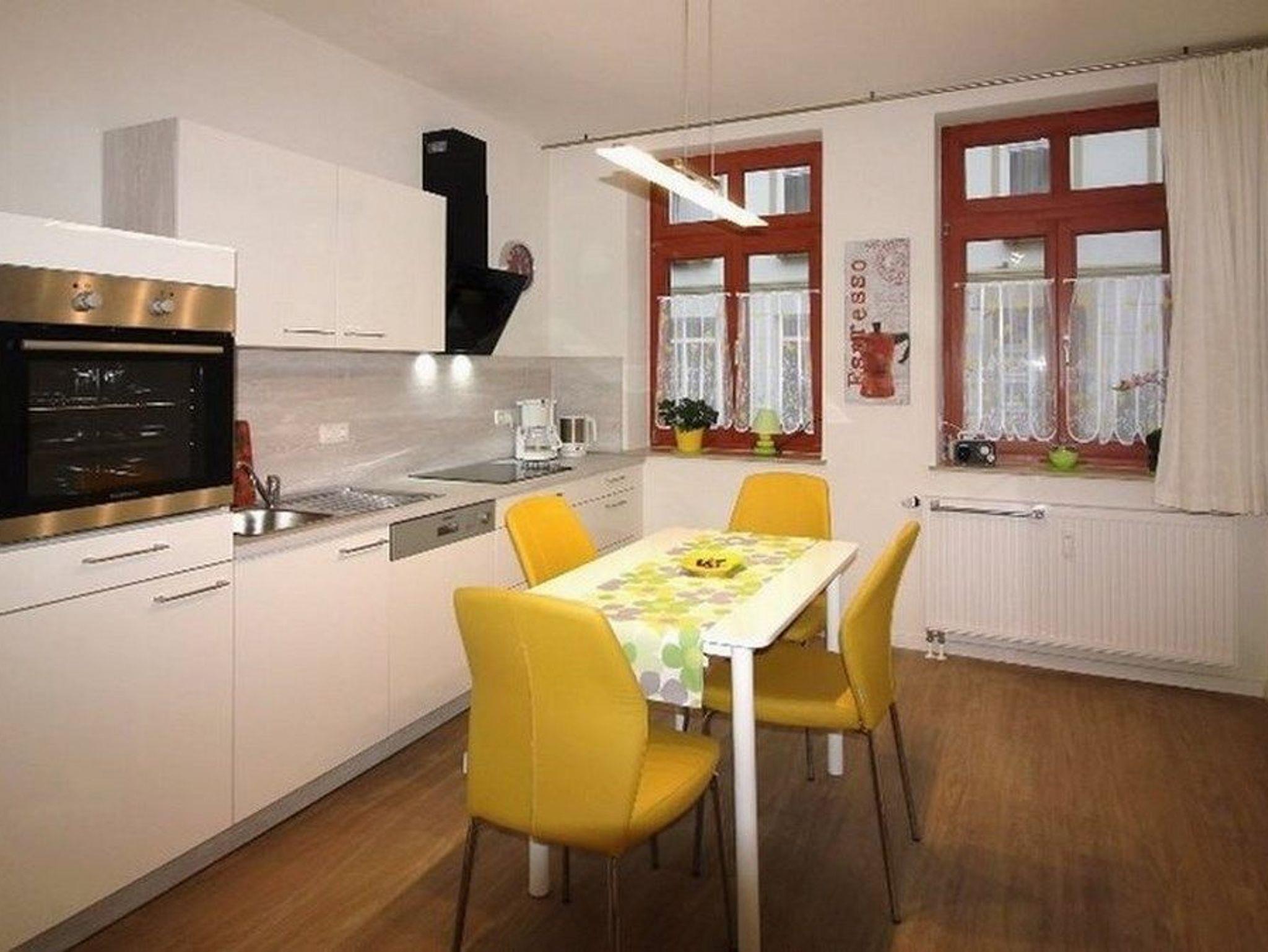 ? große Küche mit Küchenzeile und Essbereich für 4 Personen