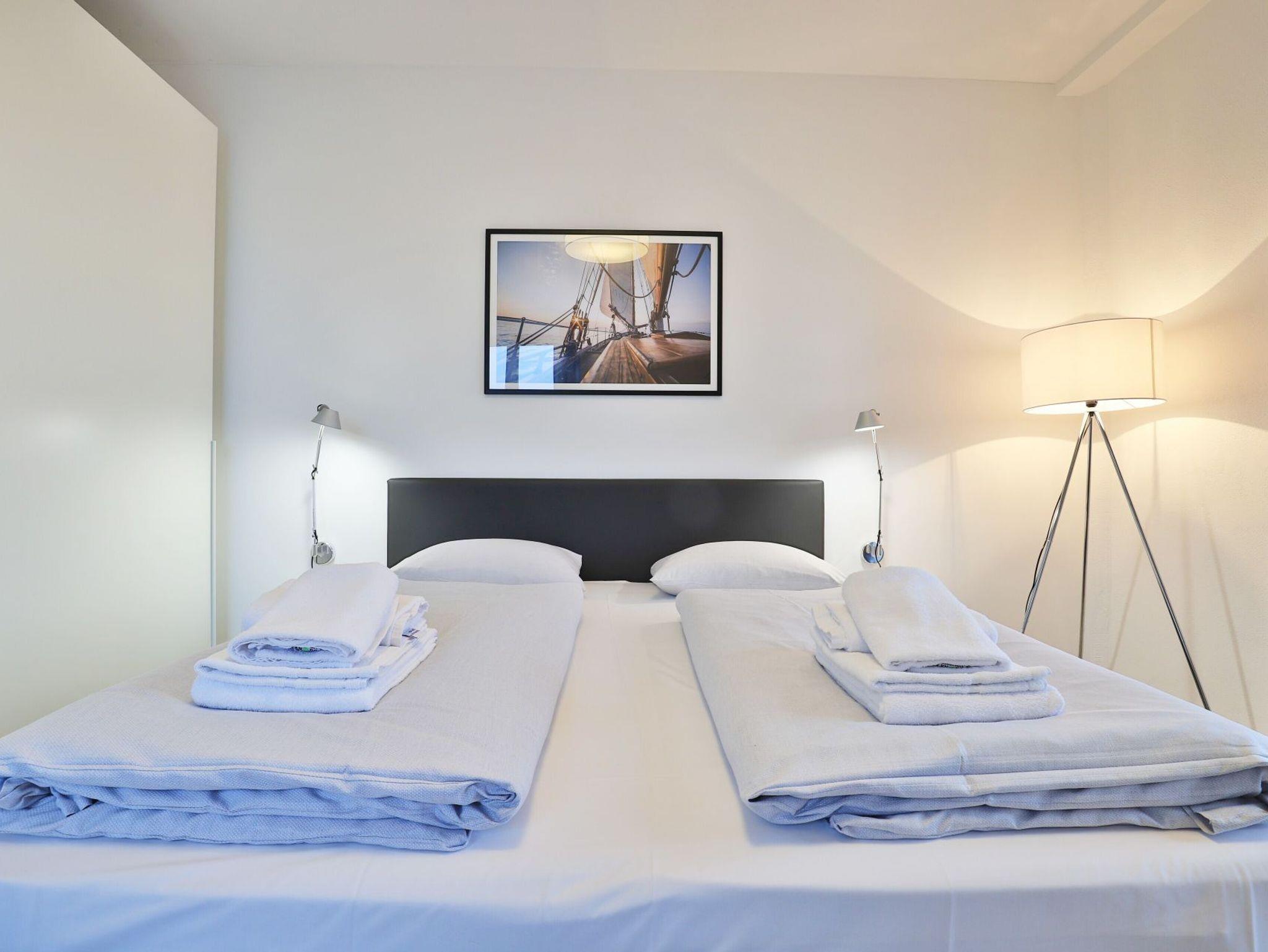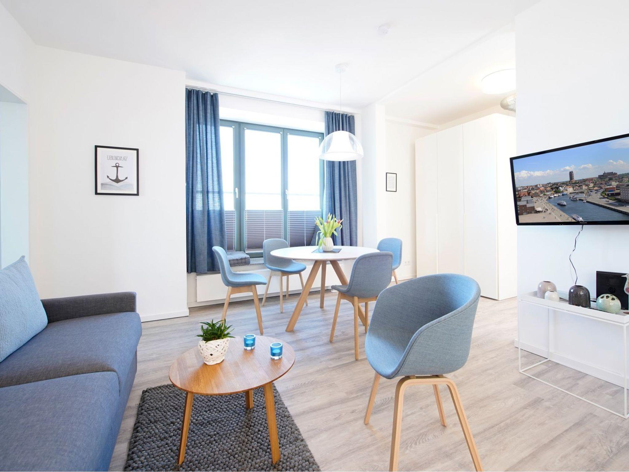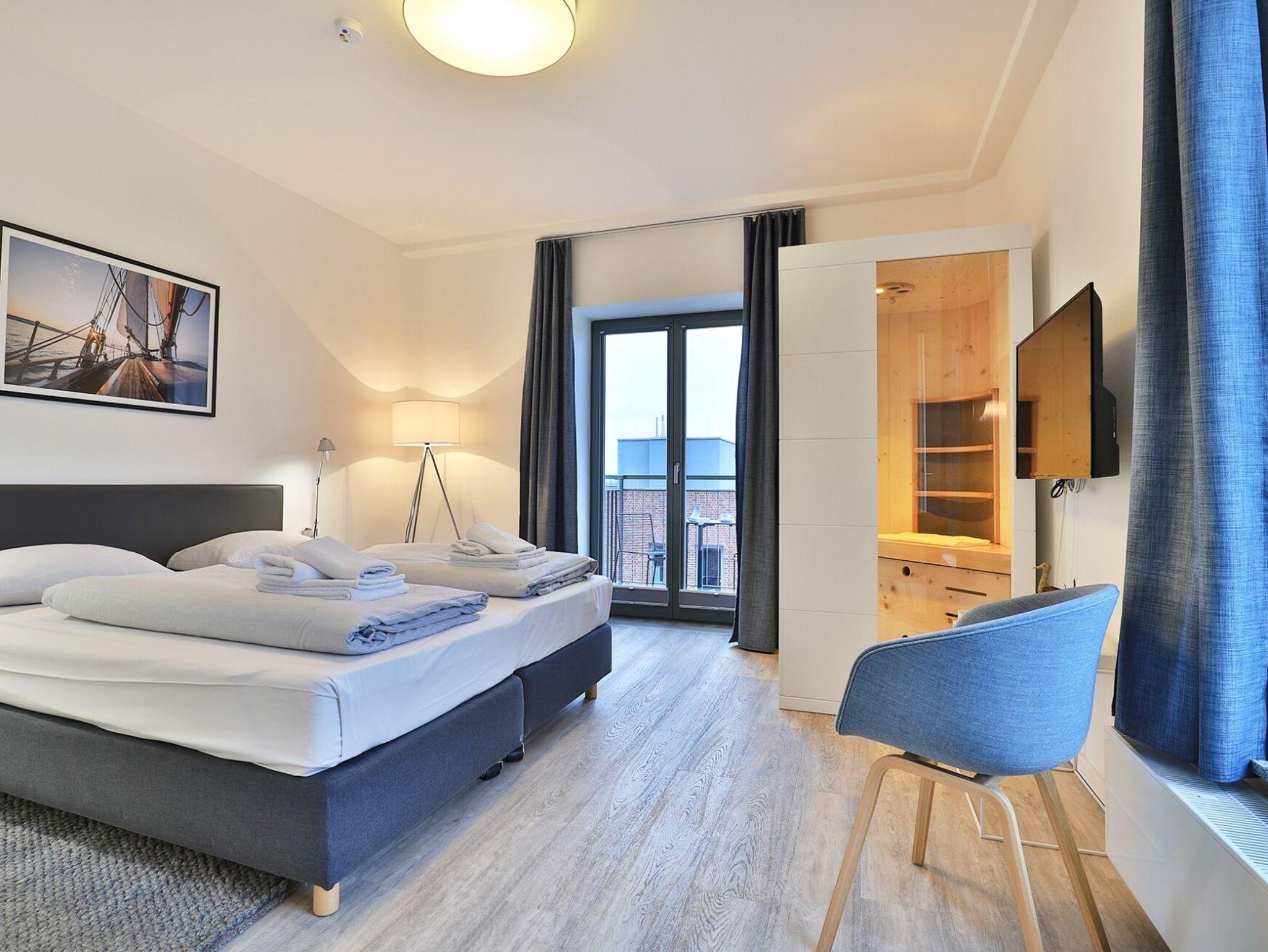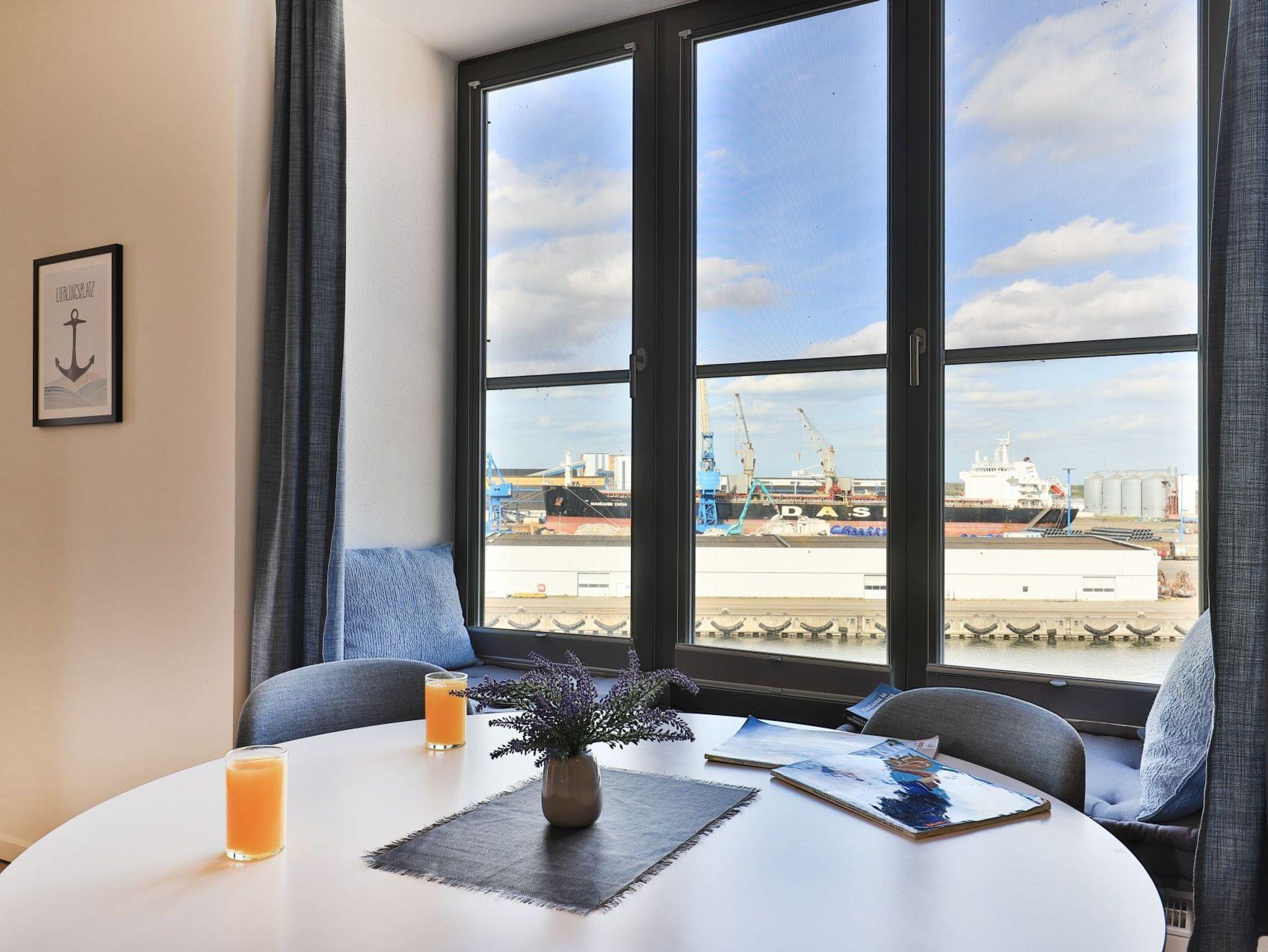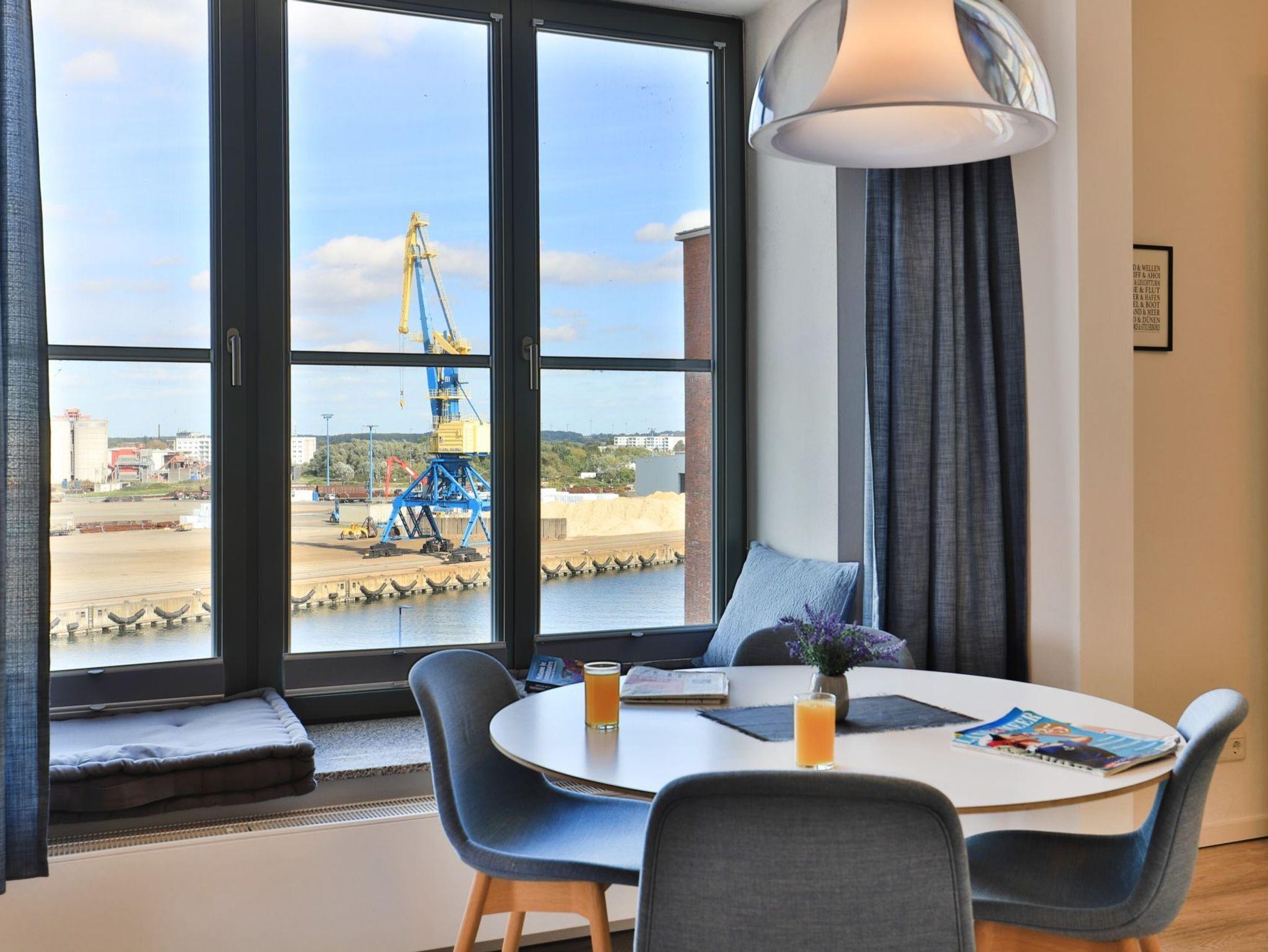 Modernes 2-Zimmer-Appartement im Ohlerich Speicher mit spektakulärer Hafenaussicht und Hydrosoft-Infrarotsauna.