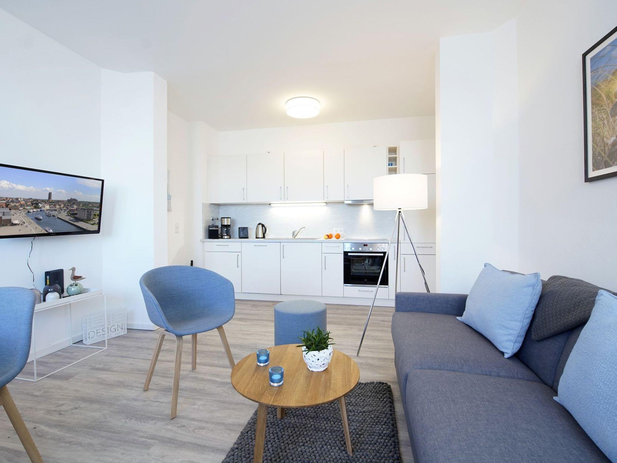 Appartementhaus mit 48 Appartements. Das stilvolle 2- Zimmer-Appartement befindet sich im 4. Obergeschoss des Speichers, dass leicht über den Lift zu erreichen ist. Bis zu 4 Personen können hier auf 57 m² einen Urlaub der Extraklasse verbringen. Das Appartement ist sehr modern eingerichtet und lässt somit wirklich keine Wünsche mehr offen. Das Appartement verfügt über ein Wohn-/Esszimmer , eine Küche ein exklusiv ausgestattetes Schlafzimmer und ein Badezimmer in einer hochwertigen Ausstattung. Die Küche ist komplett ausgestattet mit Mikrowelle, Geschirrspüler, Kaffeemaschine, Wasserkocher, Kühlschrank u.v.m..Von diesem eleganten Appartement können Sie eine spektakuläre Aussicht genießen. Bei Anreise sind 2 Betten bezogen und Handtücher liegen für Sie bereit. WLAN steht Ihnen kostenfrei zur Verfügung. In unmittelbarer Nähe sind öffentliche Parkplätze vorhanden. Einzigartig im Haus: Genießen Sie die Hydrosoft-Infrarotsauna ? Wellness auf höchstem Niveau! Mit nur 38°C und 60?80 % Luftfeuchtigkeit ist sie besonders gesundheitsfreundlich.