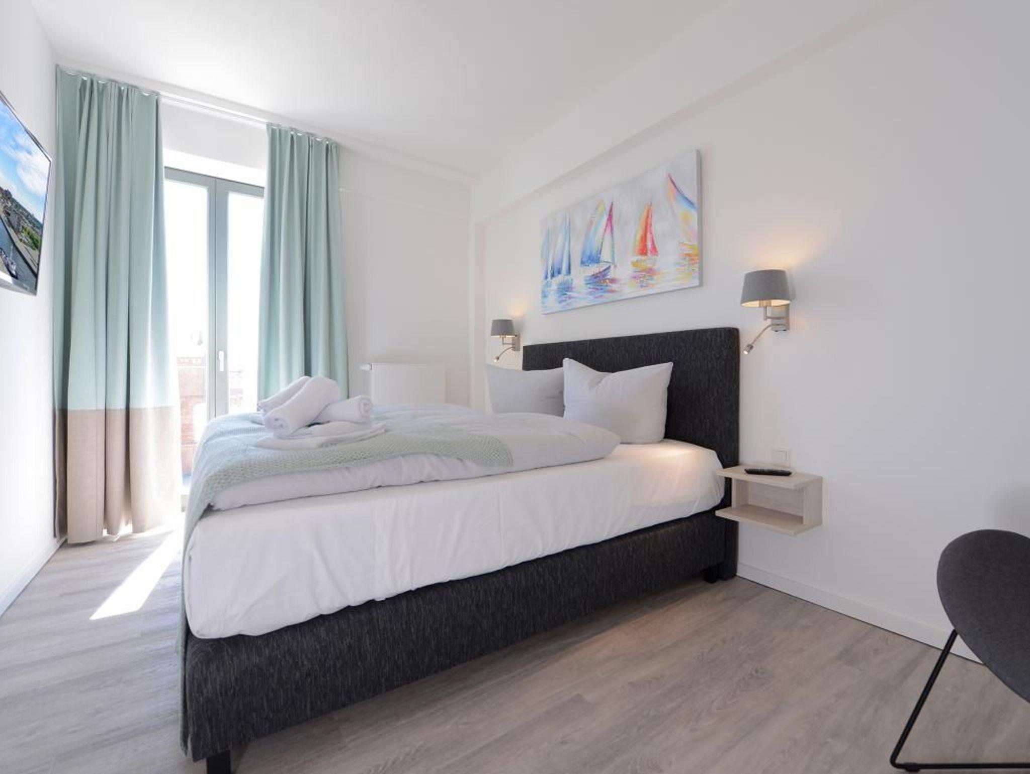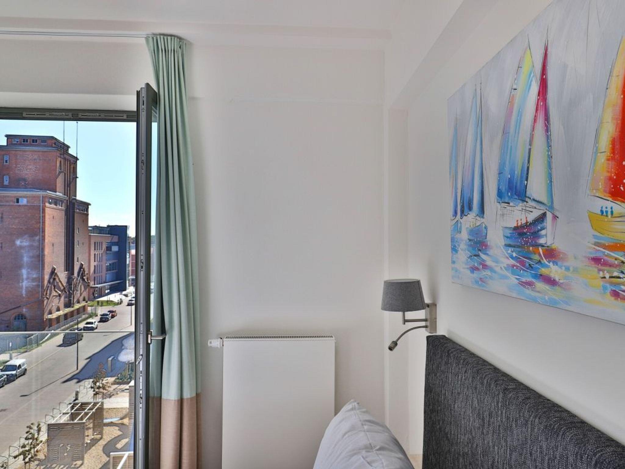 Dieses 56m² große, exklusiv eingerichtete 2-Zimmer-Appartement bietet für bis zu 4 Gästen Platz. Es befindet sich im 4. Obergeschoss , dass Sie leicht über den Lift erreichen. Der gemütliche Wohn-/ Essbereich ist mit einem Sofa, einem Fernseher und einer Essecke komfortabel ausgestattet. Von dort aus haben Sie direkten Zugang zum Süd/Ost Balkon und genießen einen traumhaften Blick auf die wunderschöne Altstadt Wismars. Eine separate Küche (Mikrowelle, Geschirrspüler, Herd und vieles mehr) ist hochwertig eingerichtet. Des Weiteren steht Ihnen ein stilvolles Duschbad zur Verfügung. Im Schlafbereich erwartet Sie ein gemütliches Doppelbett.Bei Anreise sind 2 Betten bezogen und Handtücher liegen für Sie bereit. WLAN steht Ihnen kostenfrei zur Verfügung. In unmittelbarer Nähe sind öffentliche Parkplätze vorhanden.
