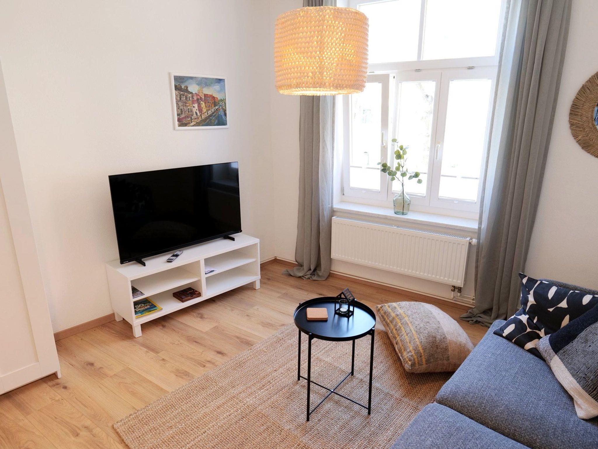 - 1 Wohnzimmer mit Couch, Flat-TV, Radio