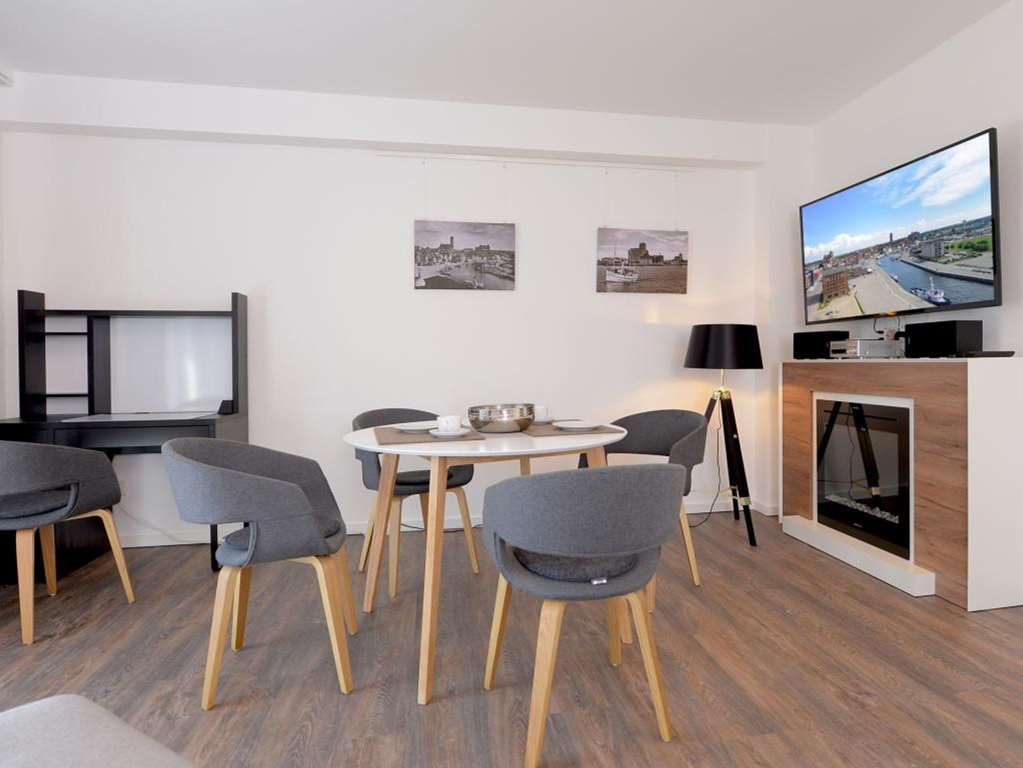Appartementhaus mit 48 Appartements. Das 2-Zimmer-Appartement liegt in der 6. Etage des Ohlerich Speichers. Dieses können Sie bequem mit dem Aufzug erreichen. Die 51m² sind komfortabel für 2 Personen eingerichtet. Der Wohn-/Essbereich mit TV-Gerät und Elektro-Kamin und integrierter Küche ist sehr elegant ausgestattet. Die Küche verfügt über eine Mikrowelle, einen Geschirrspüler, eine Kaffeemaschine, einen Wasserkocher und vieles mehr. Das separate Schlafzimmer mit einem weiteren TV-Gerät ist sehr stilvoll eingerichtet. Des Weiteren steht Ihnen ein Badezimmer mit Dusche zur Verfügung. Bei Anreise sind 2 Betten bezogen und Handtücher liegen für Sie bereit. WLAN steht Ihnen kostenfrei zur Verfügung. In unmittelbarer Nähe sind öffentliche Parkplätze vorhanden.